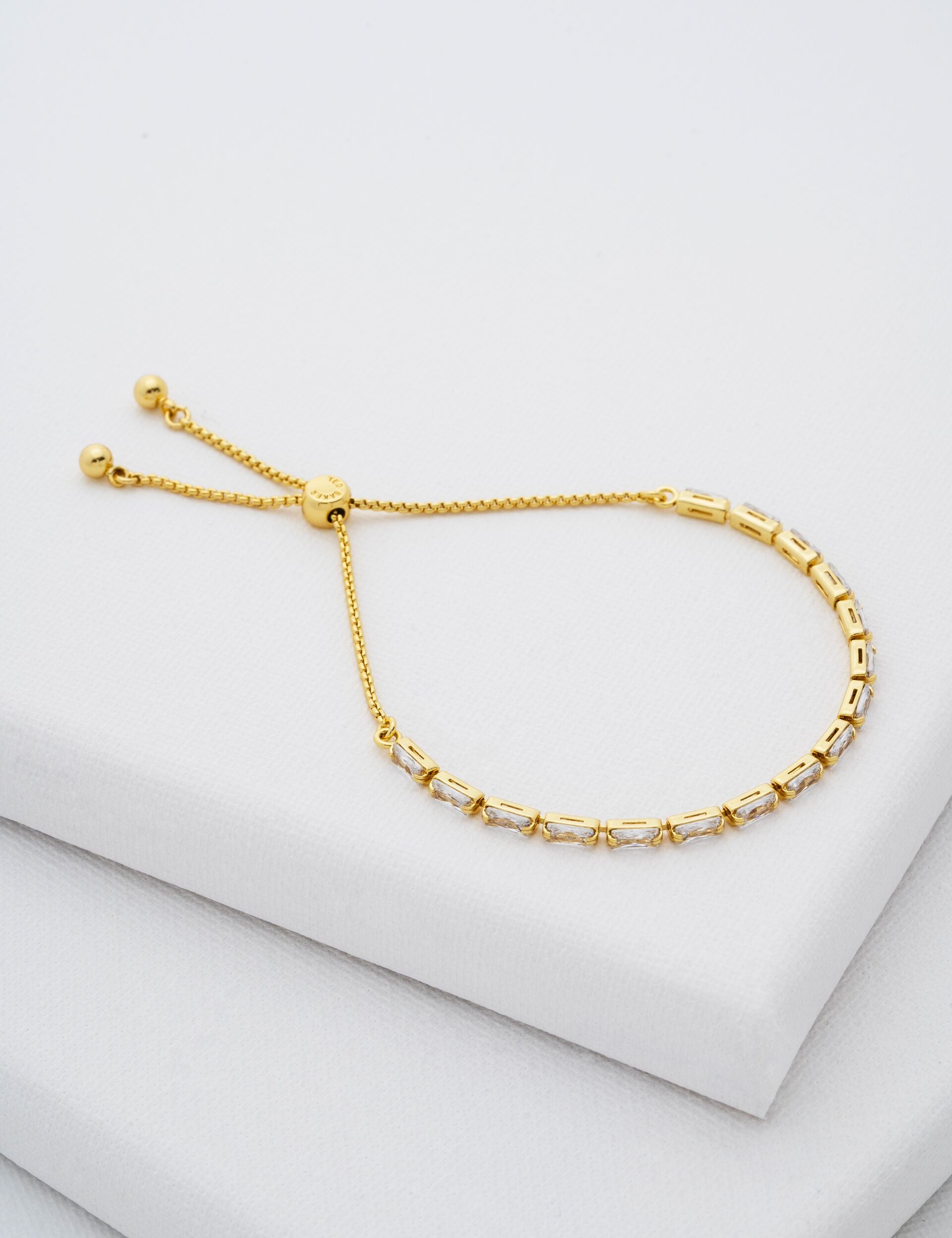 The ISELA tennis bracelet brings timeless sparkle. Clear crystal baguette stones are set end to end, creating a narrow strip of sparkle that feels perfectly elegant. It's fitted with a branded slider so you can adjust the chain to fit you just right.