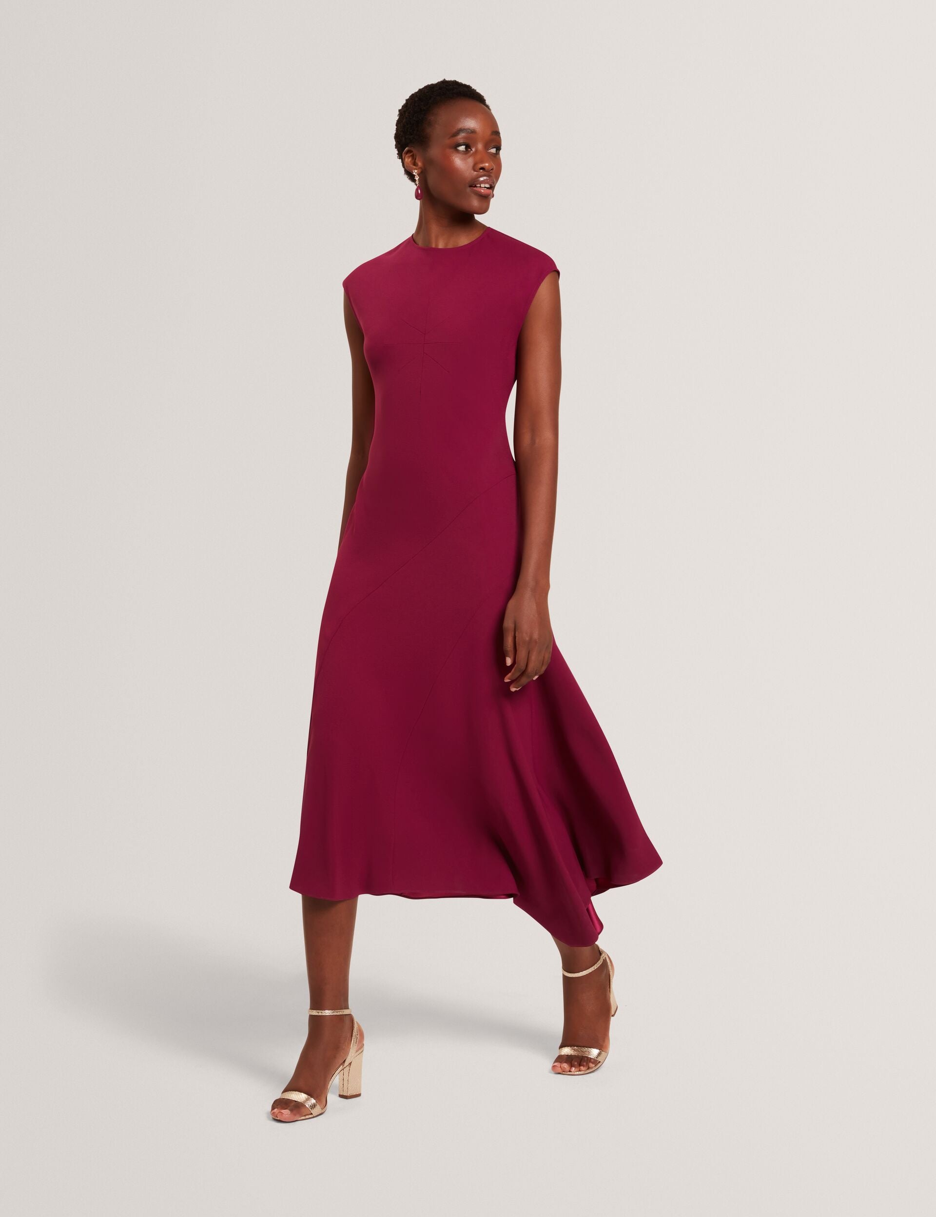 Sleeveless Asymmetric Bias Cut Midi Dress