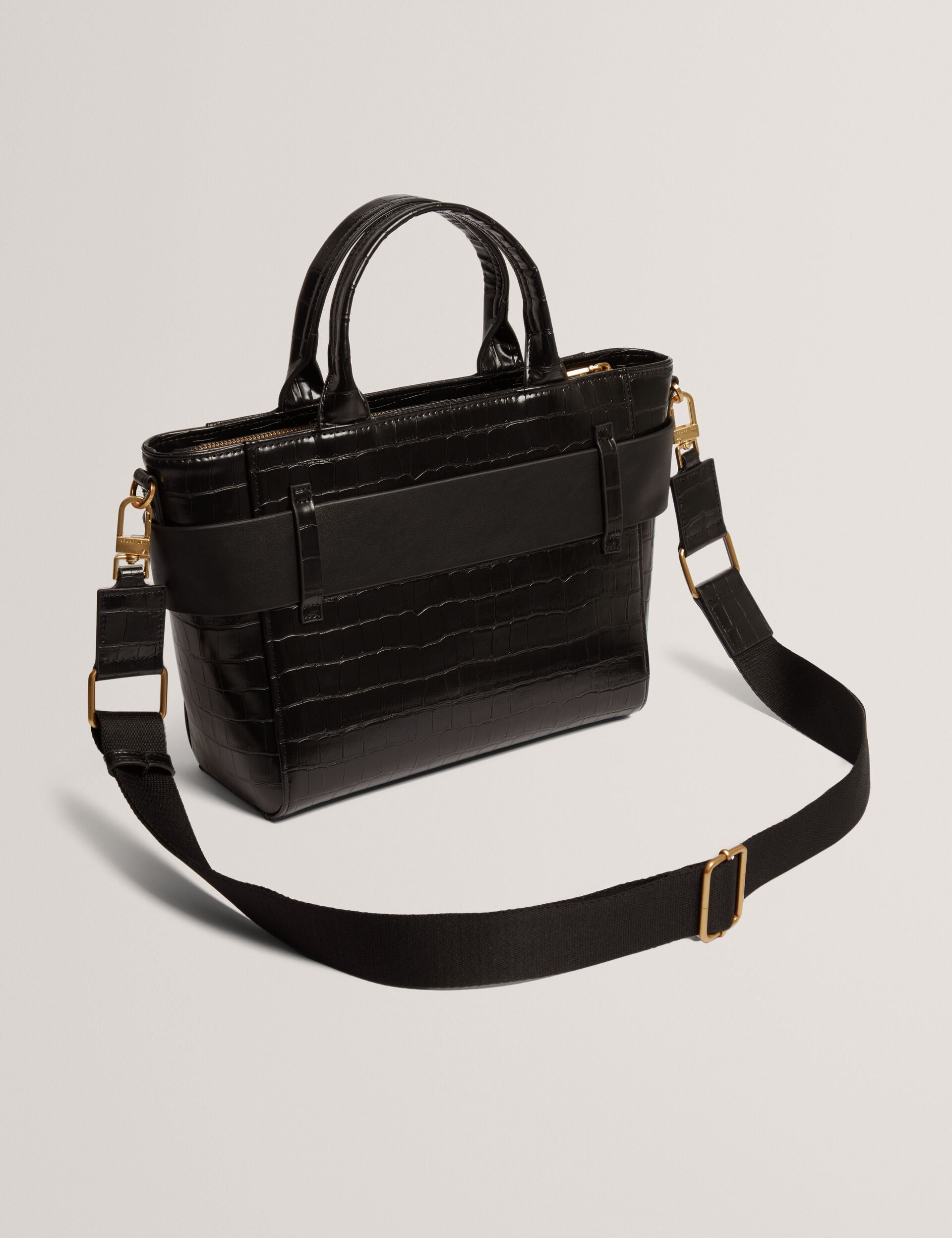 JJOSIA is the classy little tote bag that can do it all. A glossy croc texture outer is wrapped with an oversized bow trim, complete with a removable crossbody strap that takes it from daytime to date night.