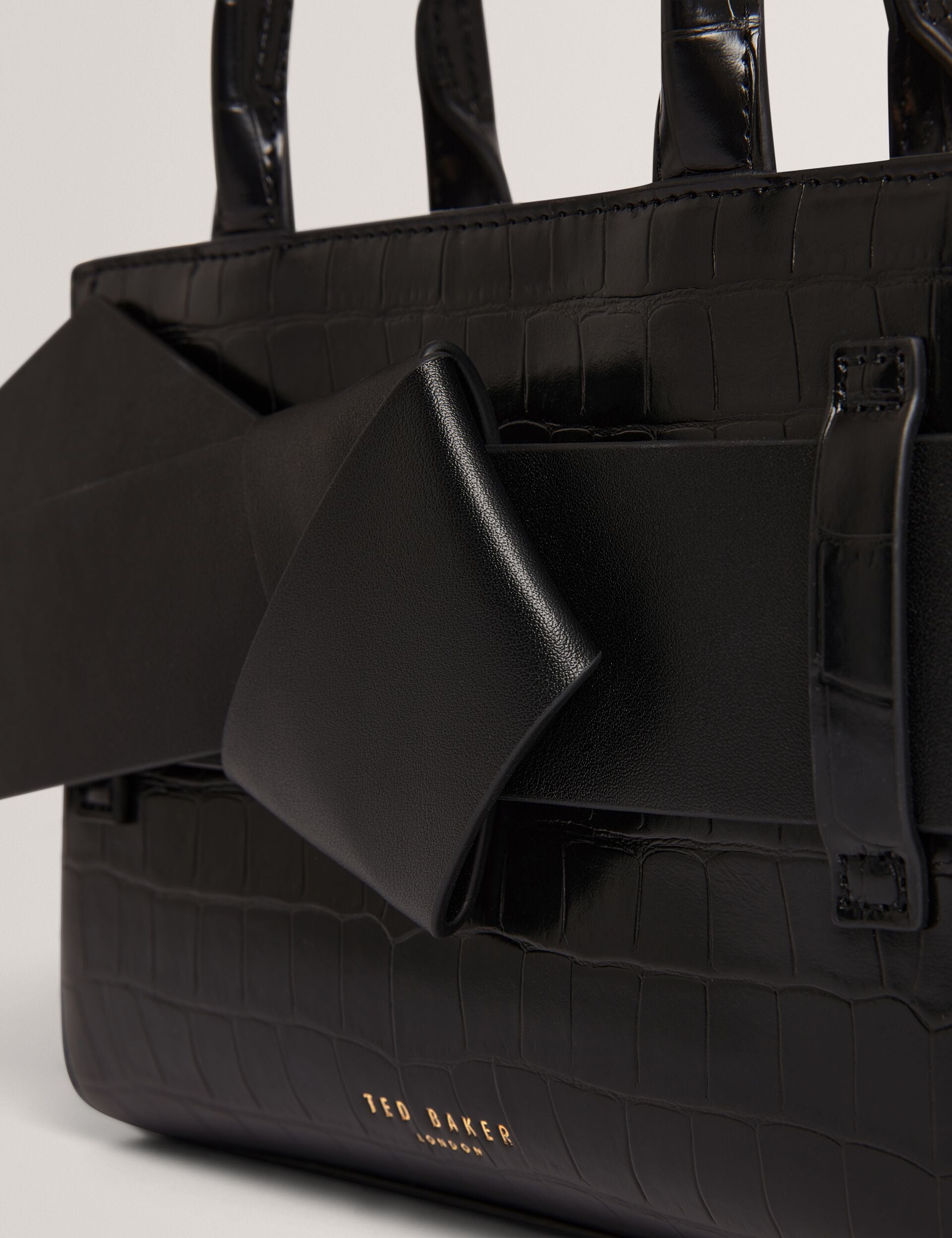Mini Croc Texture Bow Detail Tote Bag