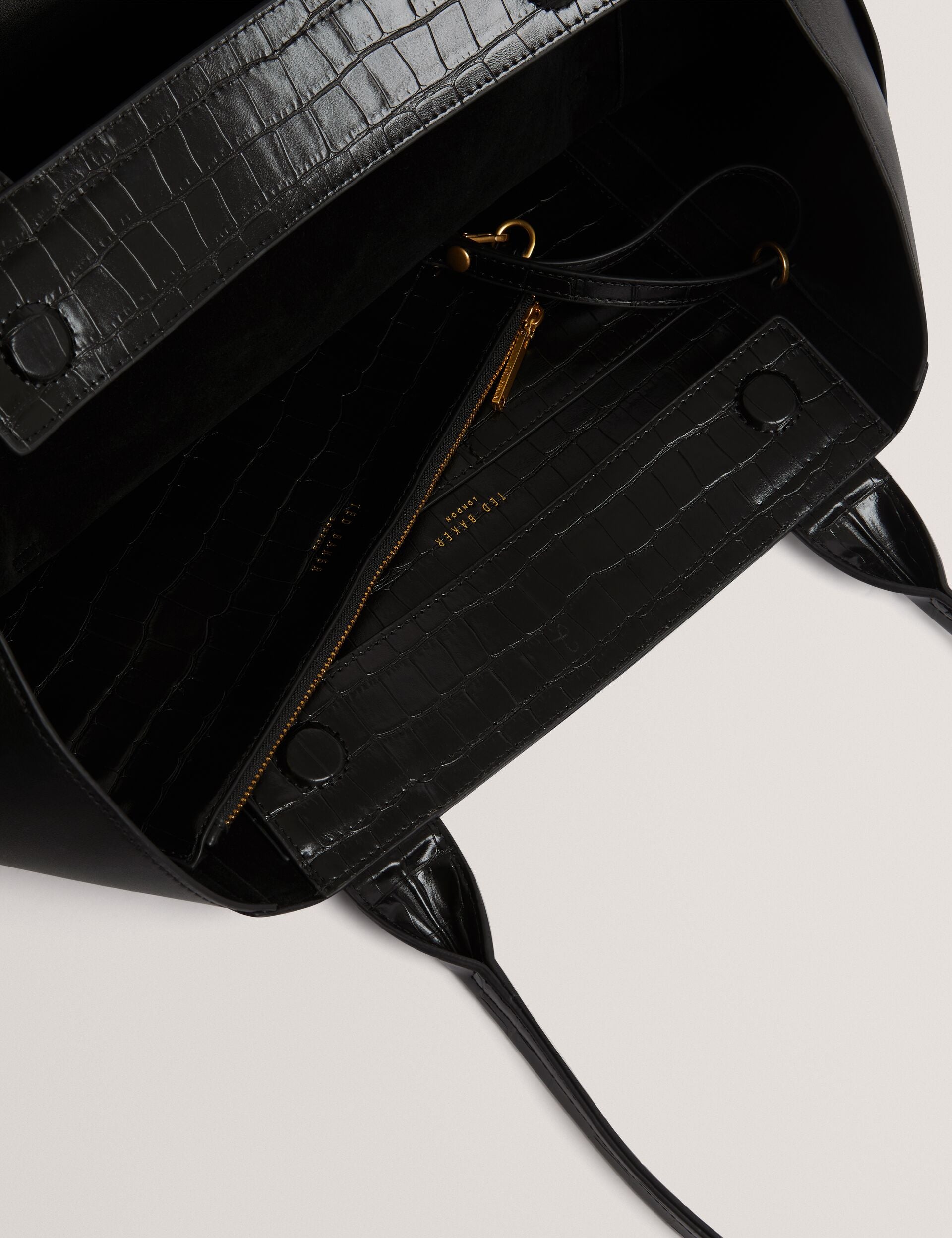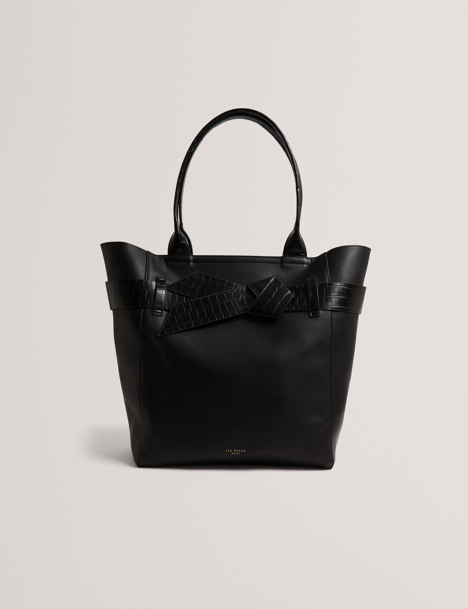 JJOSLYN is the tote that elevates the everyday with an oversized knot bow embellishment and croc effect trims for a daring touch. Plus the handy removable pouch means you won't have to hunt for your keys.