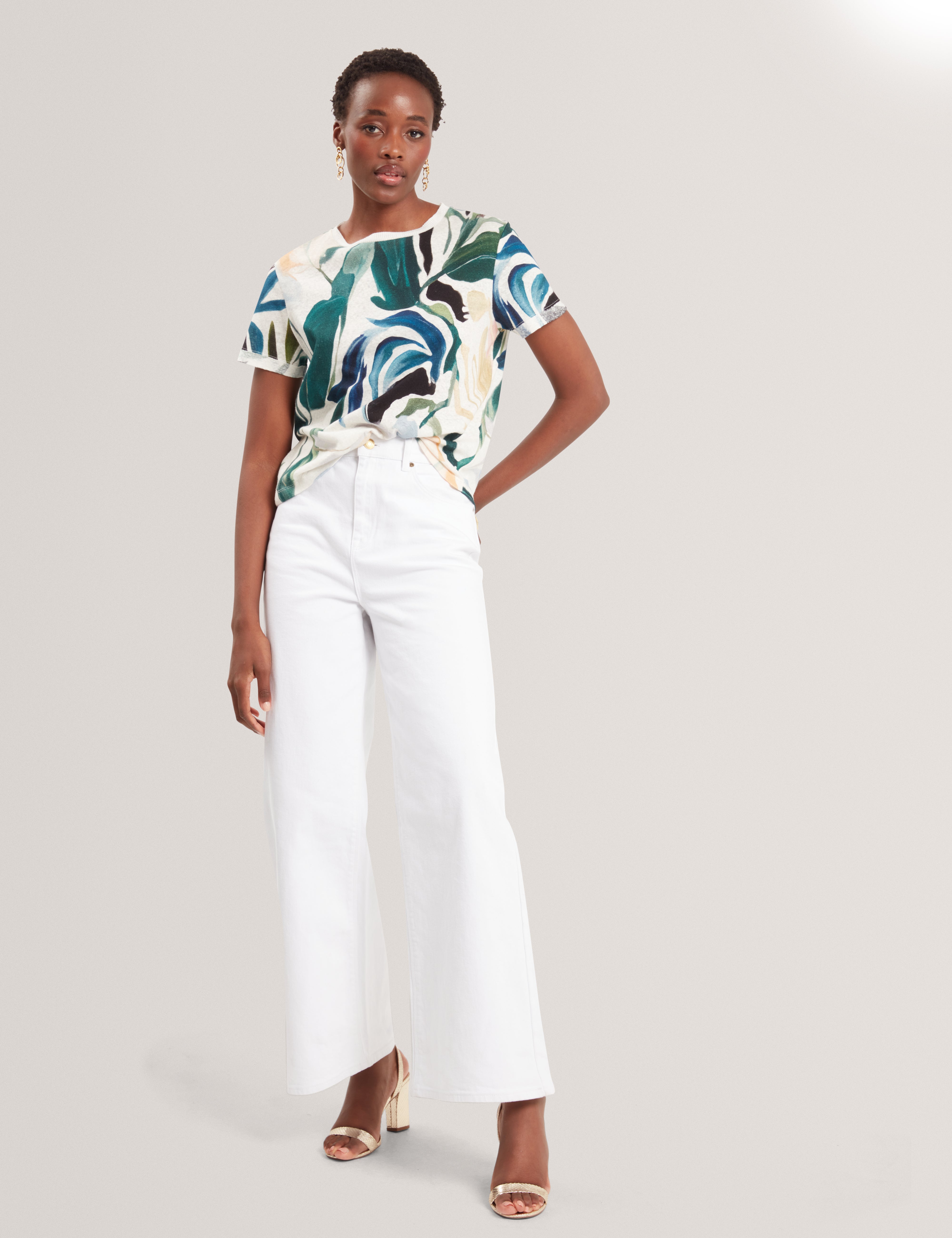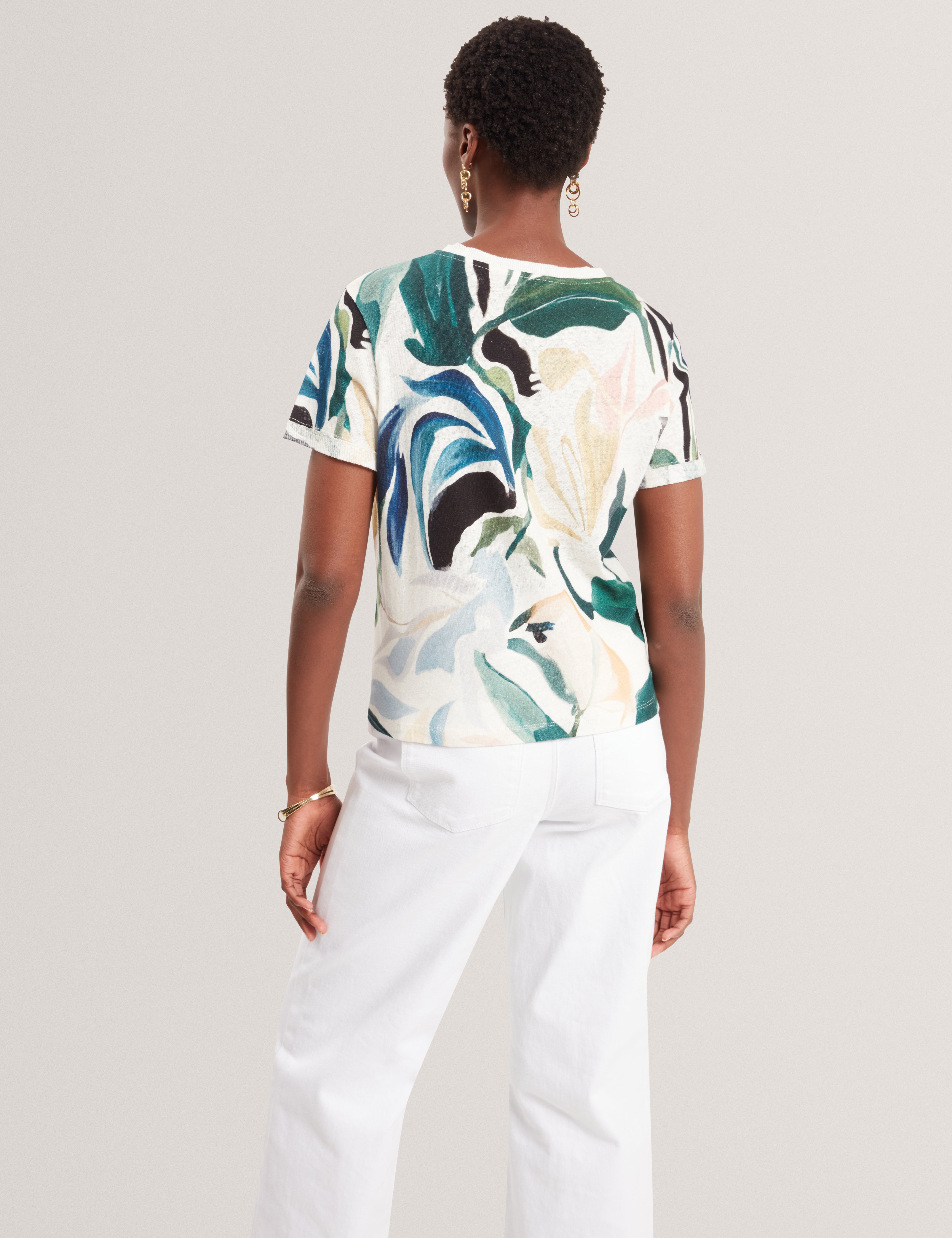 Abstract Print Linen Blend Boxy T-Shirt