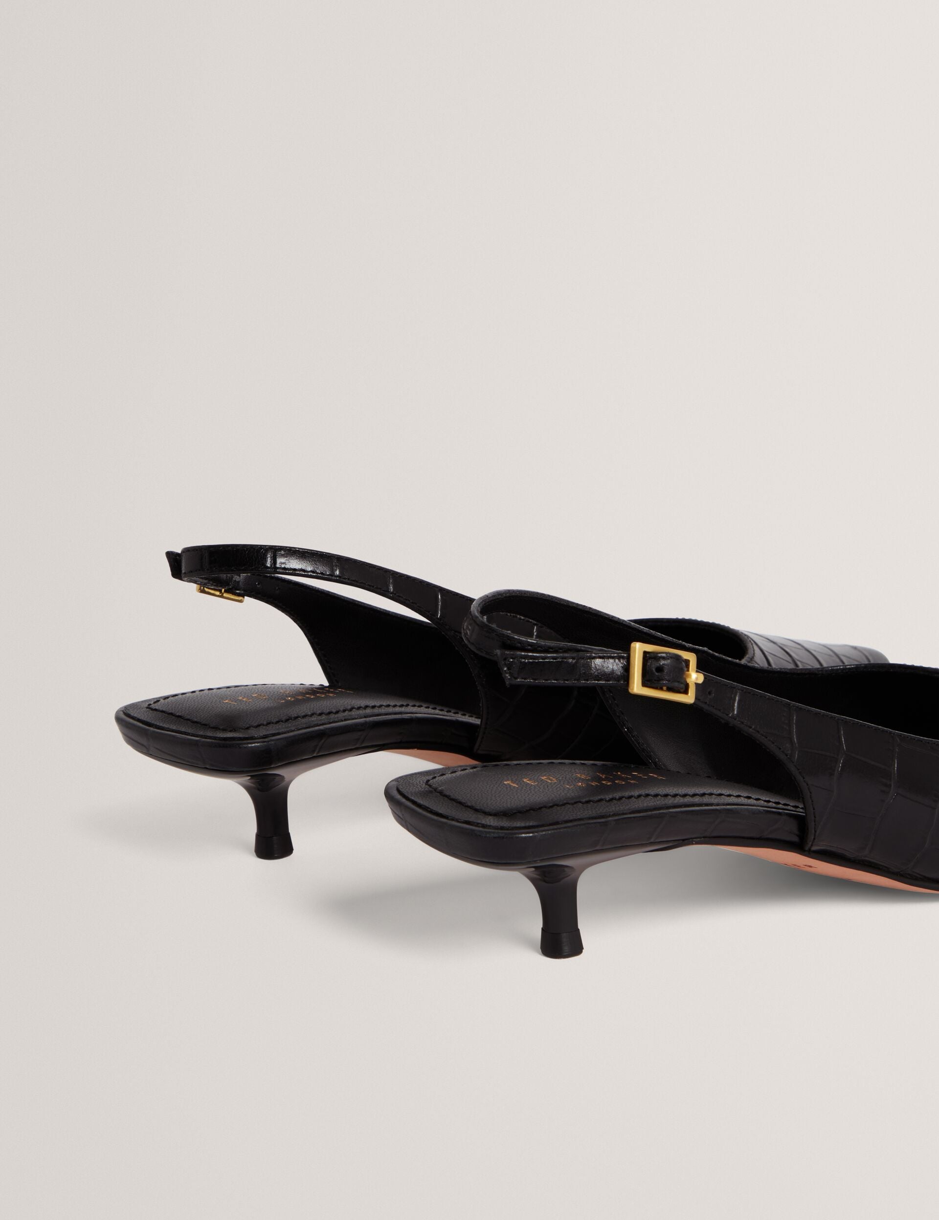 Throw on these KITIY kitten heel shoes to instantly elevate outfits day and night. These pointed toe pumps are crafted from a supple croc texture leather and slip on with a chic slingback strap.