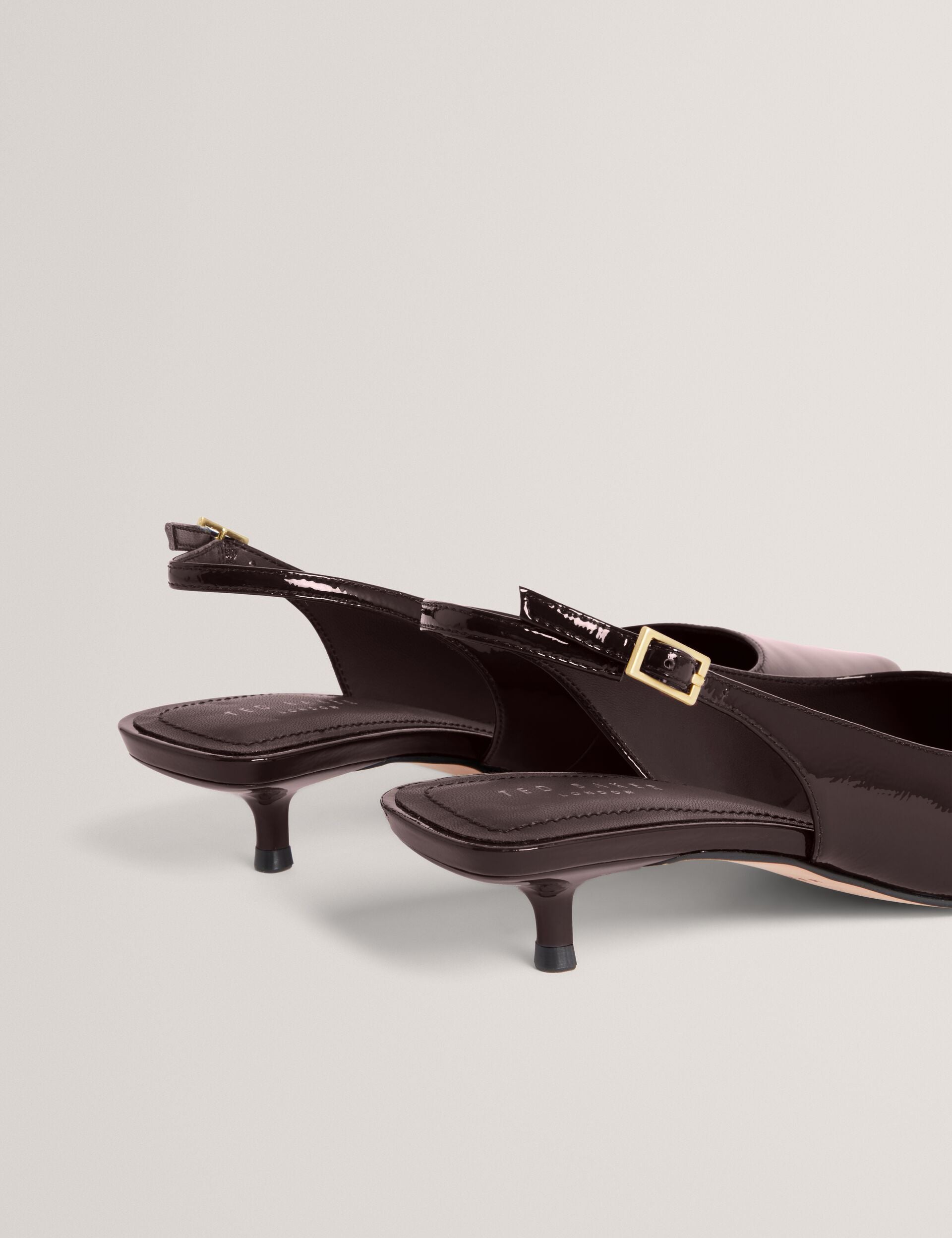 Throw on these KITIY kitten heel shoes to instantly elevate outfits day and night. These pointed toe pumps are crafted from a supple patent leather and slip on with a chic slingback strap.