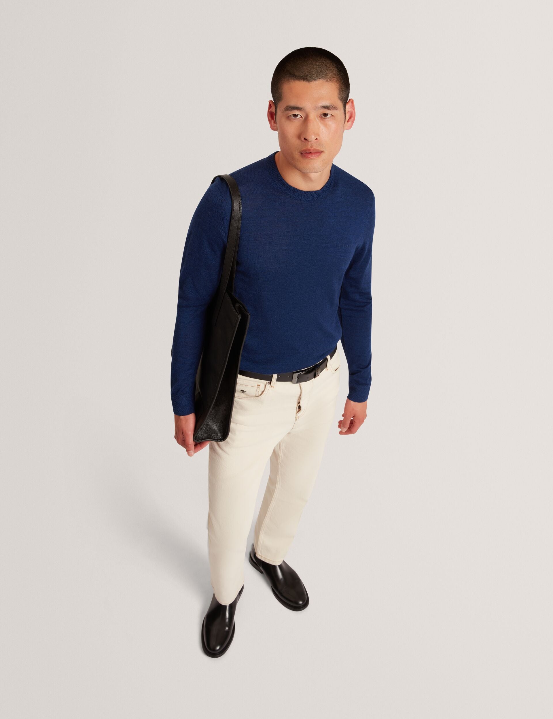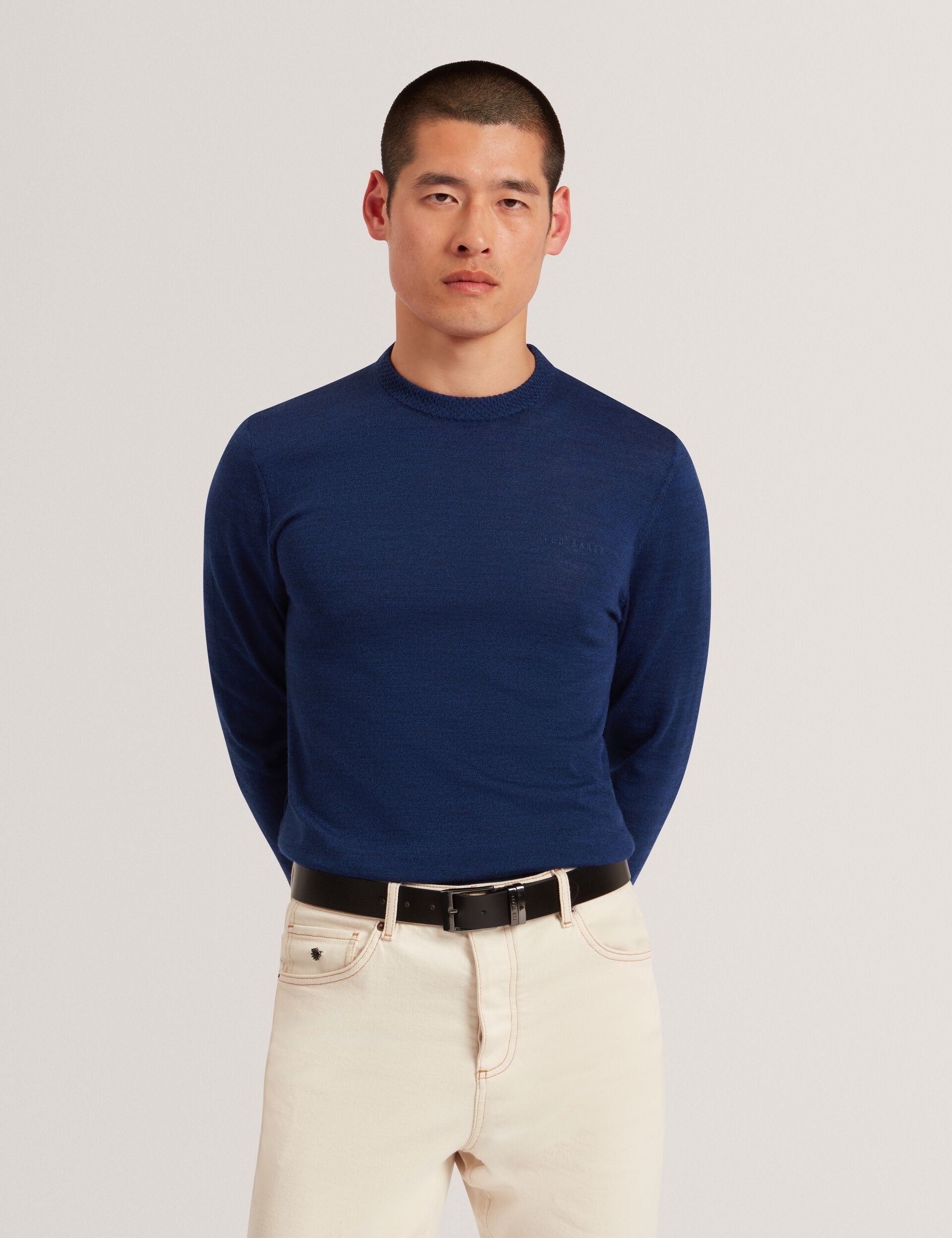- Textured crew neck