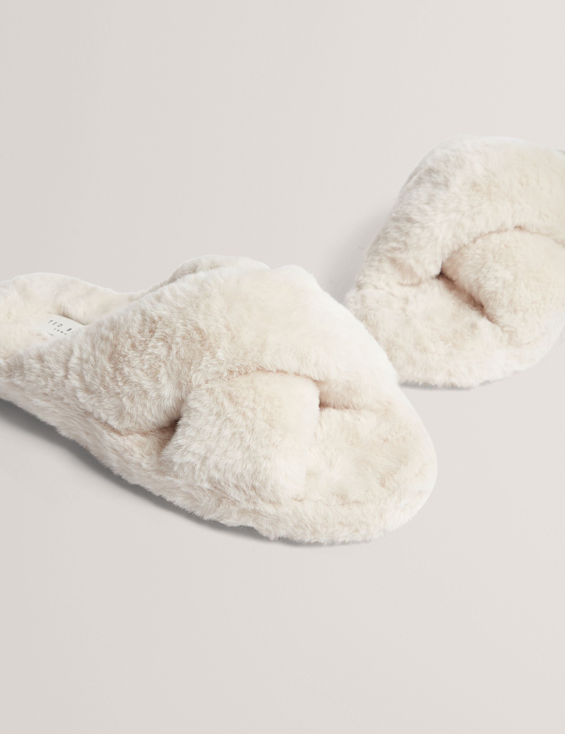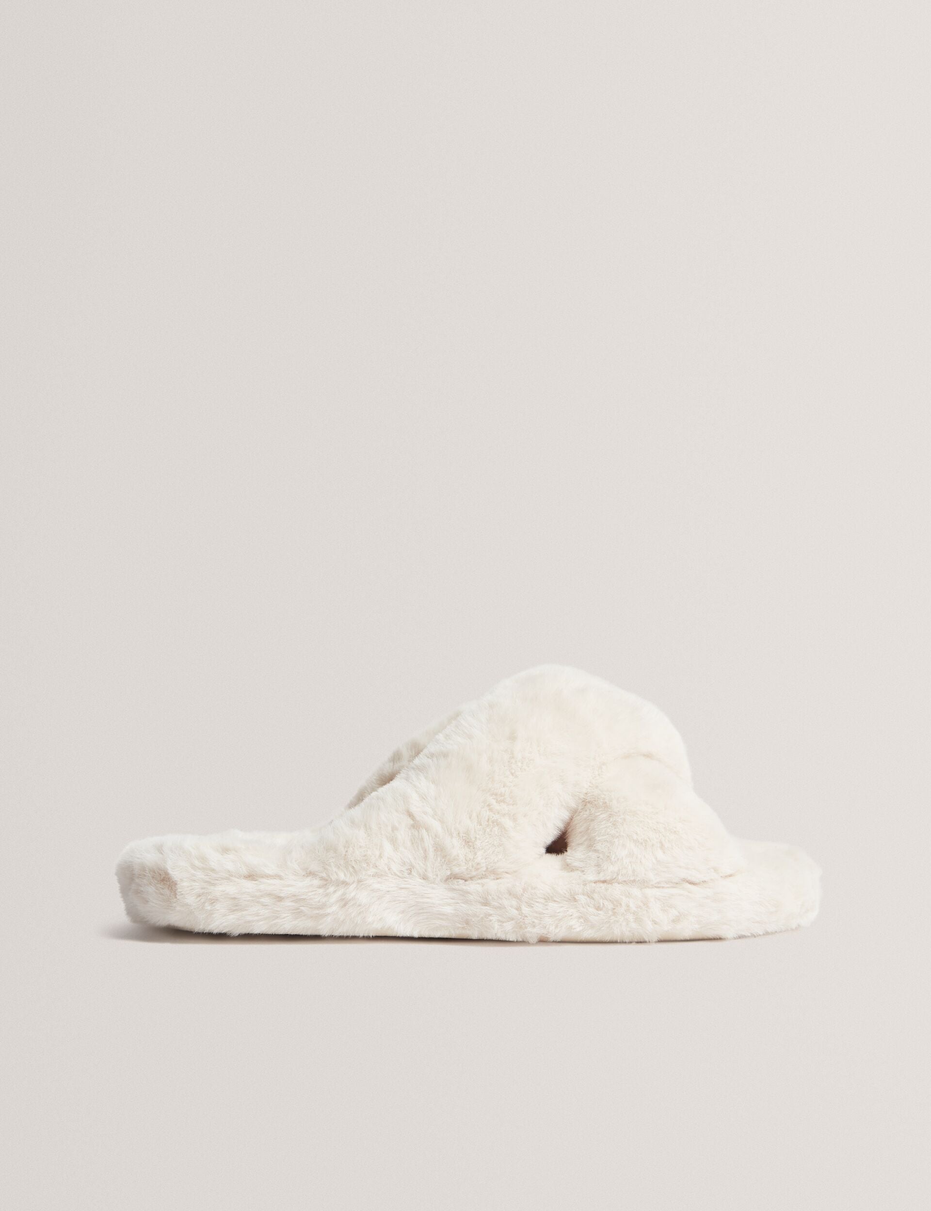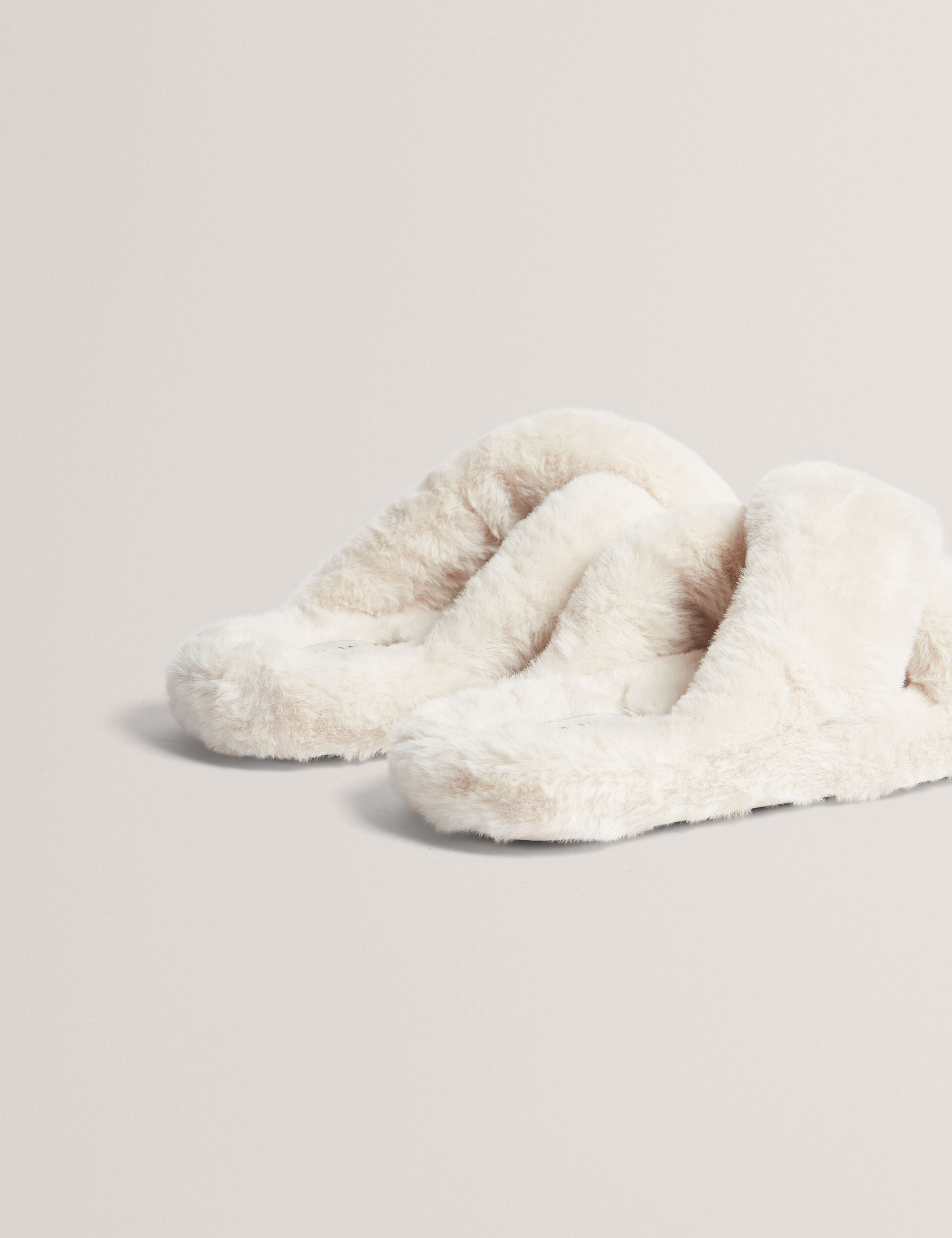 Cosy yet breathable, the LOPPLY slippers are crafted from an ultra soft faux fur in an open toe silhouette. Designed with crossover front straps for added style, they're made for at-home luxury.