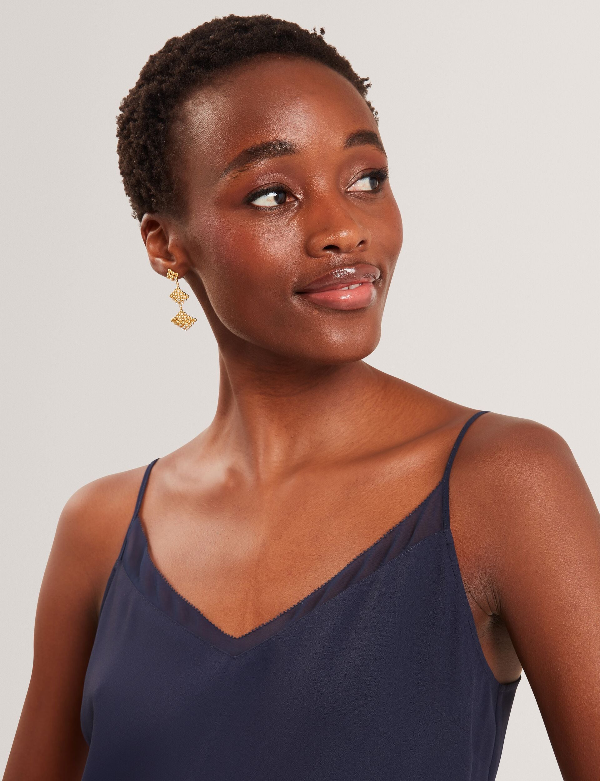 LULEA is the skimpy staple your wardrobe needs with a flattering V-shape neckline and adjustable spaghetti straps. Elevated by a sheer chiffon trim, this light cami top has got you covered (mostly) for scorching summers and endless parties.