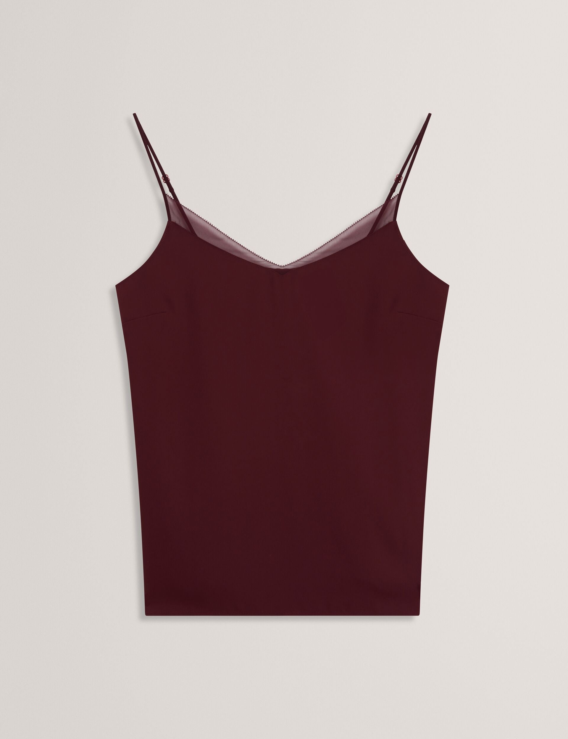 LULEA is the skimpy staple your wardrobe needs, with a flattering V-shape neckline and adjustable spaghetti straps. Elevated by a sheer chiffon trim, this light cami top was born to spice up your party fits and everyday layers.