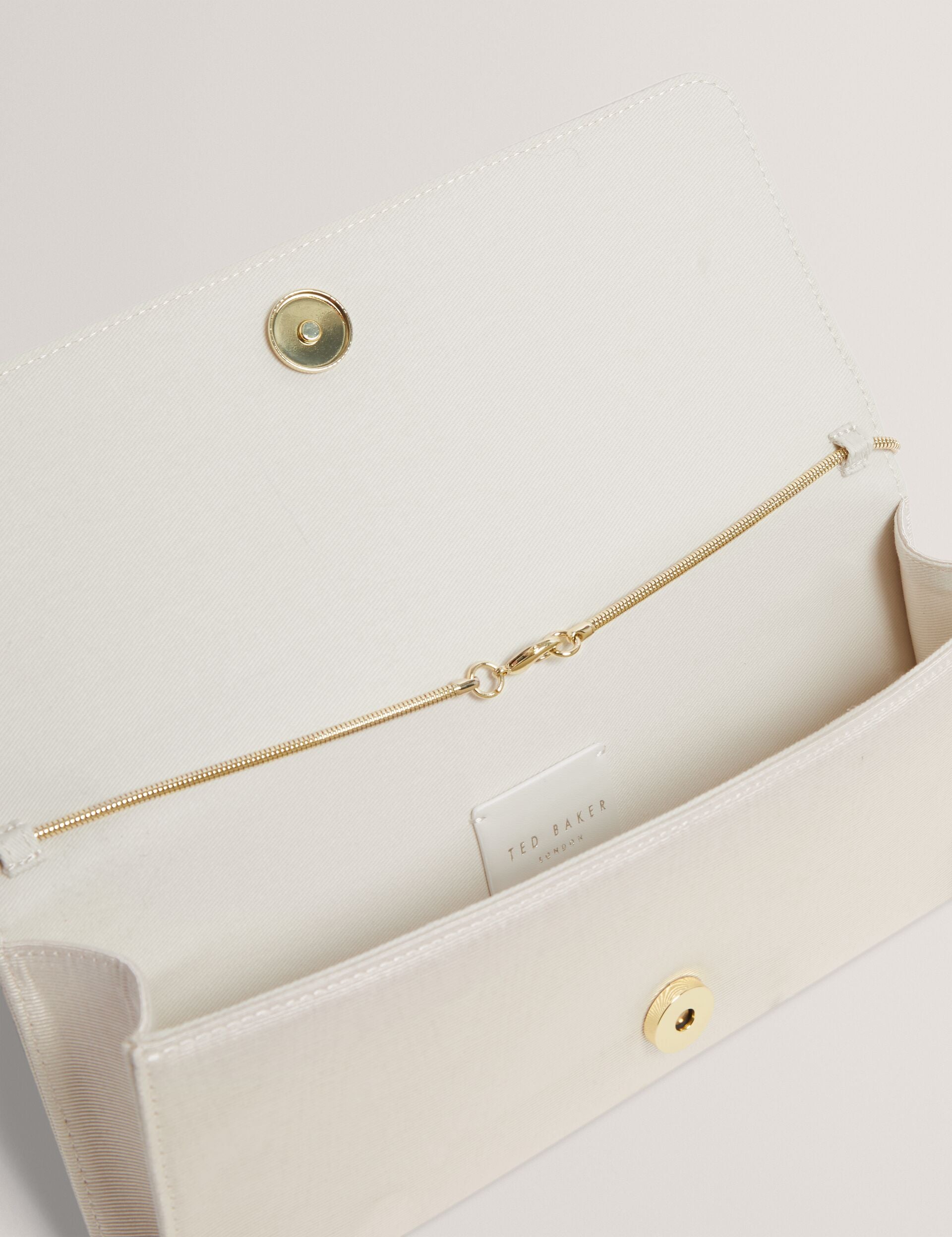MALIISA is the clutch bag of the season, marrying the delicate shimmer of moire fabric with the modern feel of a structured baguette shape. Complete with a snake chain shoulder strap, it brings easy elegance to wedding invites and date nights.
