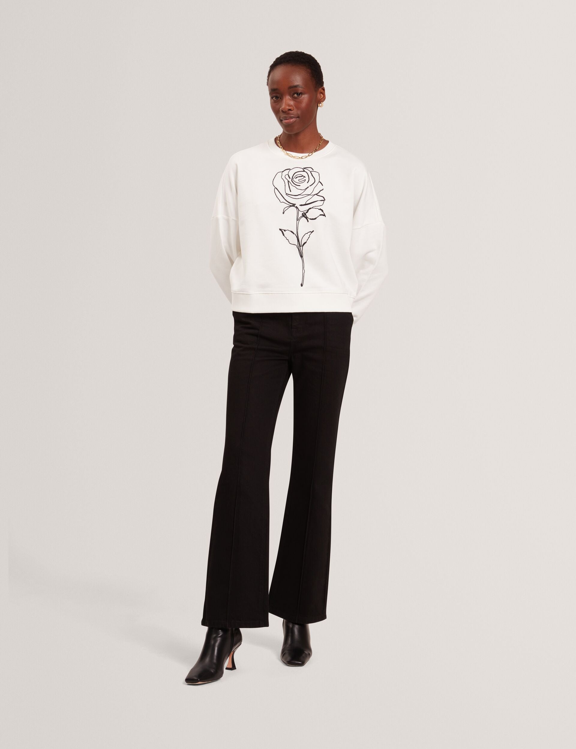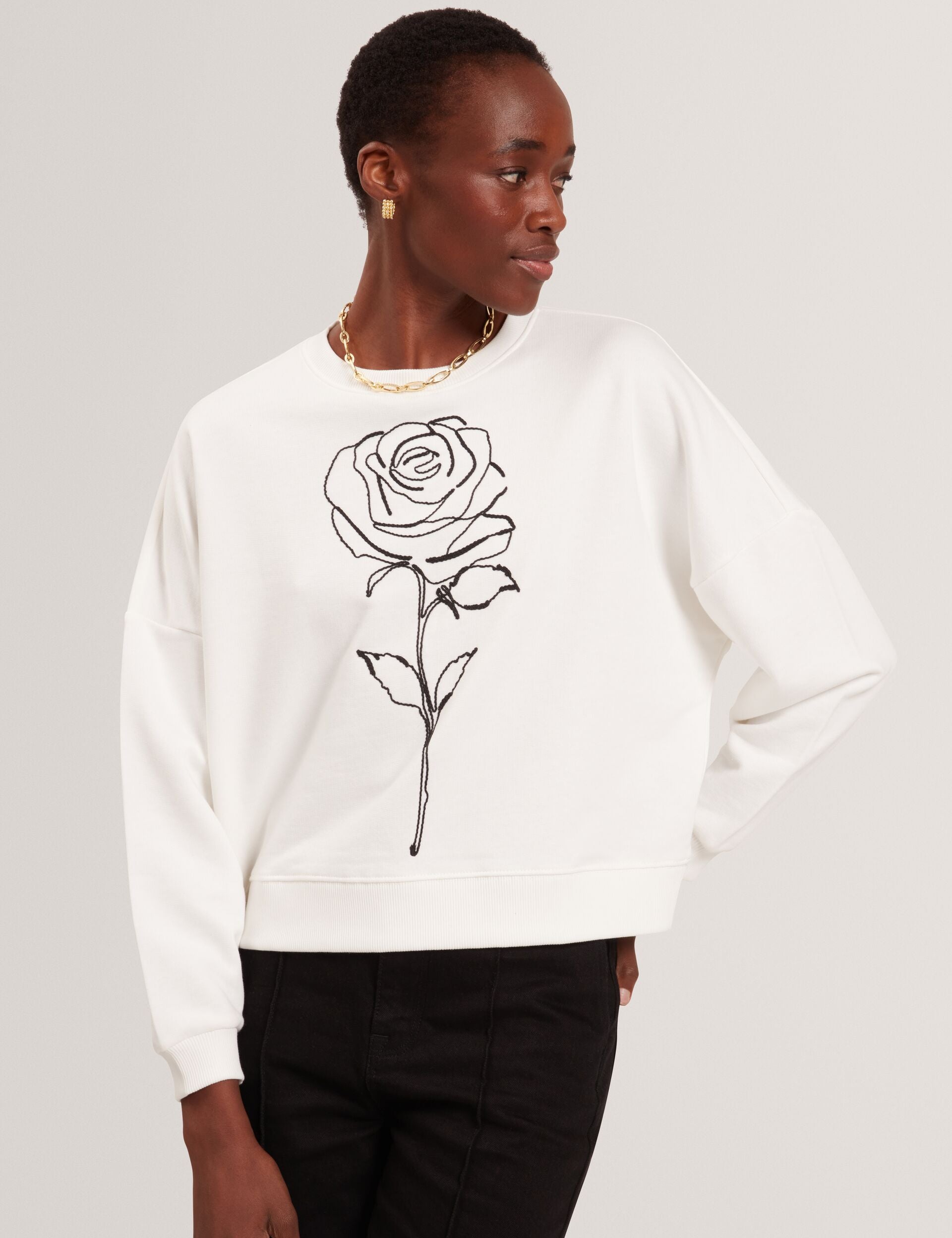 Embroidered Rose Graphic Cotton Sweatshirt