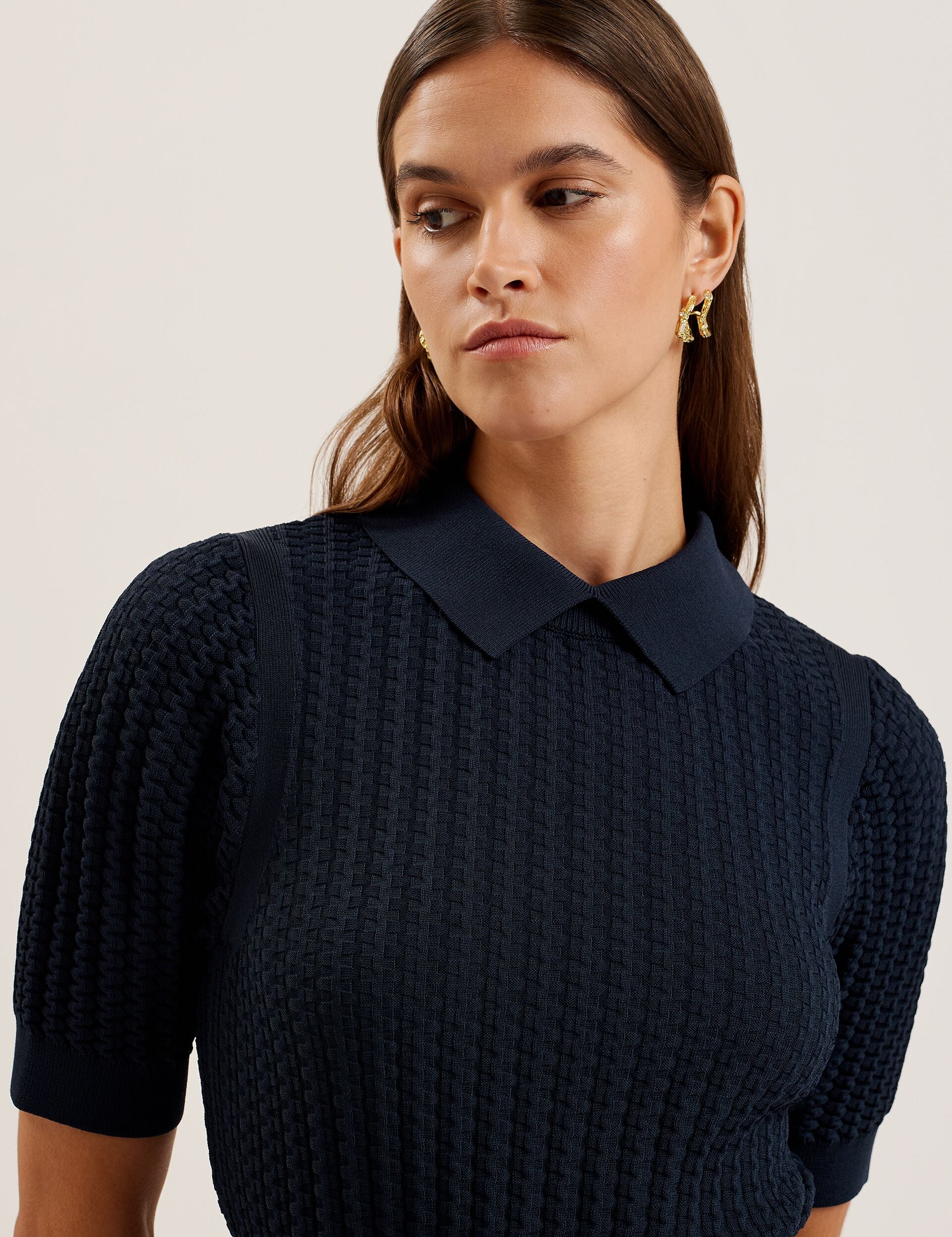 With its collared neckline and short puffed sleeves, this mini skater dress strikes the perfect balance between smart and sweet. Made from a flattering knitted fabric and finished with a textured bodice, MIIAAA will be your go-to piece for office days this season.