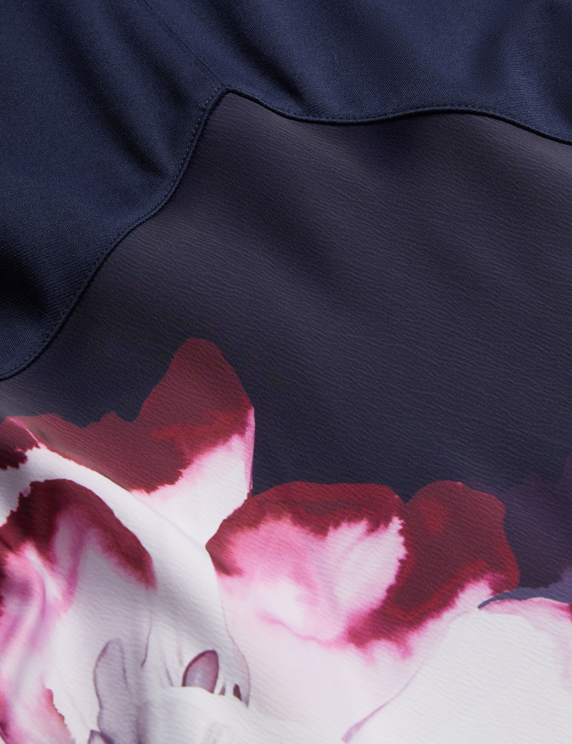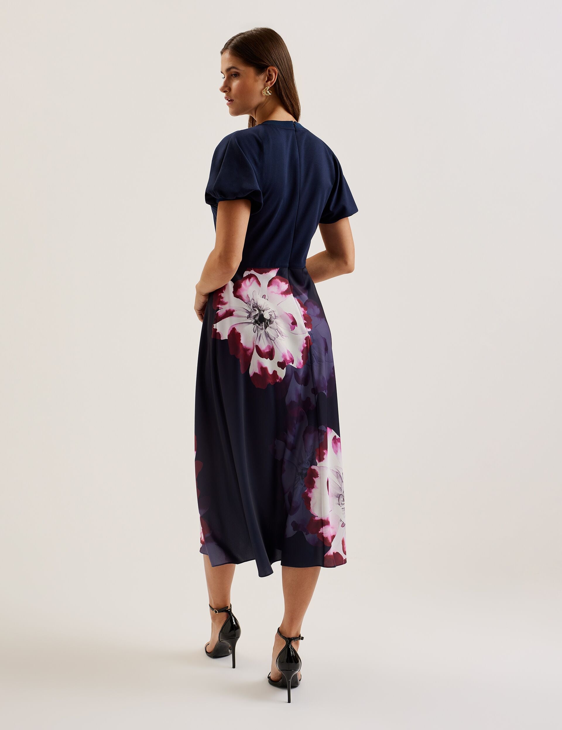 Ponte Bodice Midi Dress With Floral Chiffon Skirt