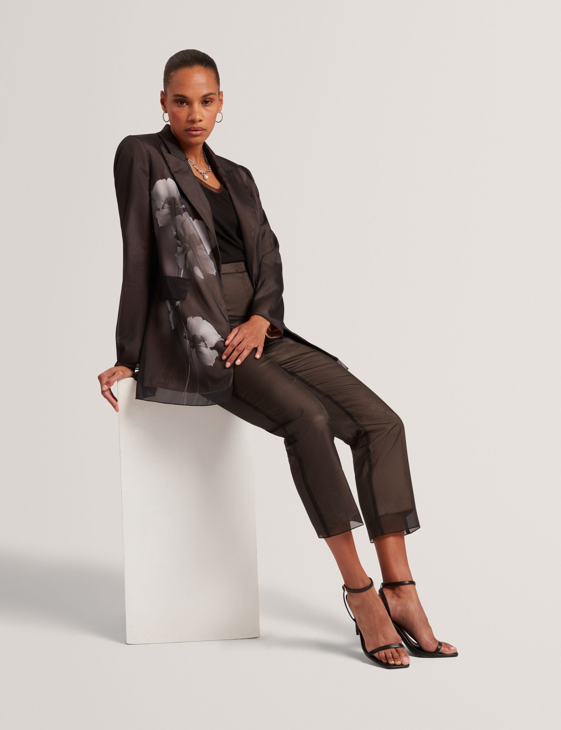 - Sheer black organza overlay