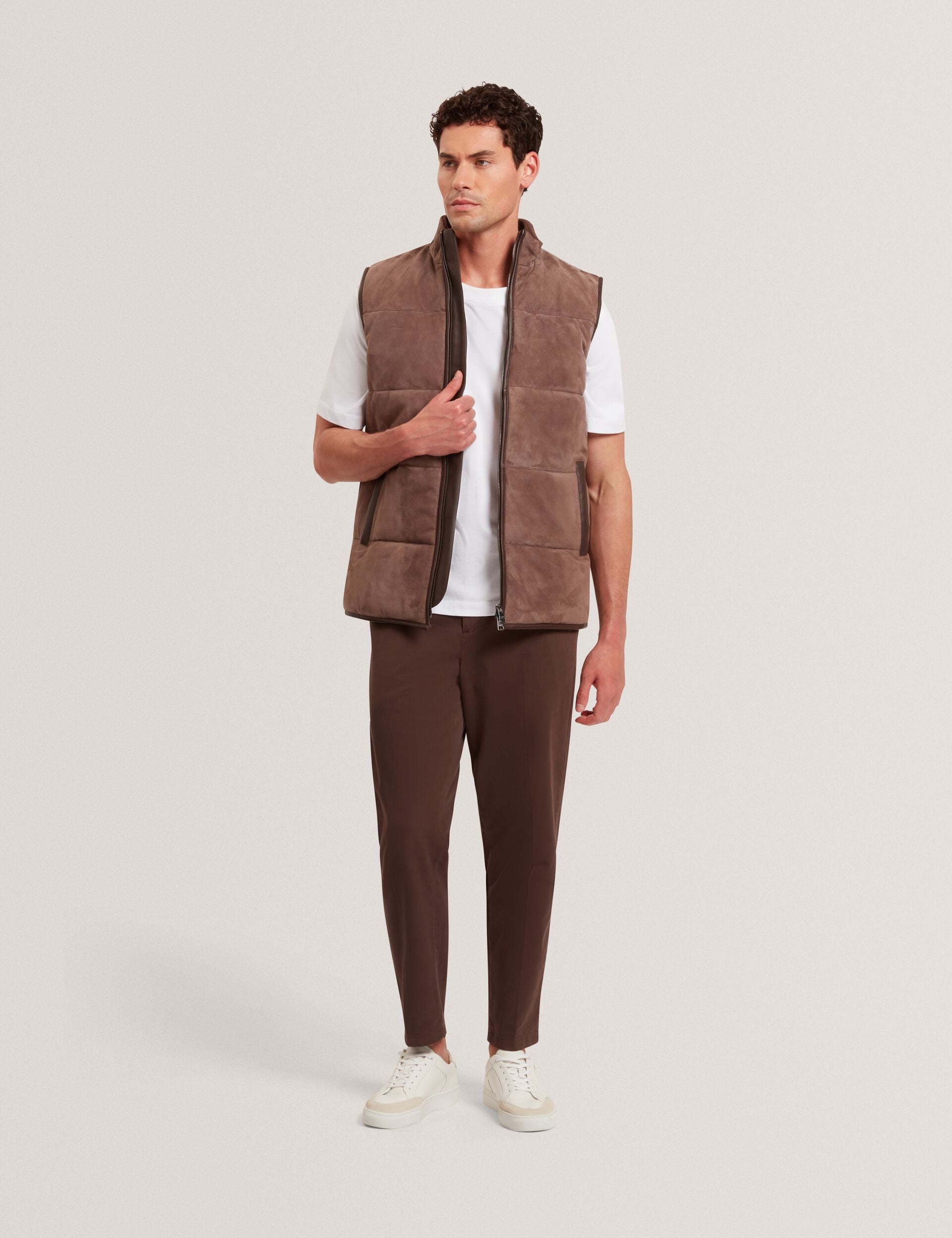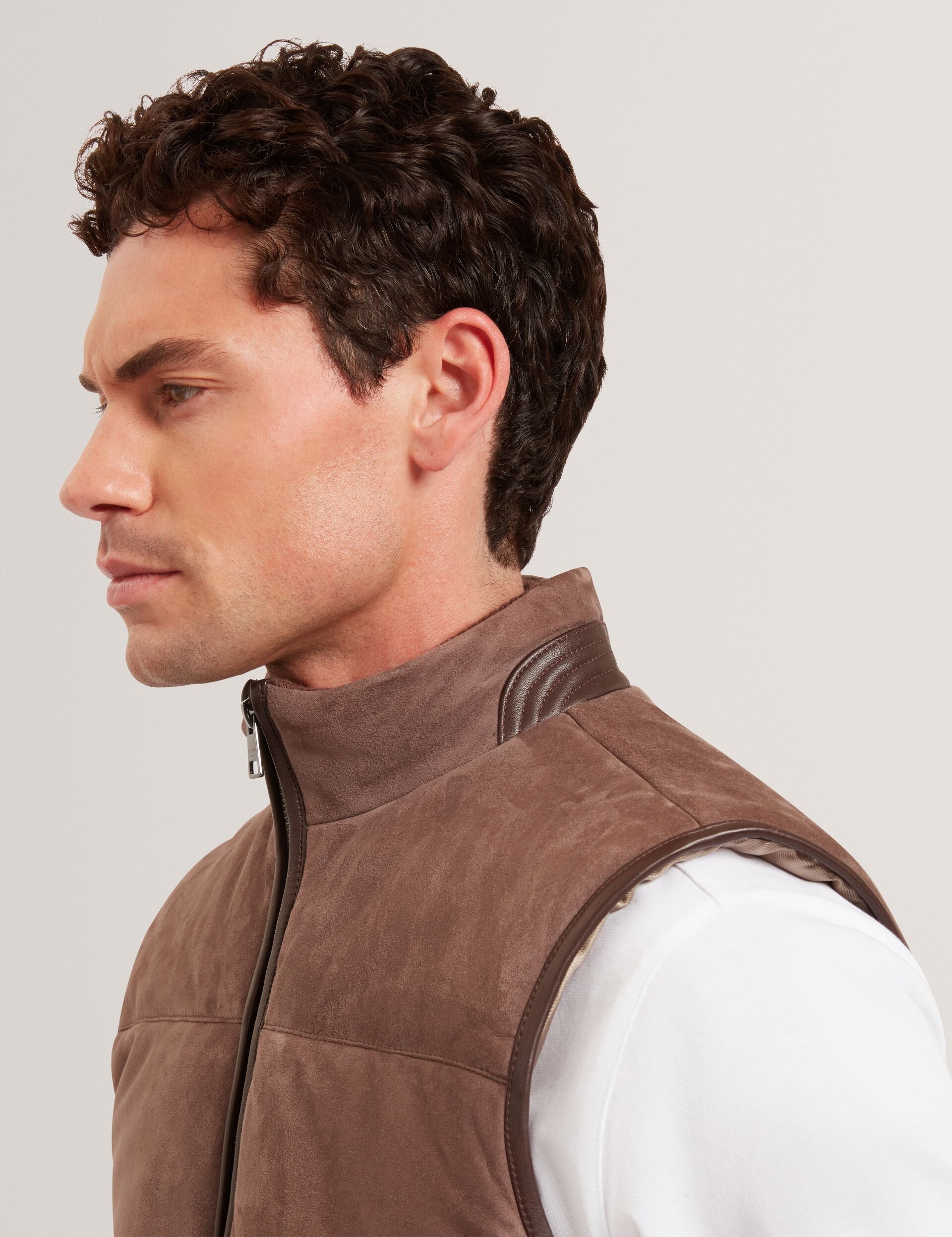 Goat Suede Zip-Up Puffer Gilet