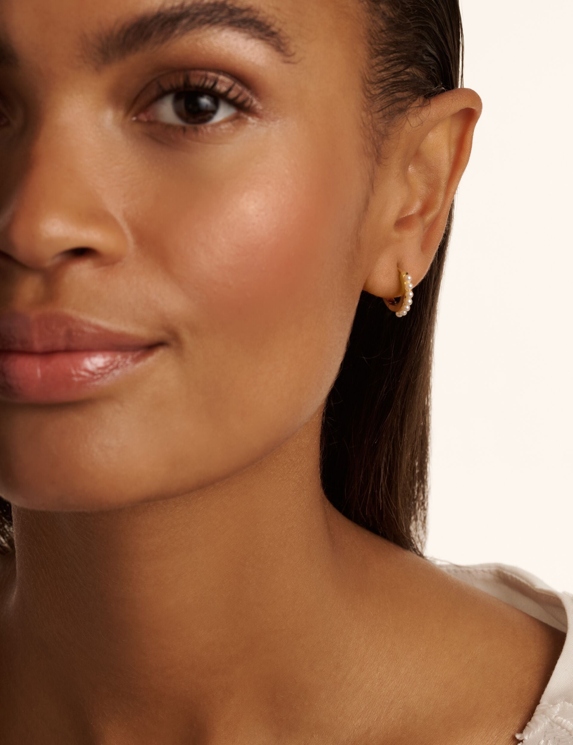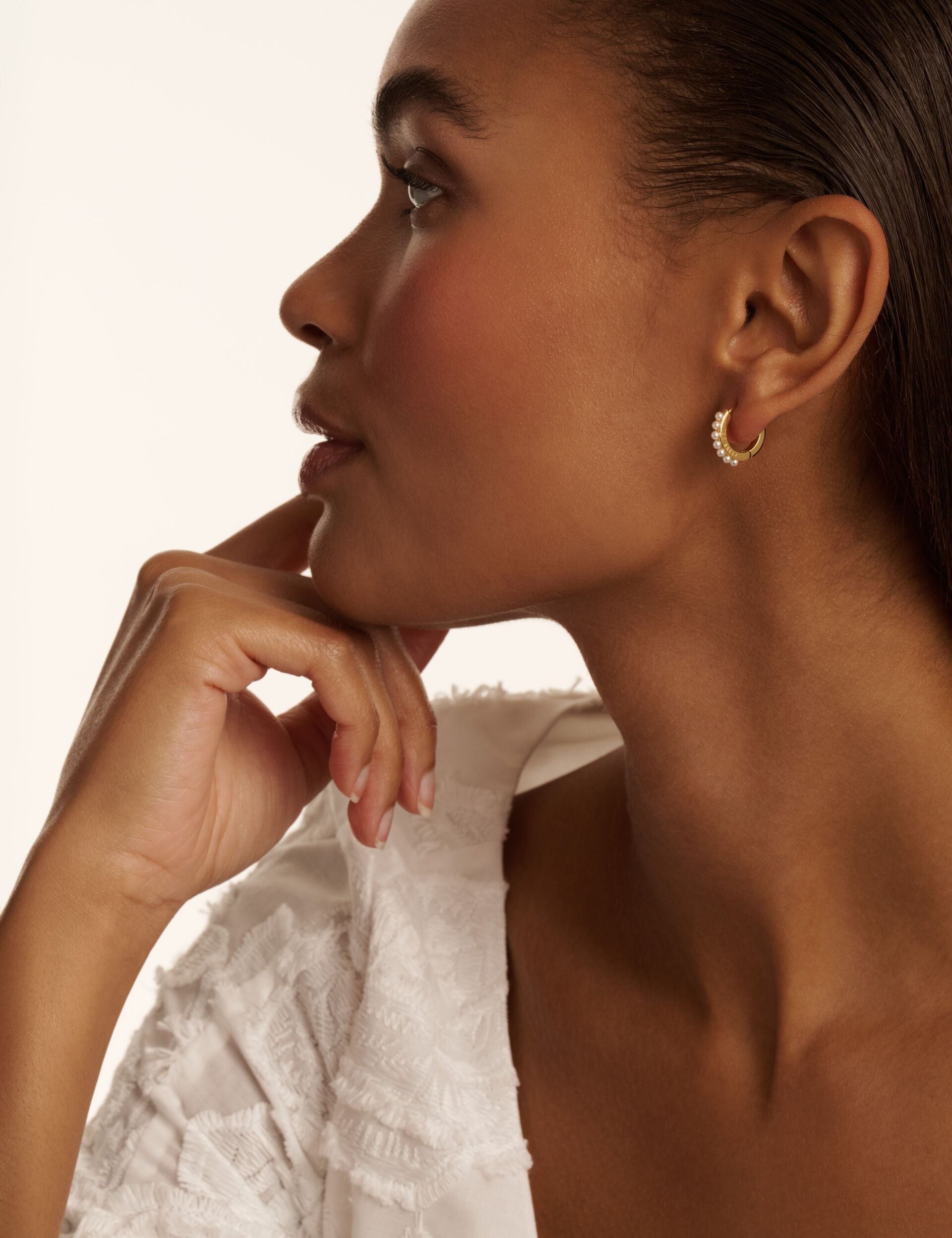 You can't go wrong with a classic huggie hoop, and PERSIA does it in the chicest way possible with a row of dainty faux pearl beads topped on gold tone plating. Whether you're dressing for day or night, these earrings are an essential.