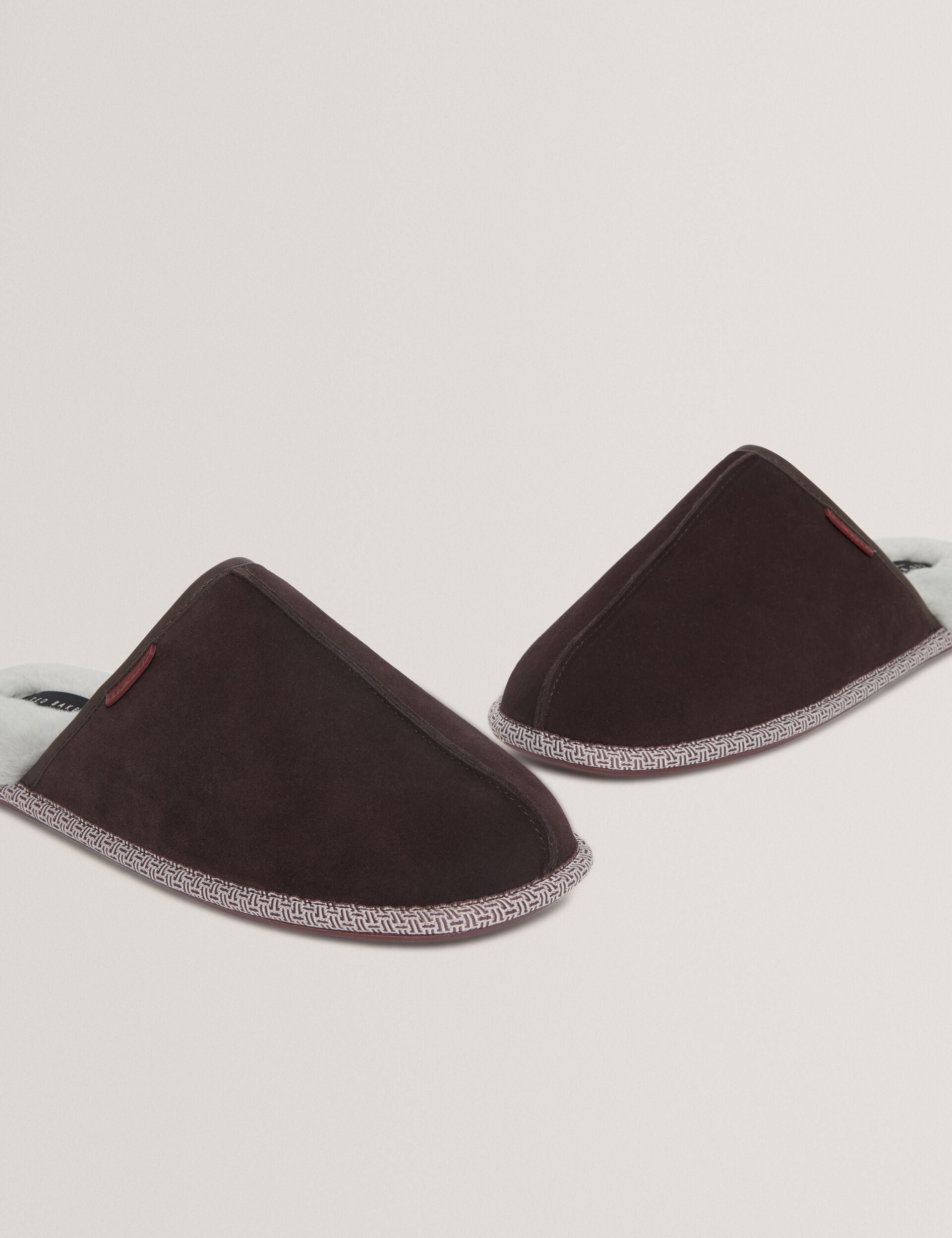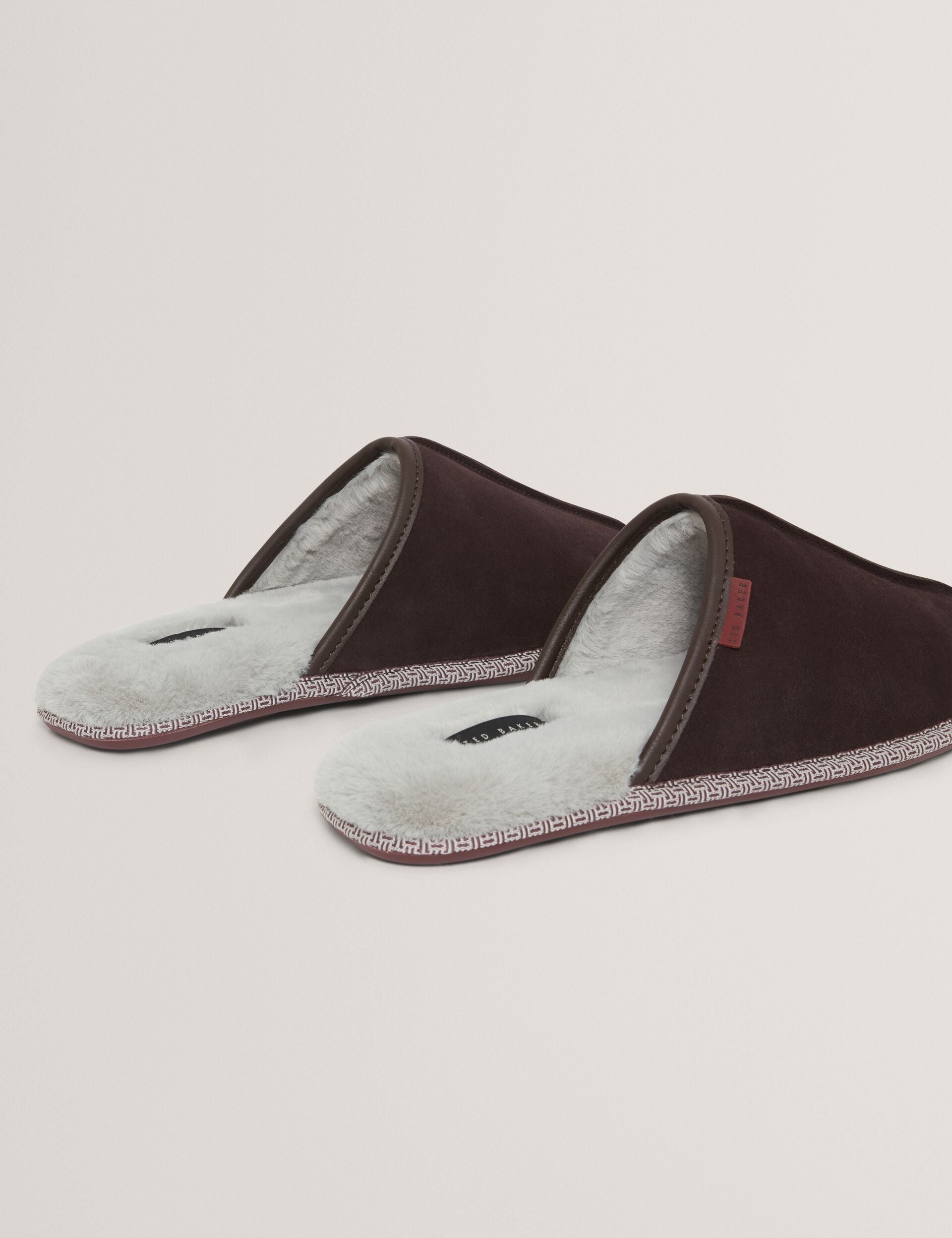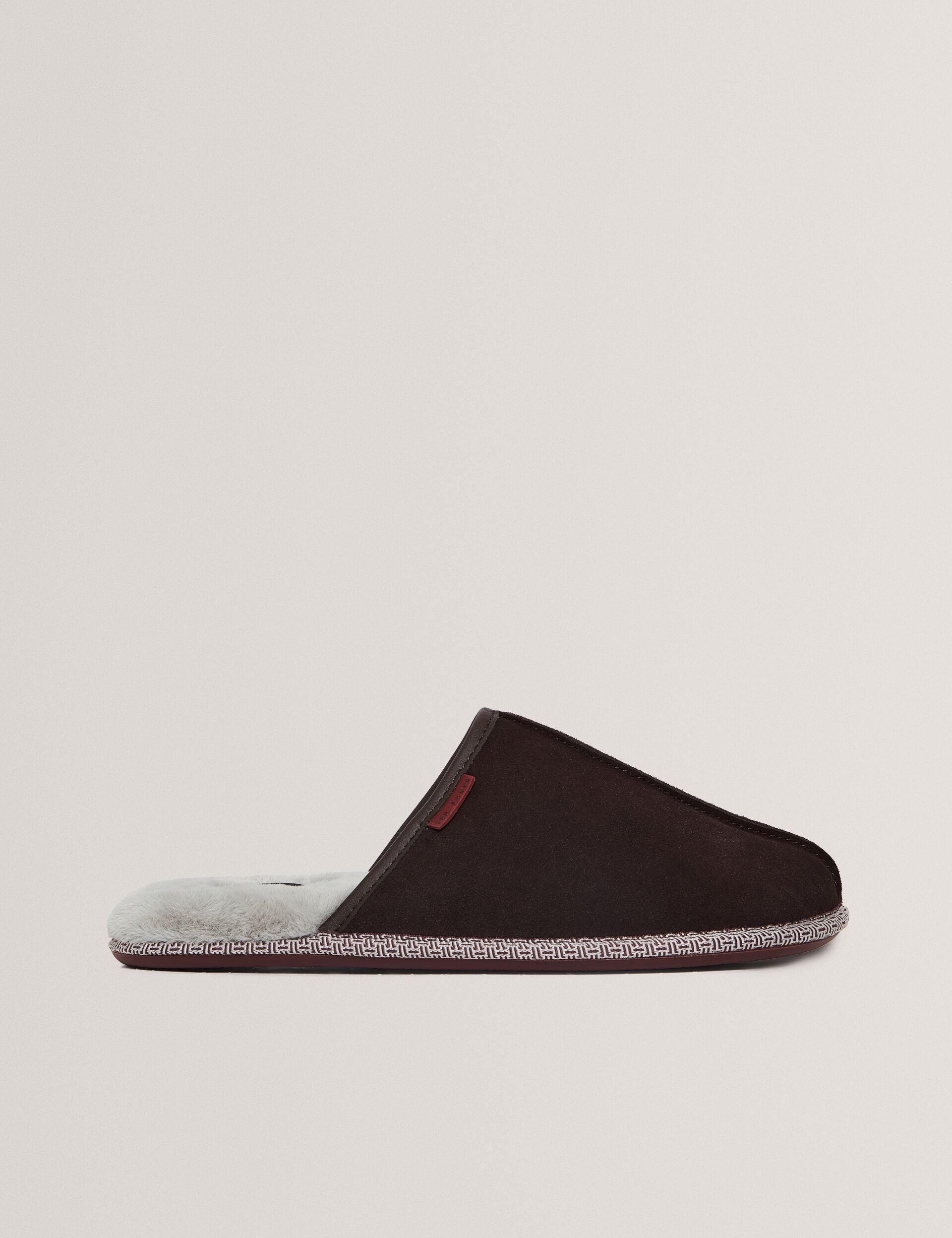 Crafted from supple suede leather with a cushioned sole and plush faux fur lining, the PETERR classic mule slippers deliver cosy indoor comfort with refined laid-back style.