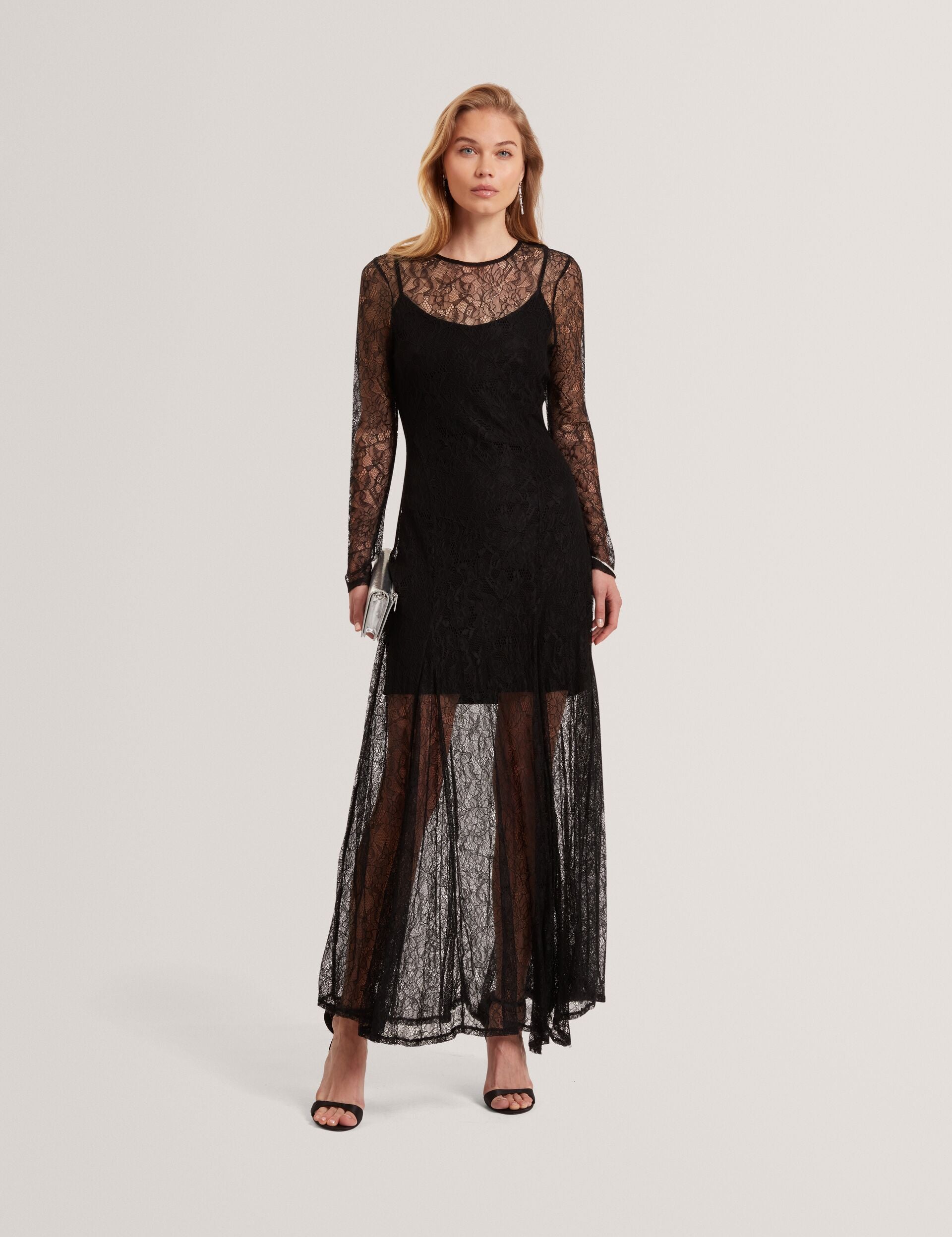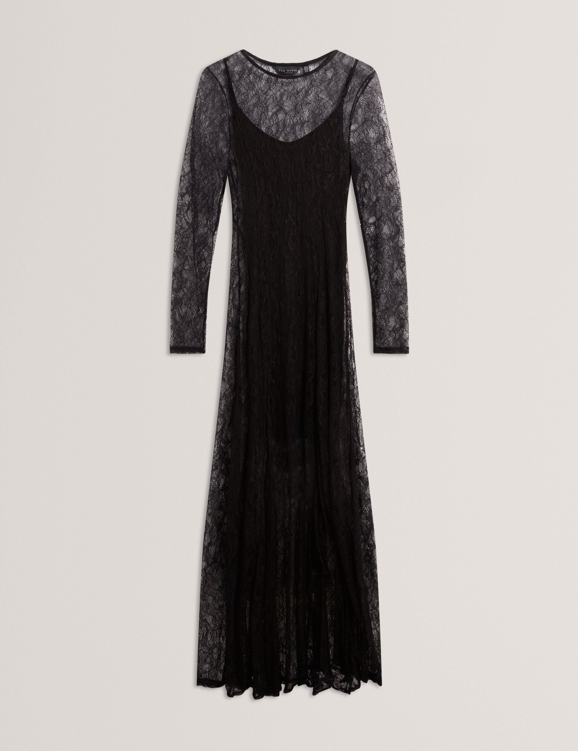 Sheer Lace Long Sleeve Maxi Dress