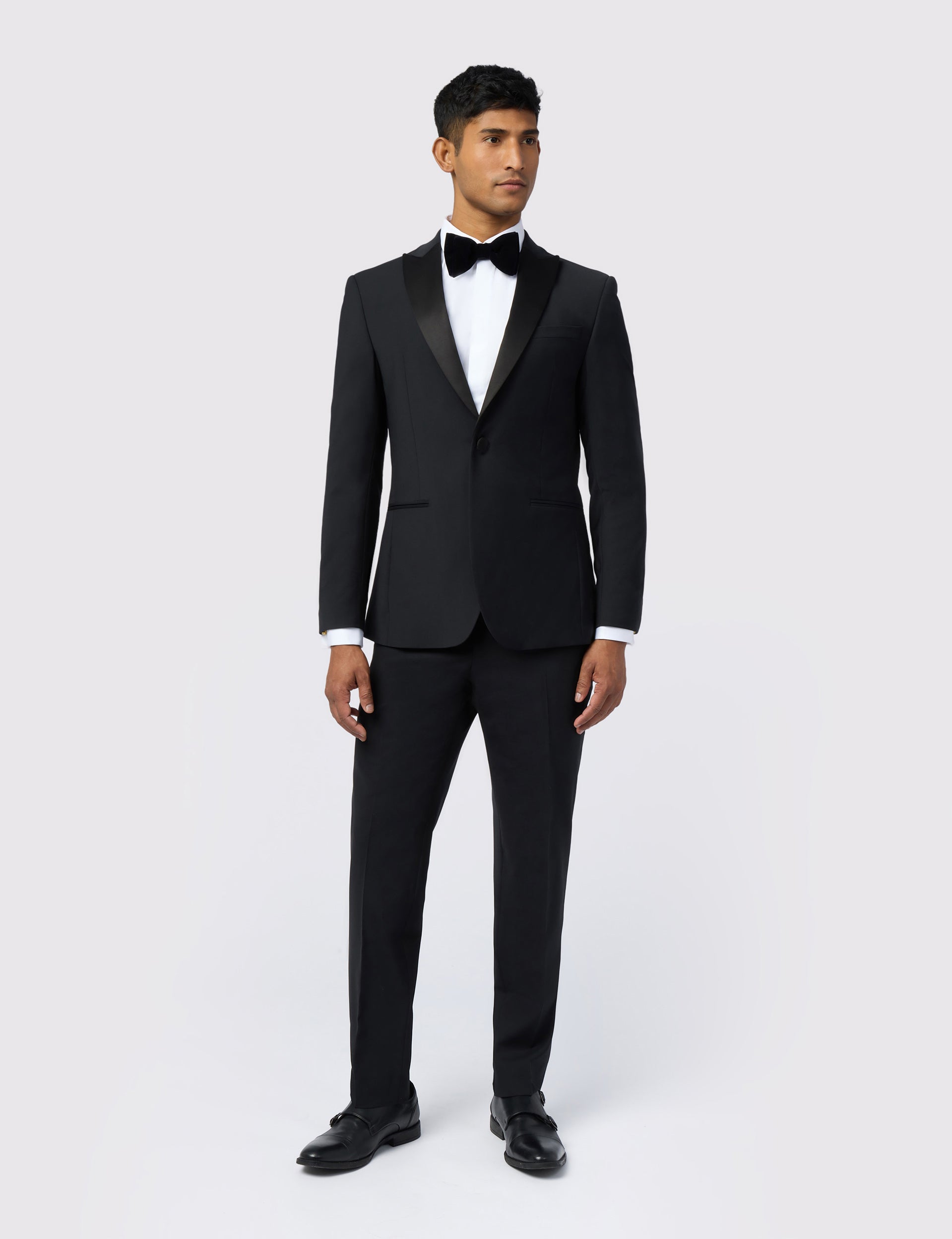 For your black tie events and festive celebrations, you can't go wrong with the PROMIJ black tuxedo jacket. Cut in a sleek slim fit, it's crafted from a wool-rich blend with a comfortable touch of stretch, and features a water and stain resistant finish for when the night gets raucous. Satin lapels and buttons add to its classic sophistication.