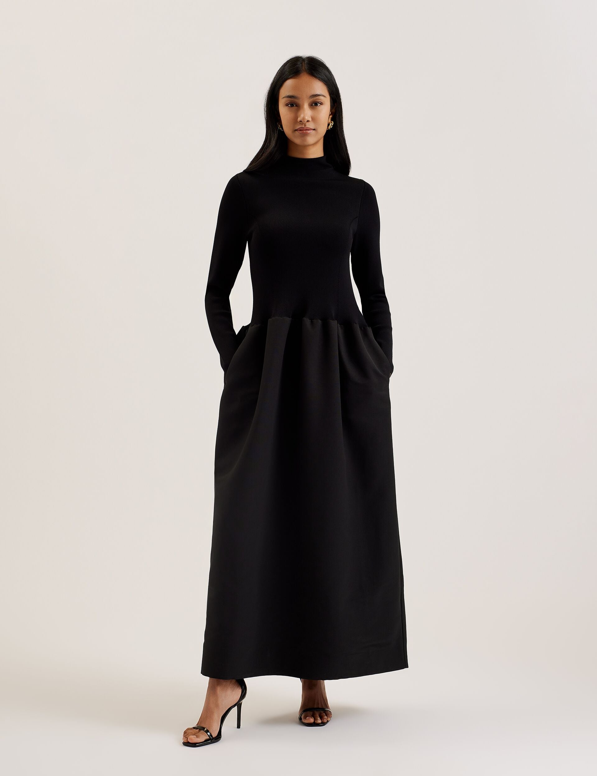Structured Maxi Dress With Knitted Bodice