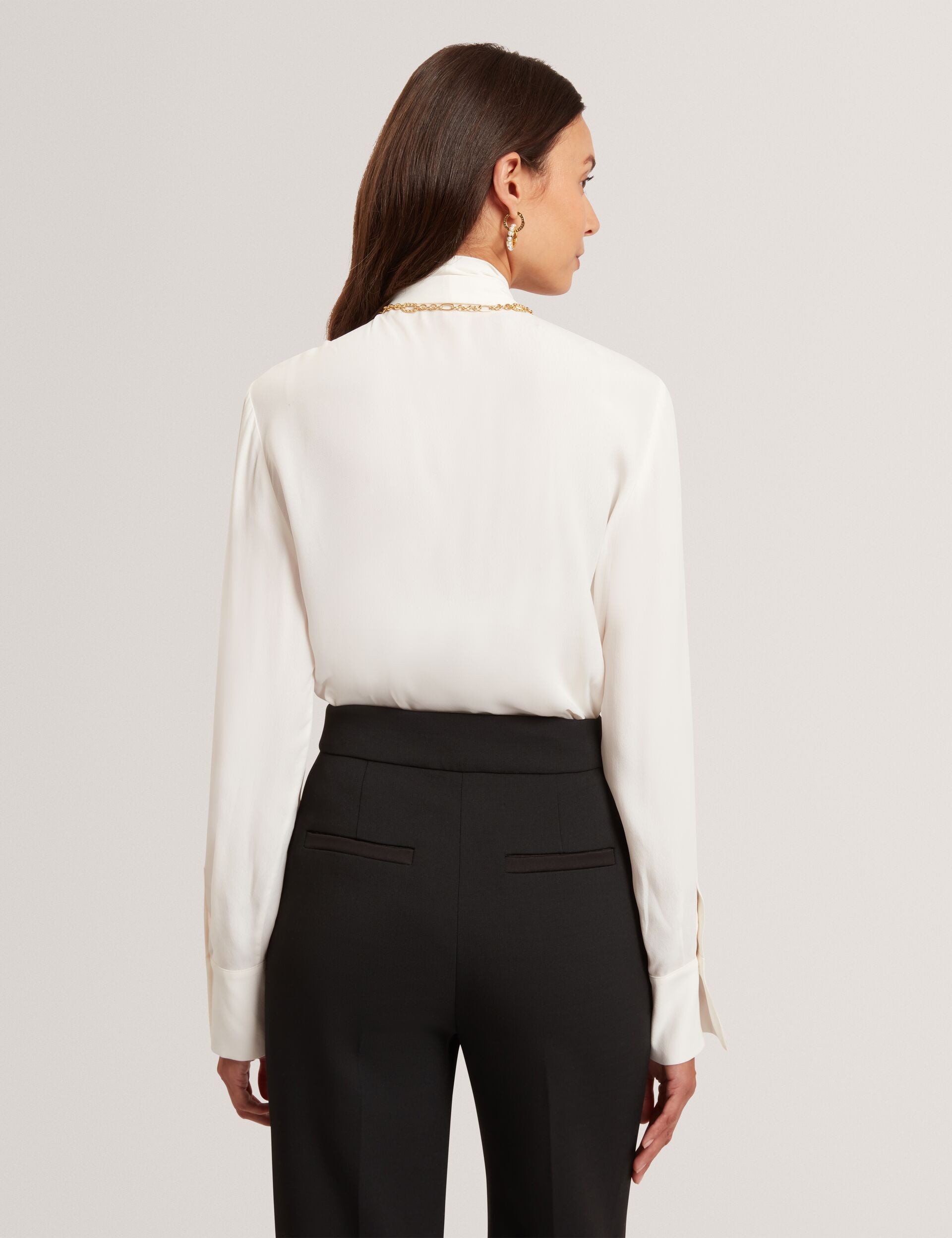 Effortlessly polished, the RESSIA long sleeve blouse features a soft neck tie that adds a touch of elegance. Made from viscose fabric with subtle texture, it drapes beautifully for chic comfort from desk to dinner.