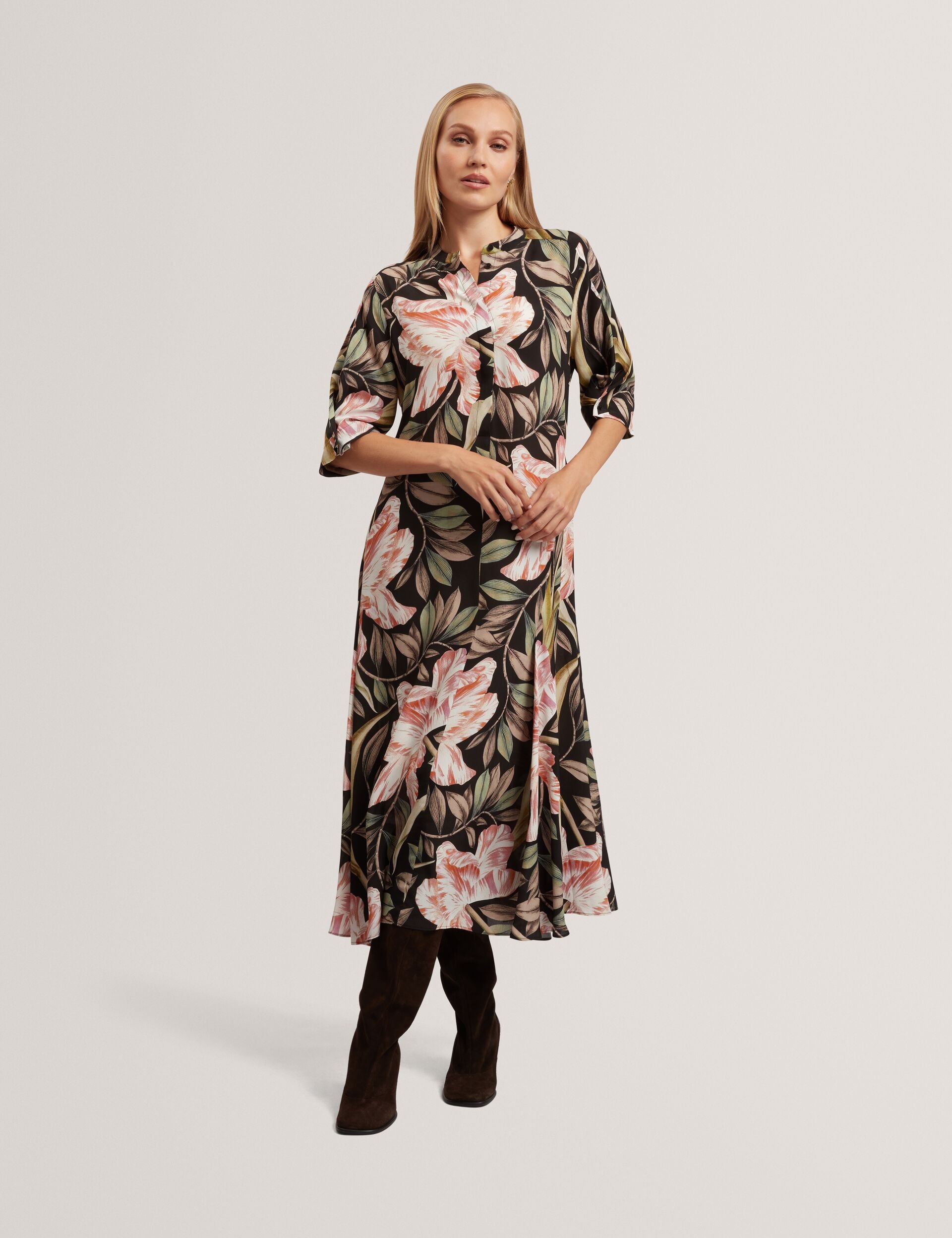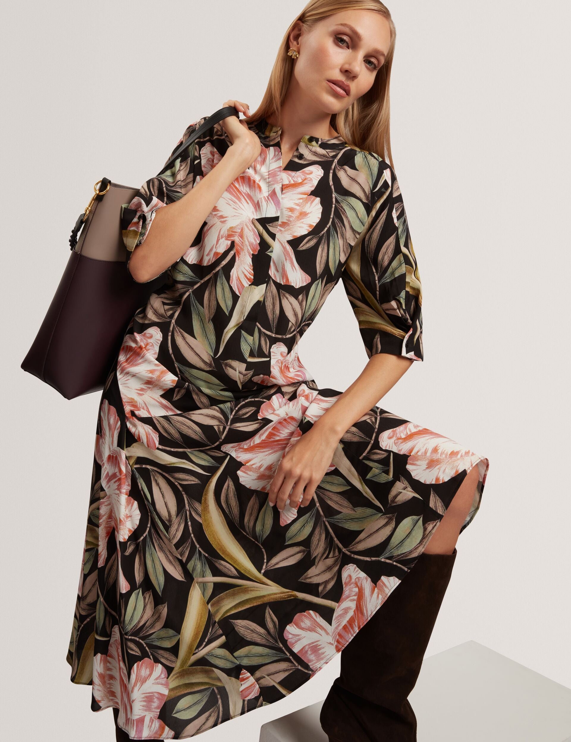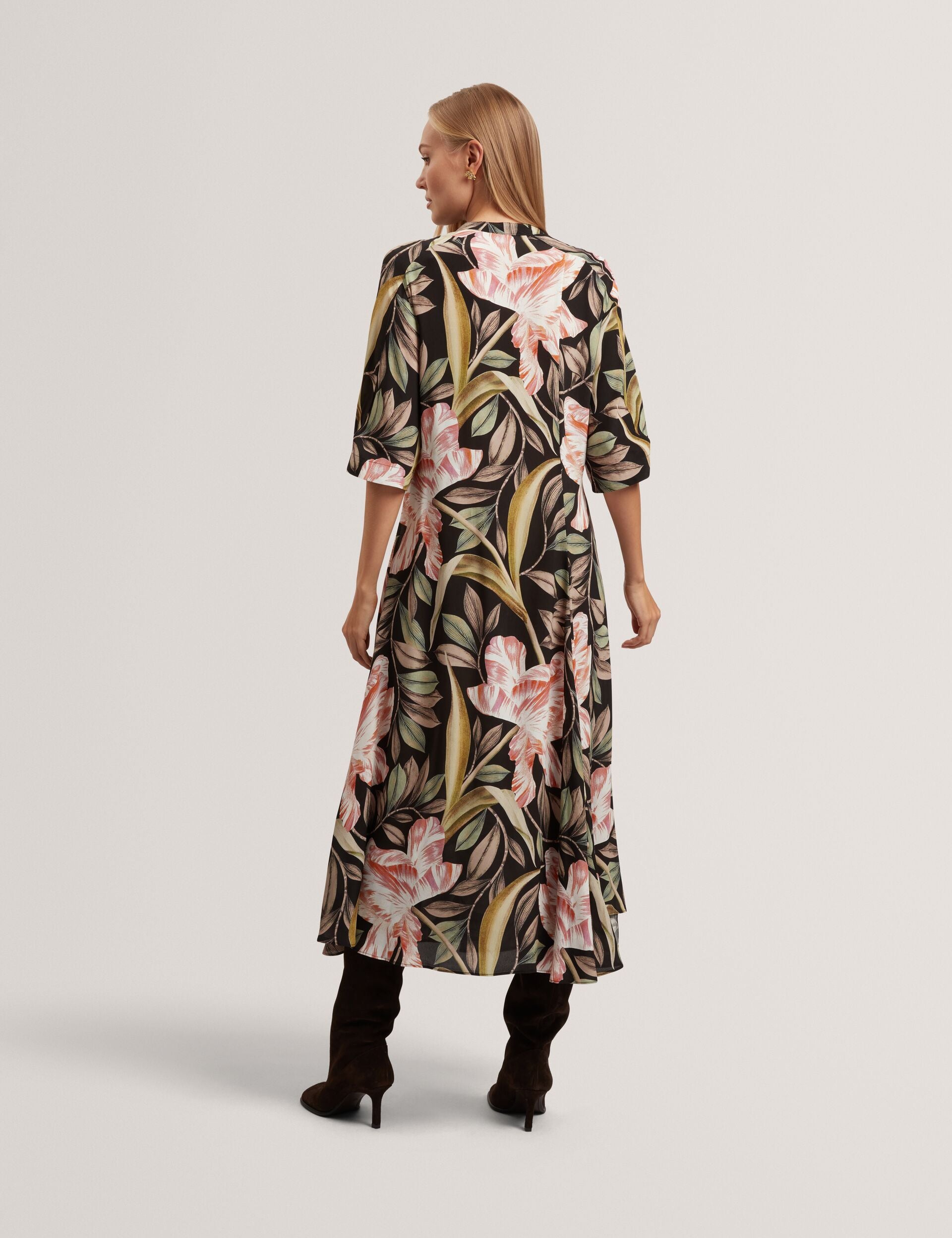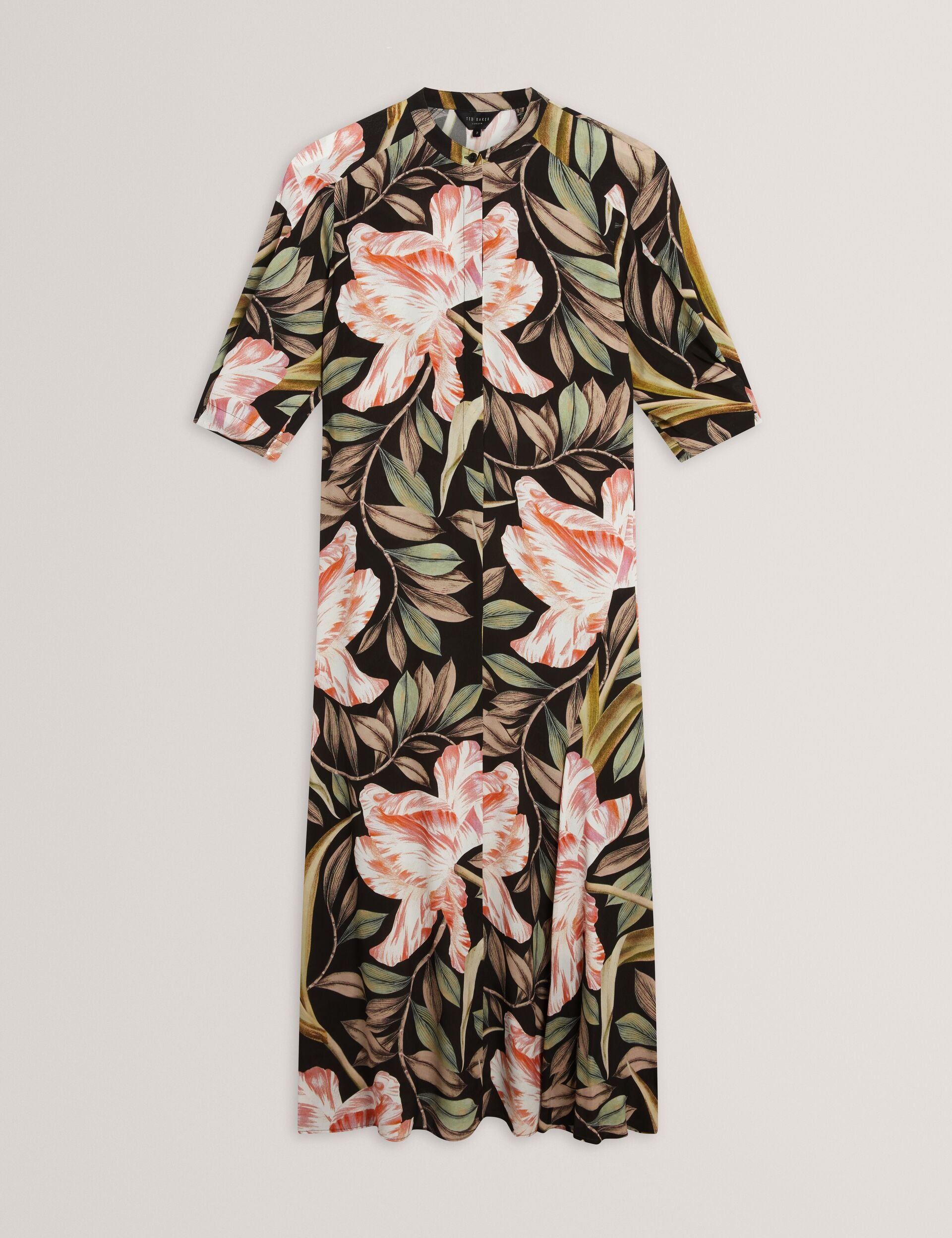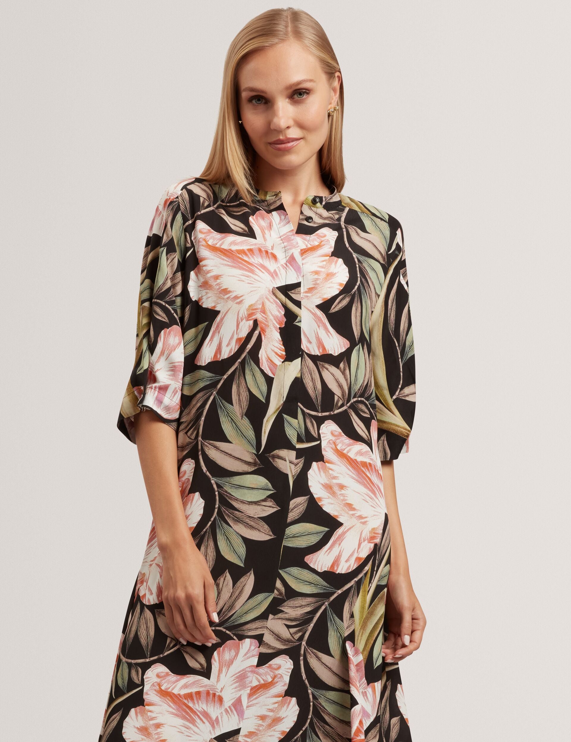 Meet your new throw-on favourite: it's REYJA. Designed with a statement tulip print in a loose, relaxed silhouette, this midaxi dress packs in personality and comfort, complete with a buttoned neckline that creates a slightly smarter feel.