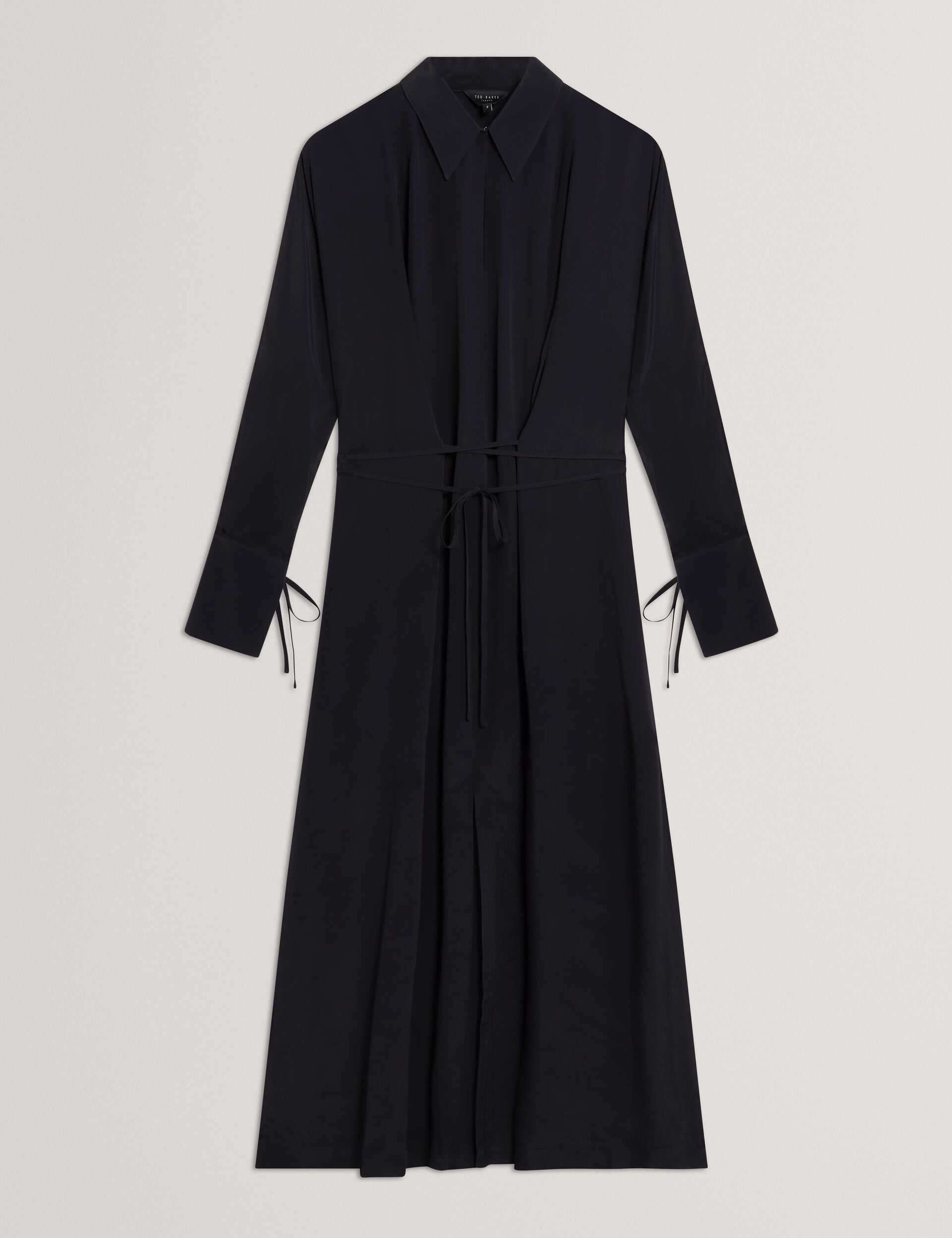 - Flared cuffs with tie fastening