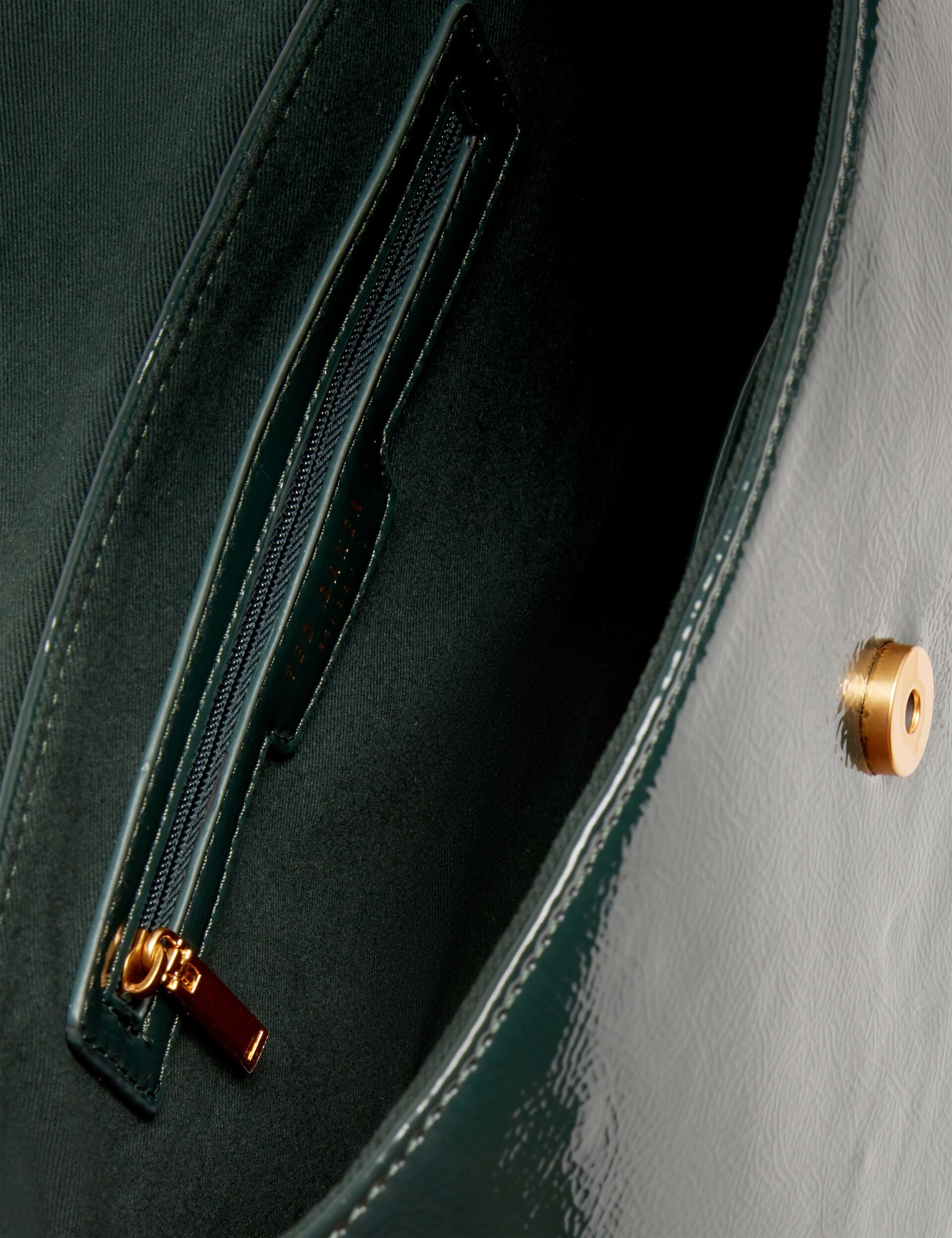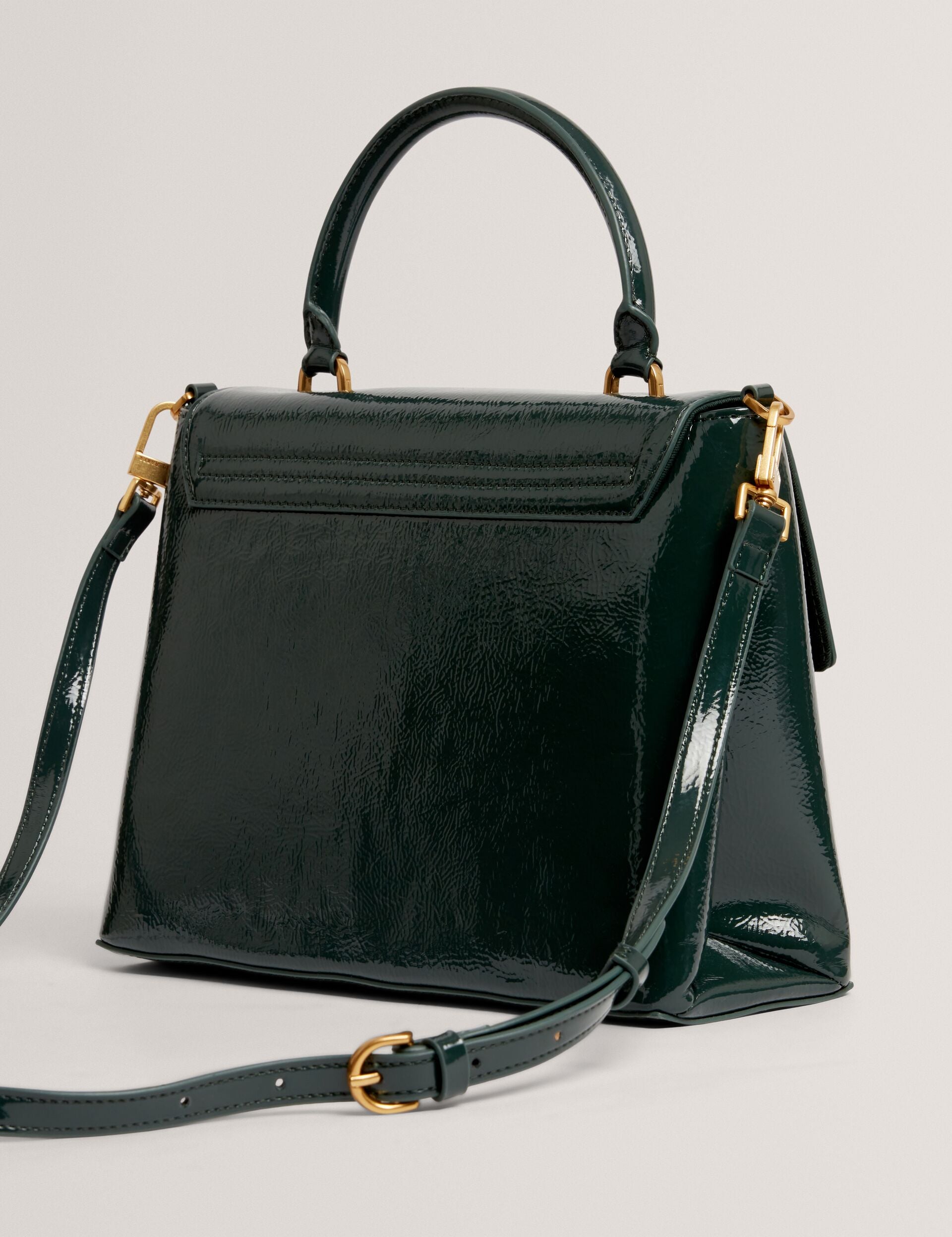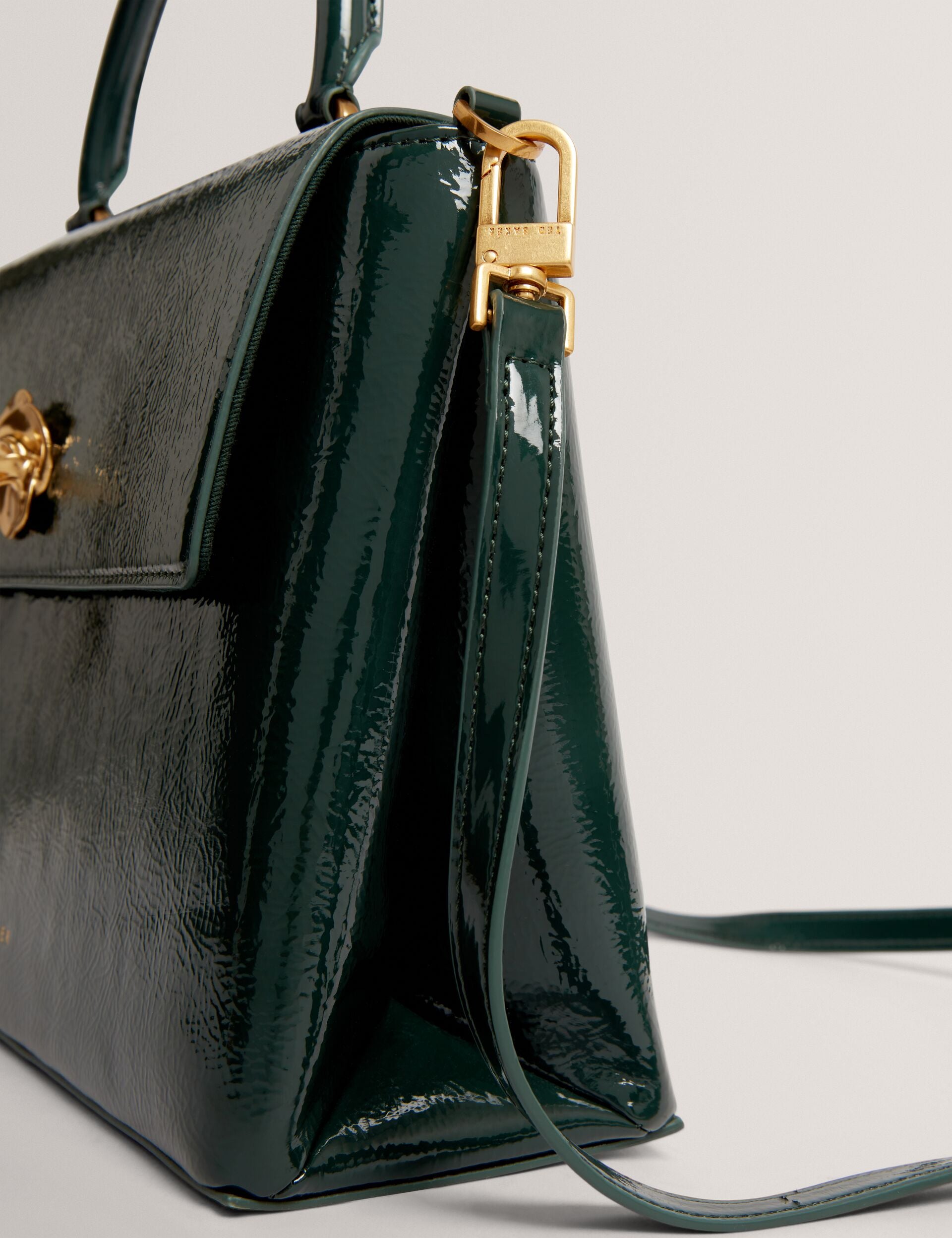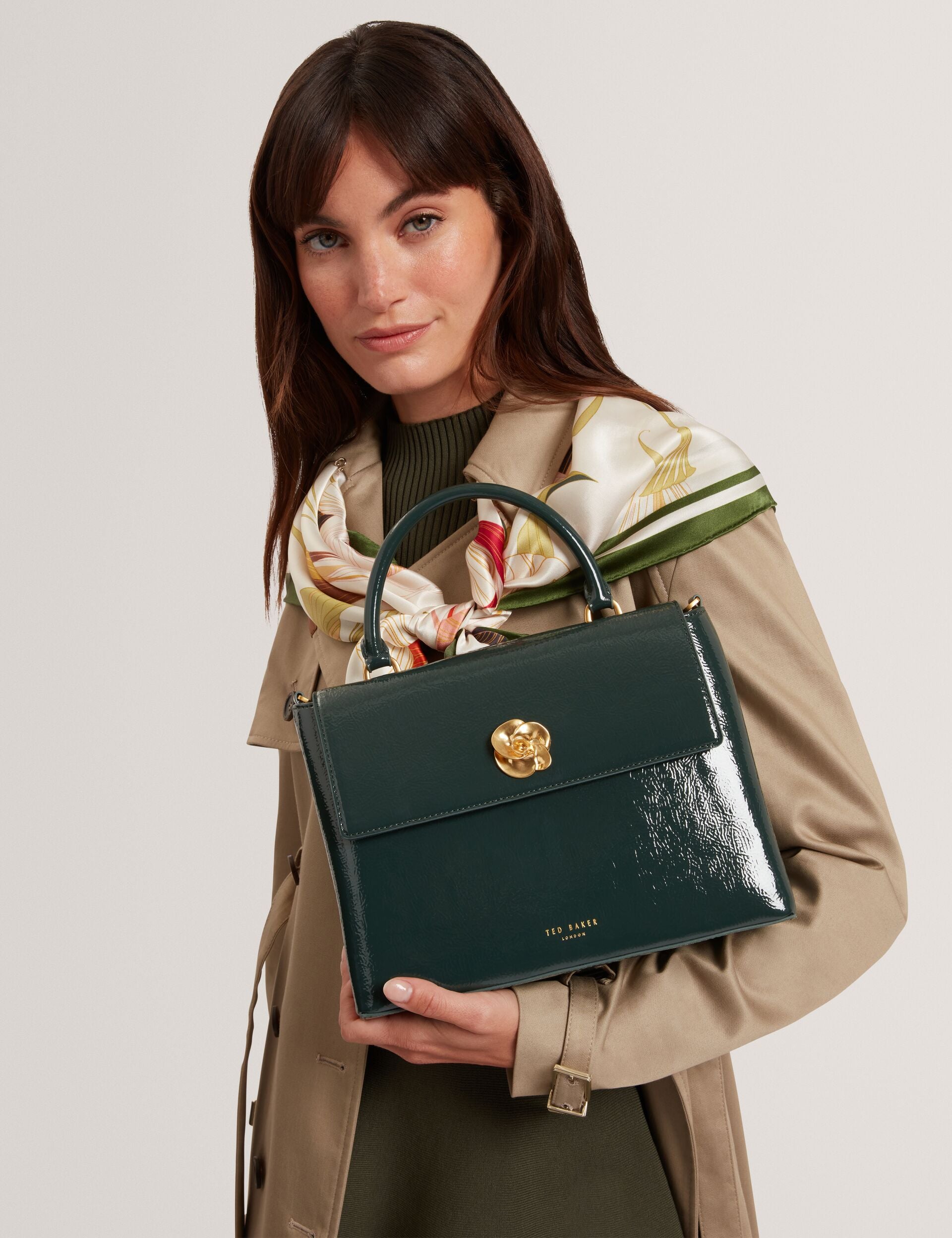 Perfectly polished, the ROSENAU bag features an elegant top handle design in a structured shape. Crafted from a glamorous patent faux leather and topped with a signature gold-tone rose detail, it brings a touch of romance to dressier looks.