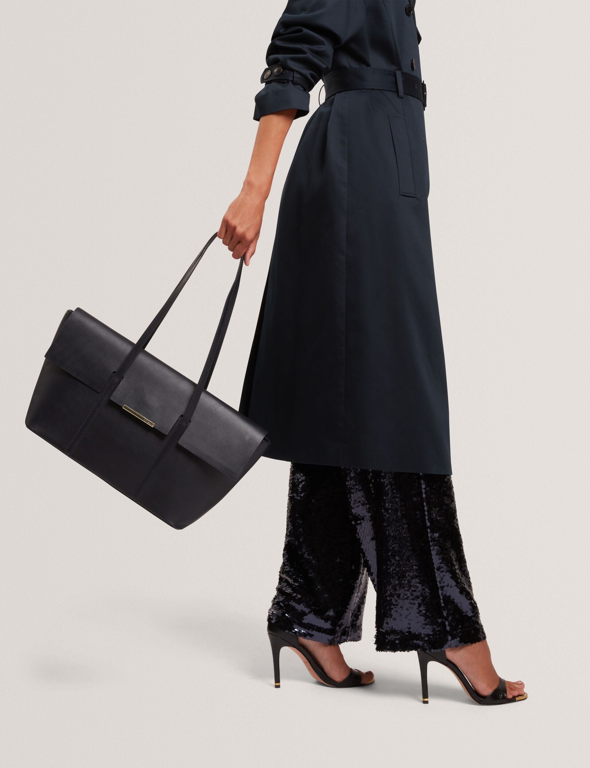 Sleek and refined, the ROUSE shopper bag features an elongated silhouette, smooth leather finish, and a polished bar detail on the front flap. Designed to bring understated elegance to your everyday.