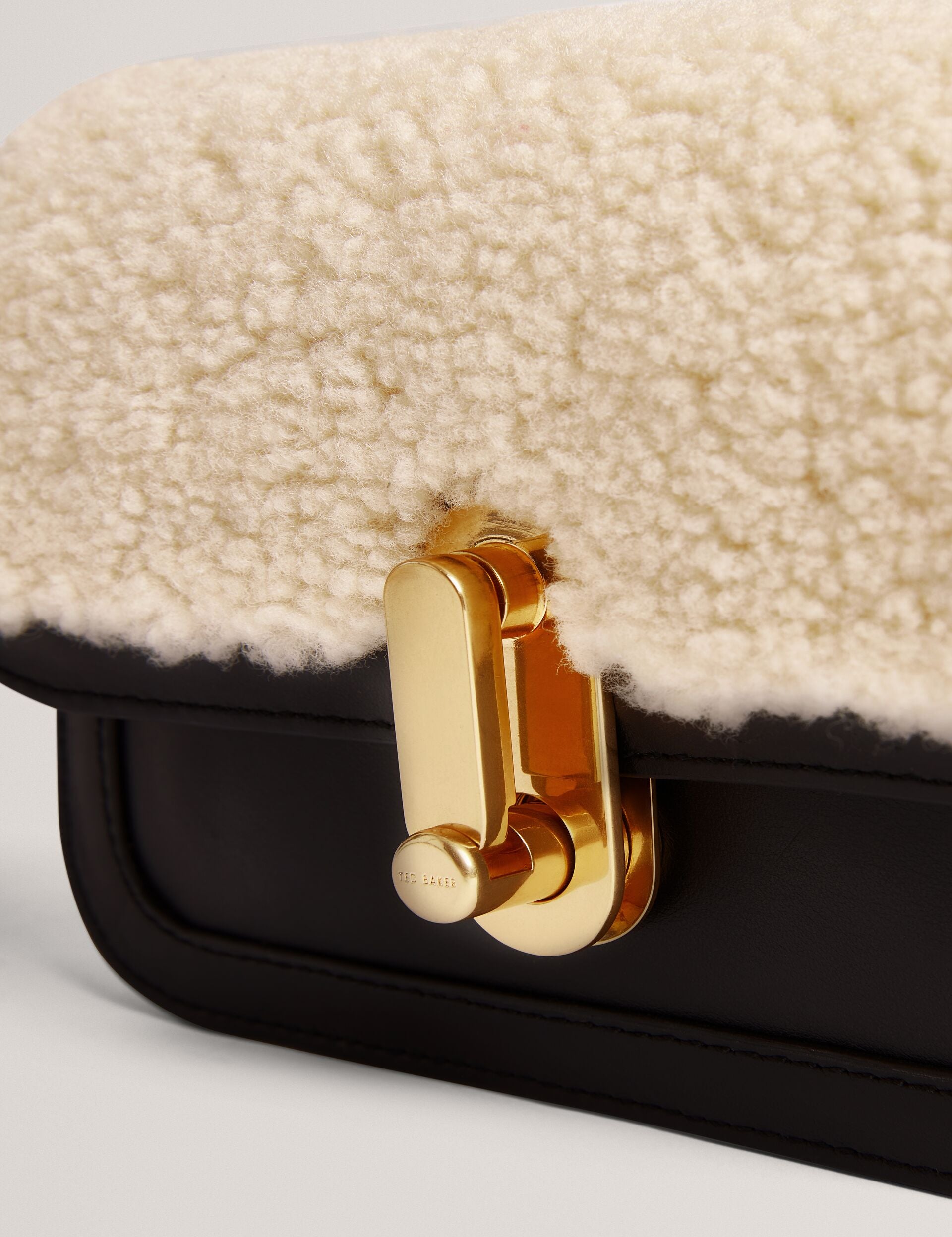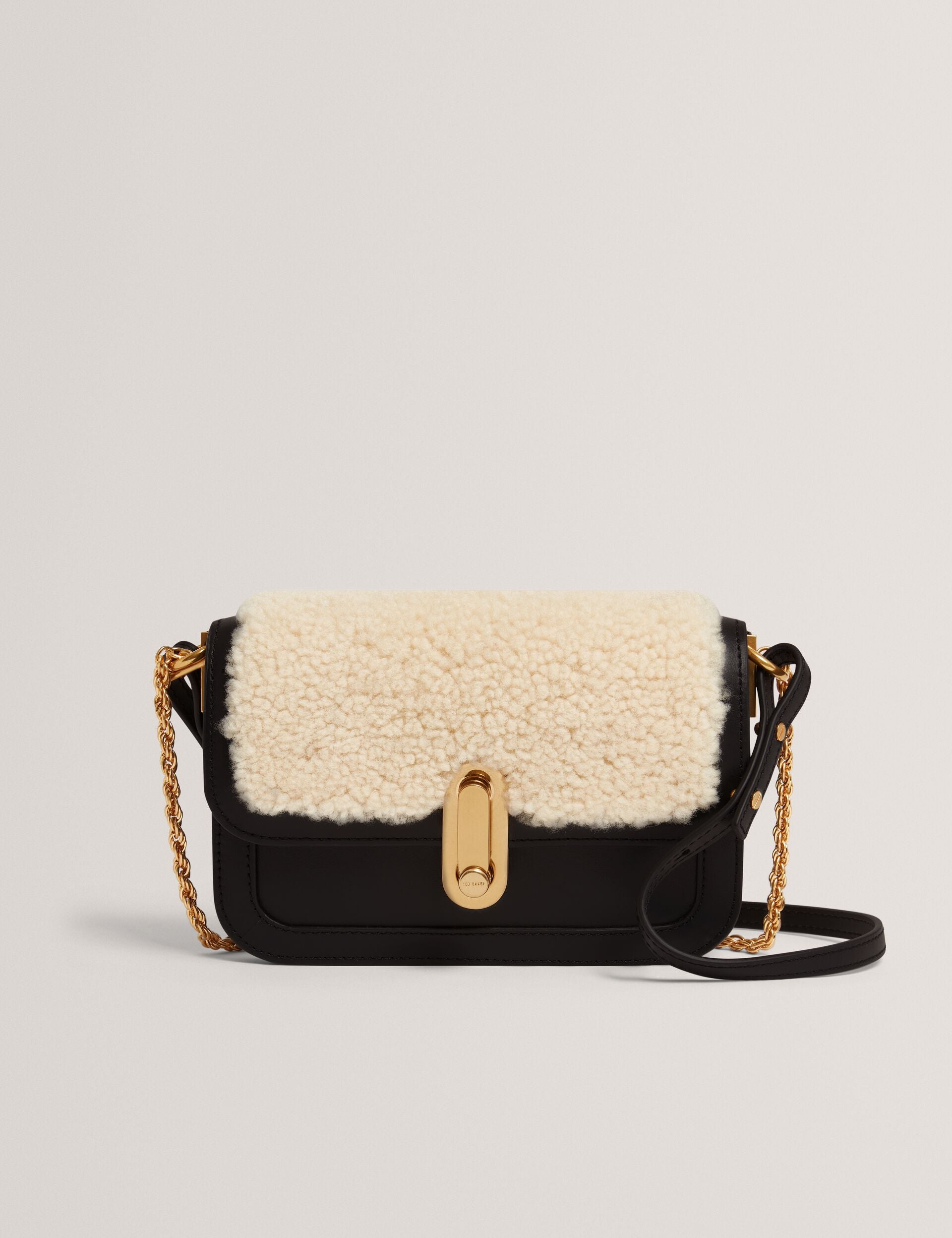 SHERLIN brings modern luxury to the forefront with a plush shearling panel added to its sleek leather upper. The structured satchel style fastens with our signature twist lock, and with two straps to switch between, this bag is an instant winner.