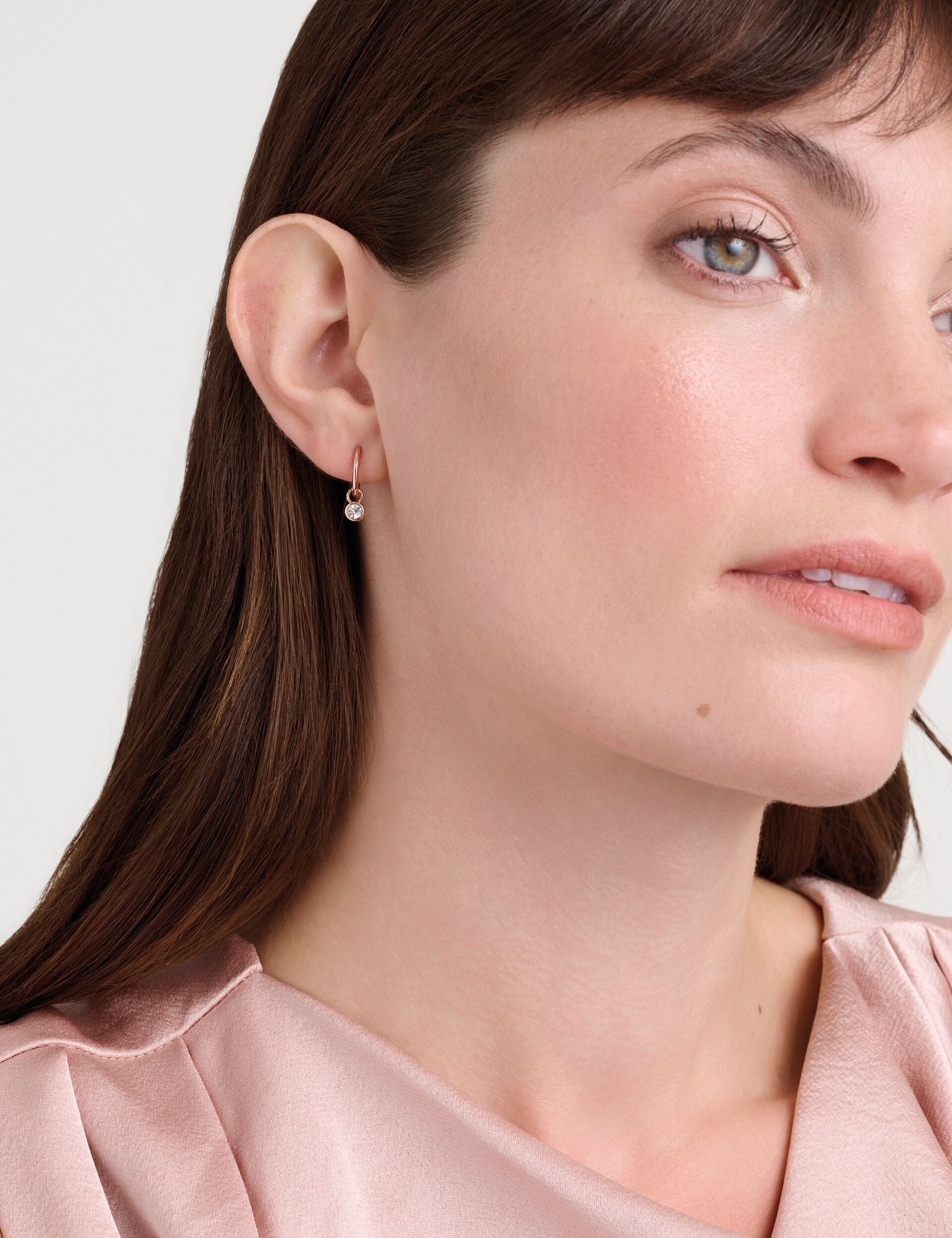 We've dropped some sparkle into the mix with these SINALAA earrings (literally). These huggie hoops feature a drop pendant that's set with a clear European crystal and finished with rose gold-tone plating, perfect for bringing a touch of glitz to your earring stacks.