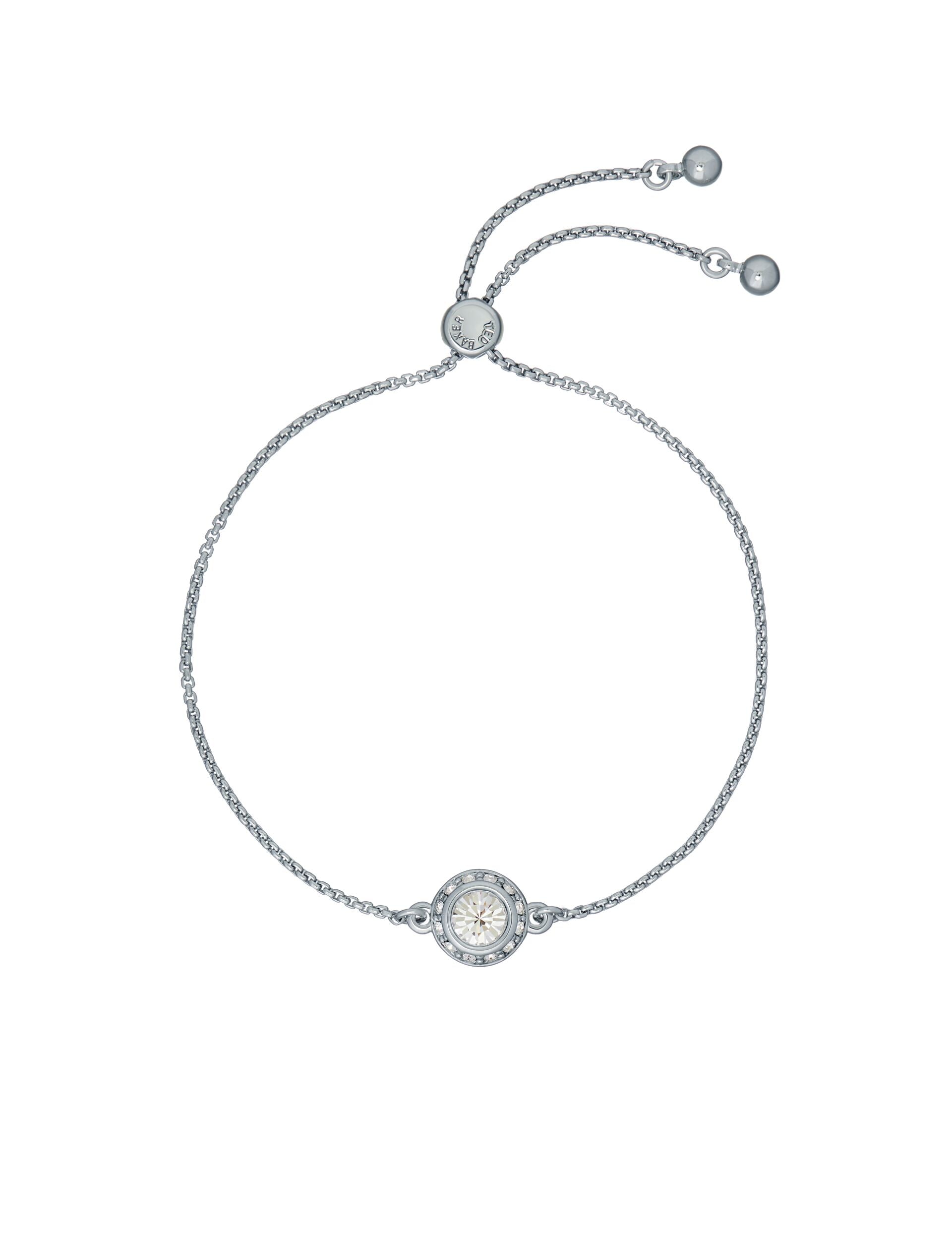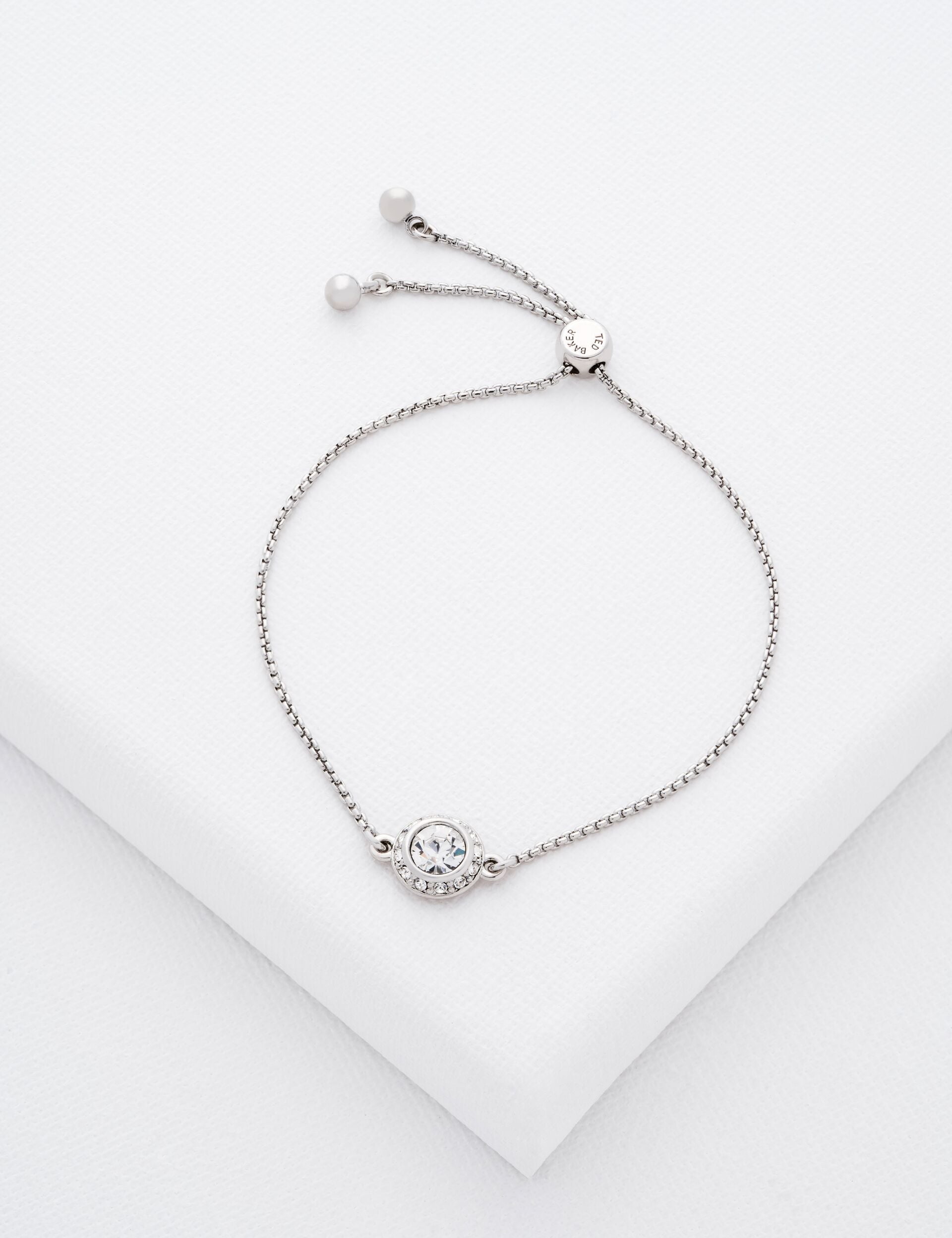 The SOLETA bracelet does sparkles the subtle way, showcasing a solitaire clear crystal surrounded by a pavé crystal halo. Its delicate chain can be fitted perfectly to you with its branded slider fastening, making it easy to layer with other pieces.