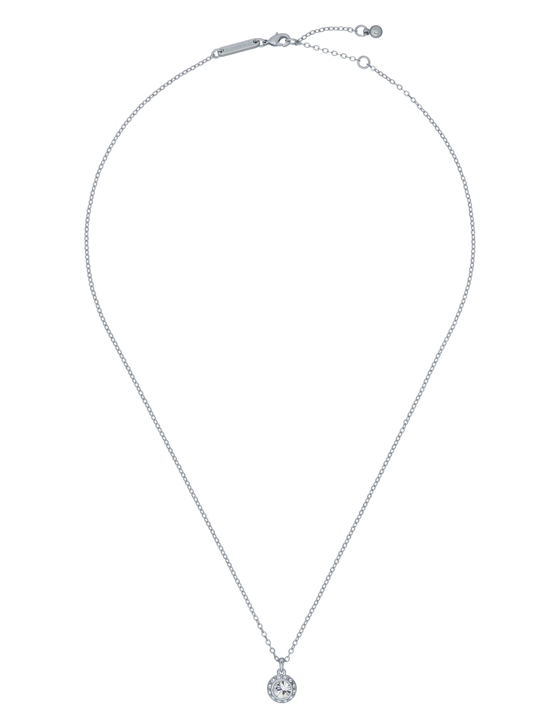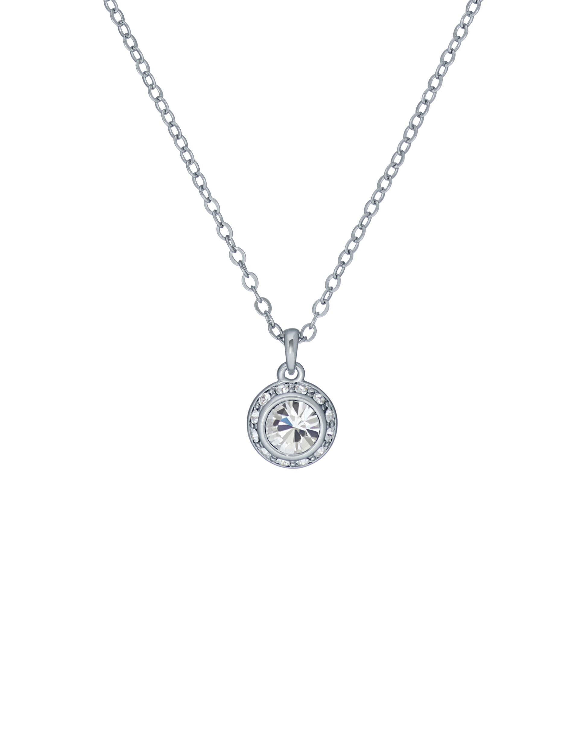 Simplicity is at its finest with SOLTELL. This necklace showcases a pendant set with a single clear crystal at its centre, and surrounded by a pavé crystal halo for all-around shine. Finished with an extendable chain, this versatile piece is fit for any occasion.