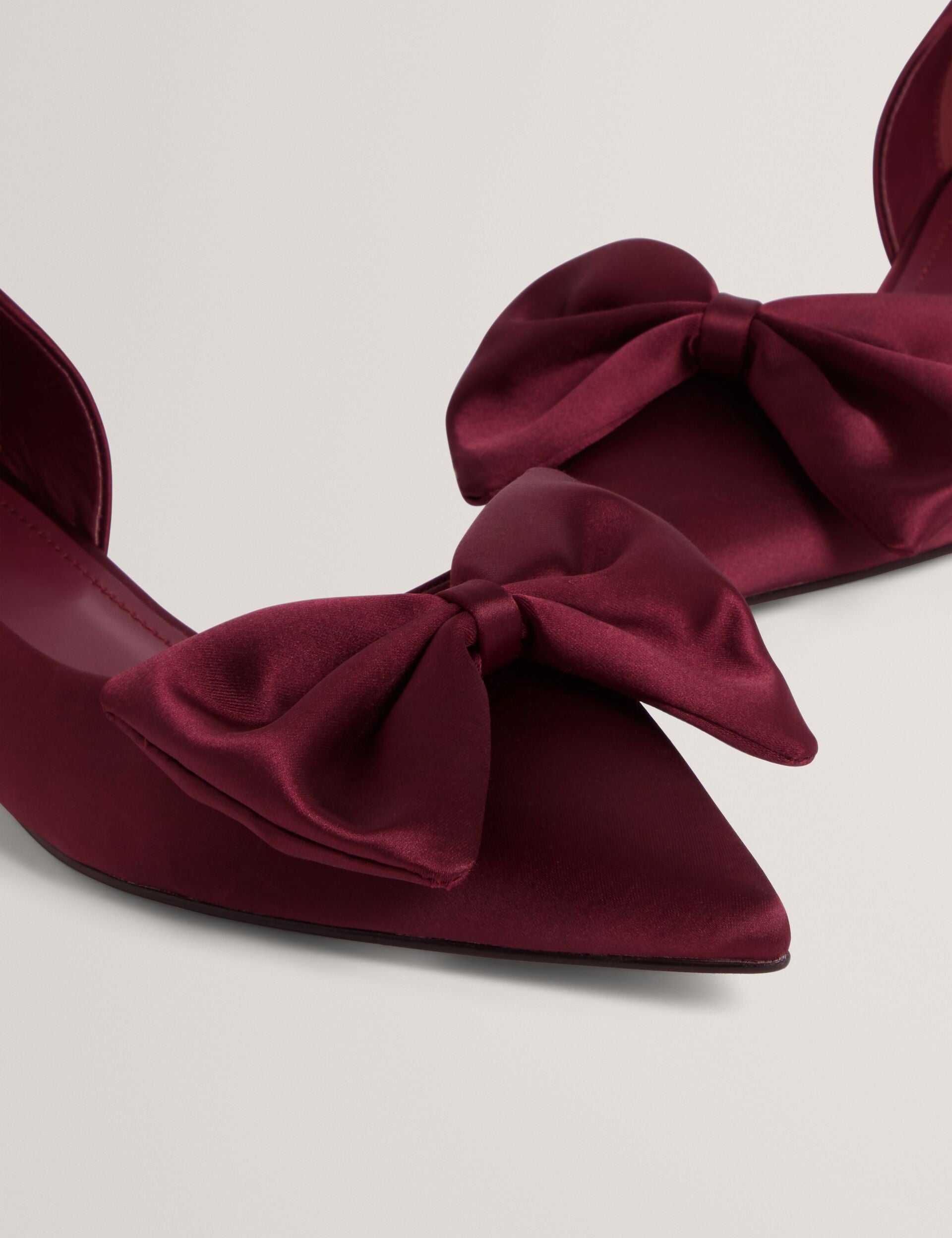 Delicate and feminine, the SOUFIYA kitten heels featured a smooth satin fabric embellished with an oversized bow at the pointed toe. It's effortless elegance that's comfortable all day.