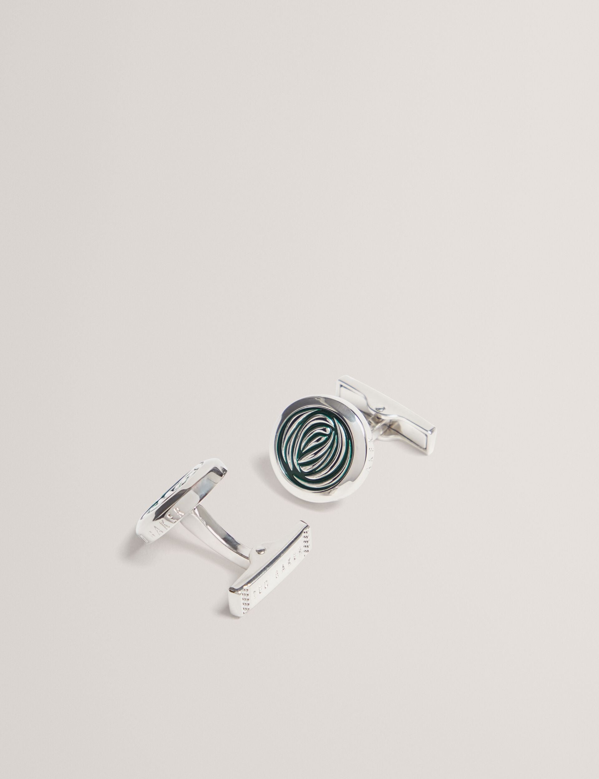 Give your shirt that unique touch with the SPIIRAL round cufflinks, featuring a contemporary spiral design set on a rich green backdrop.
