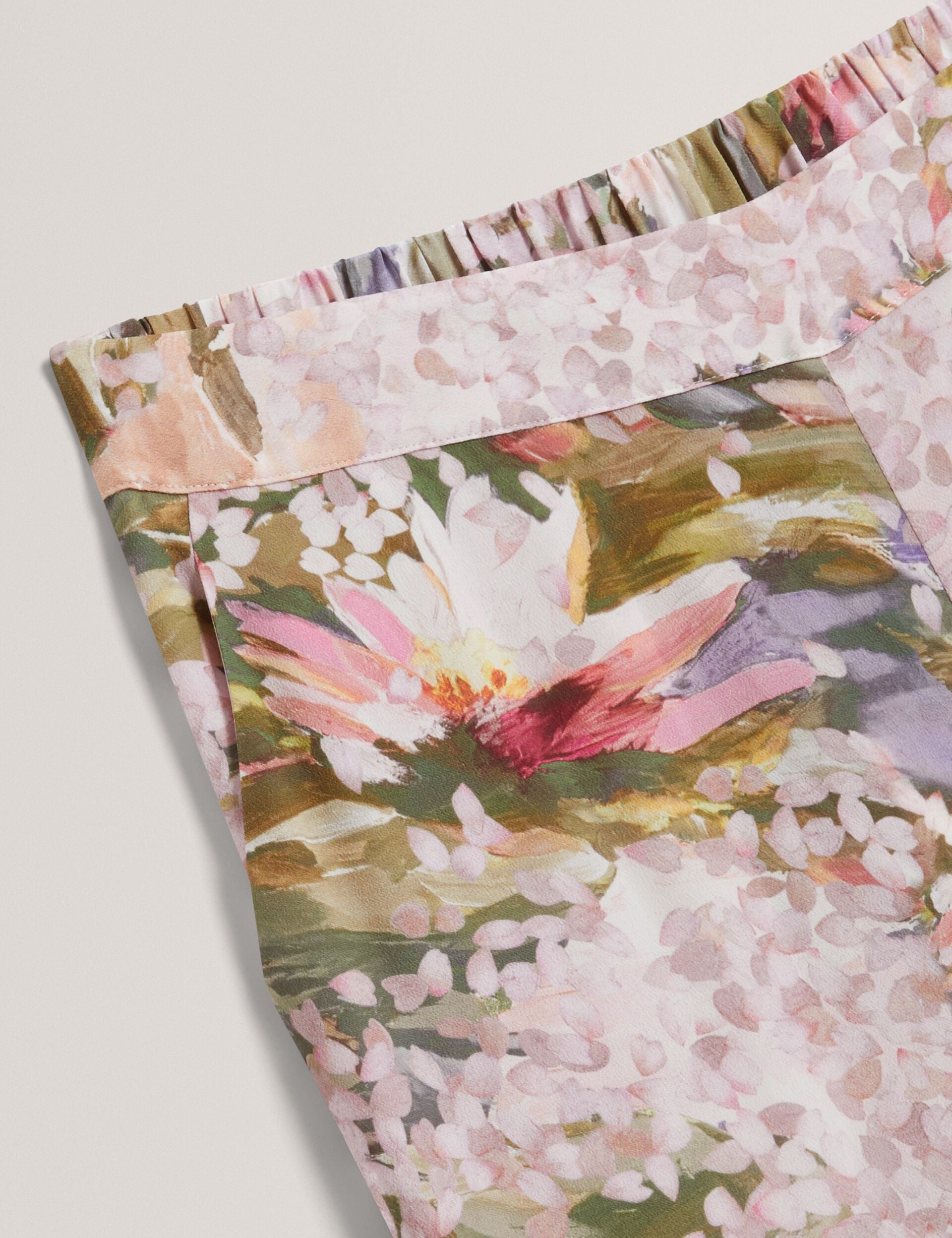 Lilypad Print Pull-On Wide Leg Trousers