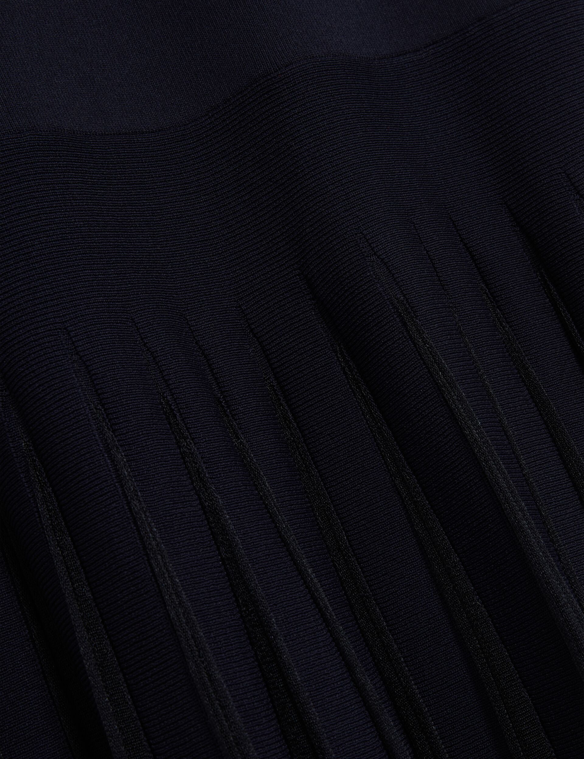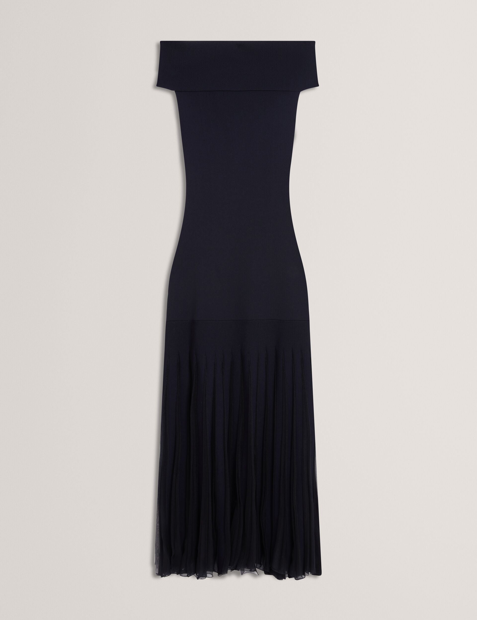Bardot Bodycon Knit Dress With Sheer Pleated Hem