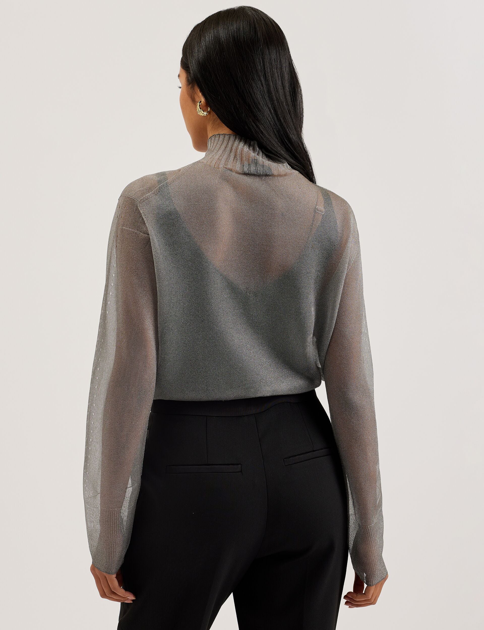 Shimmer Sheer Knit Funnel Neck Top