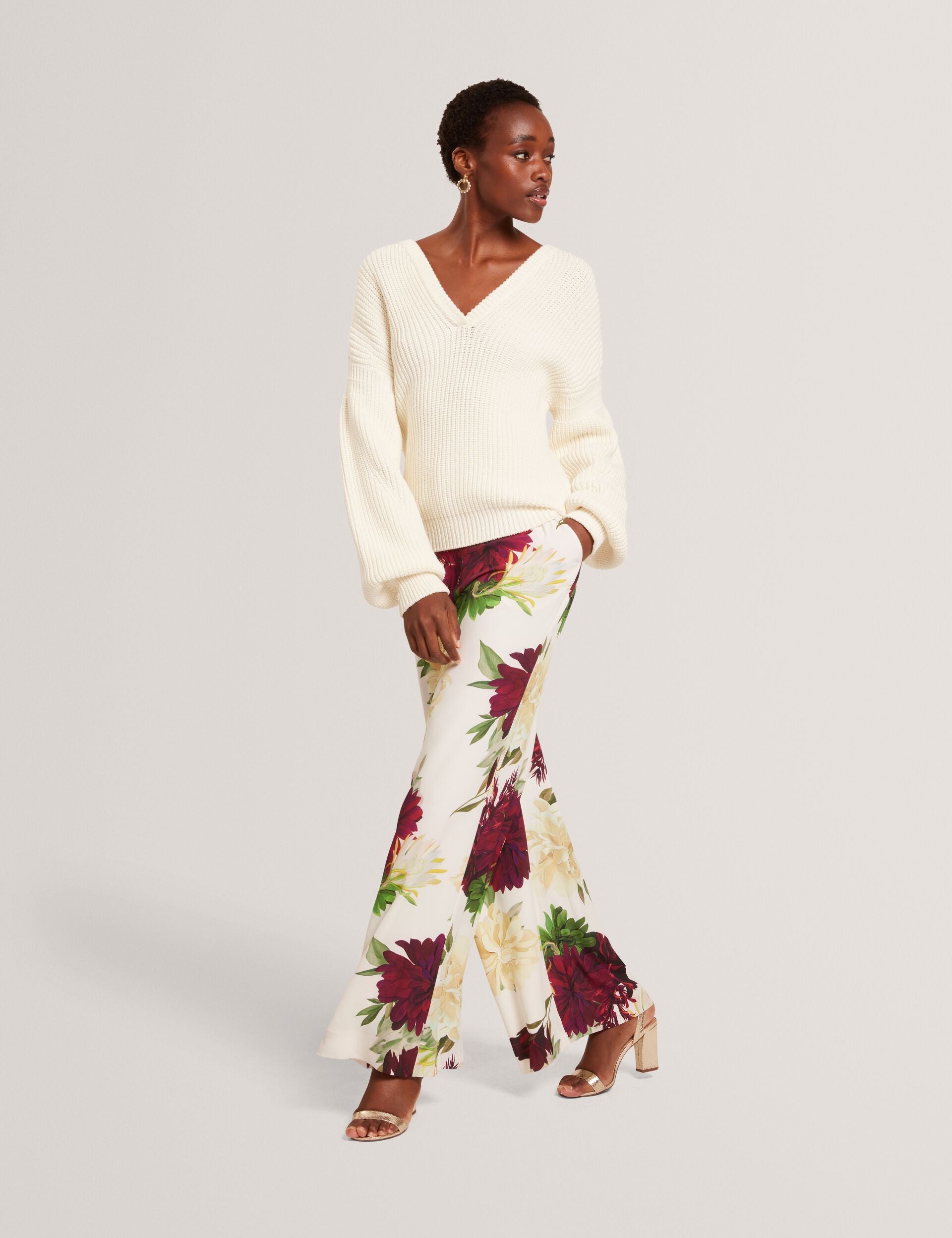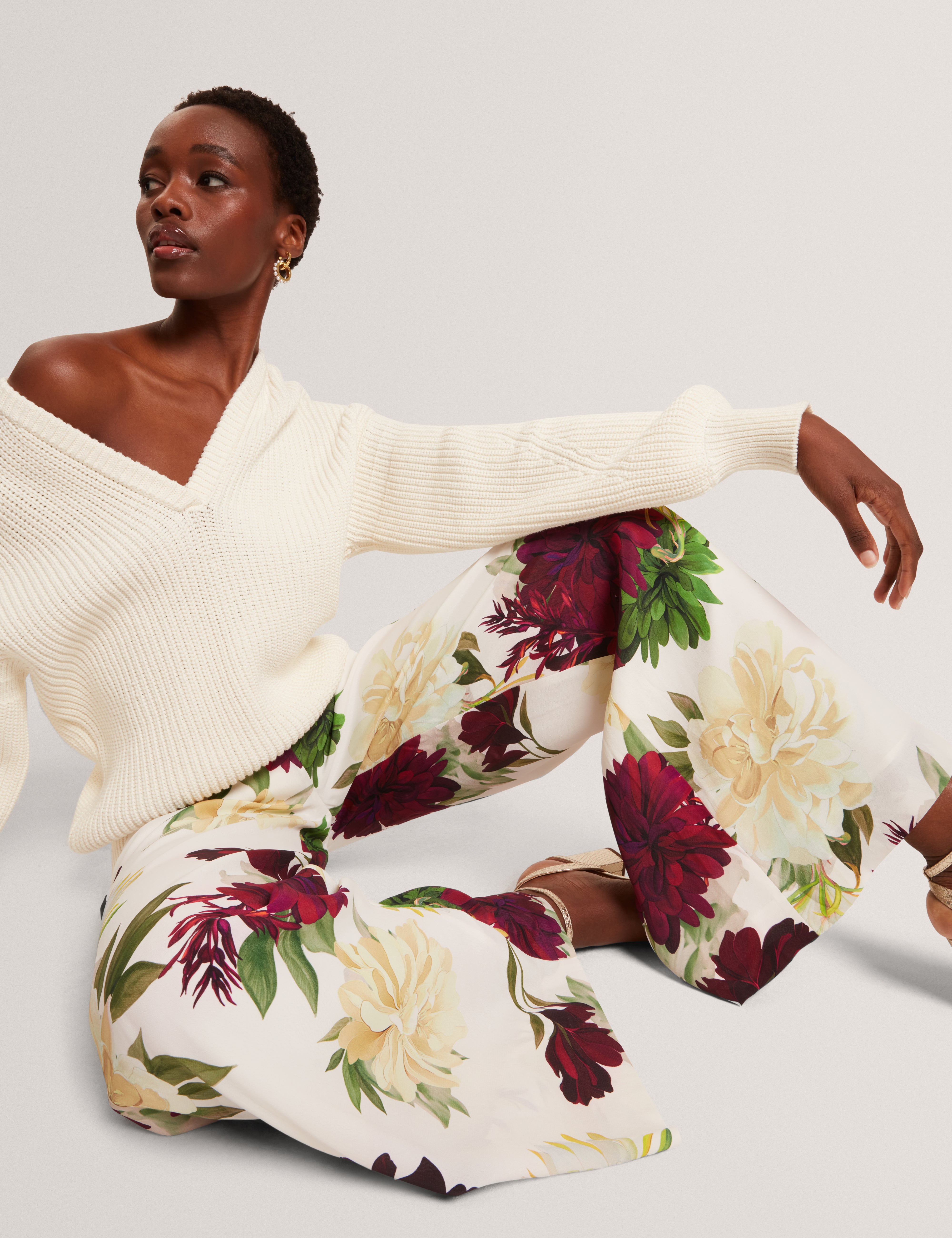Dahlia Print Wide Leg Woven Trousers
