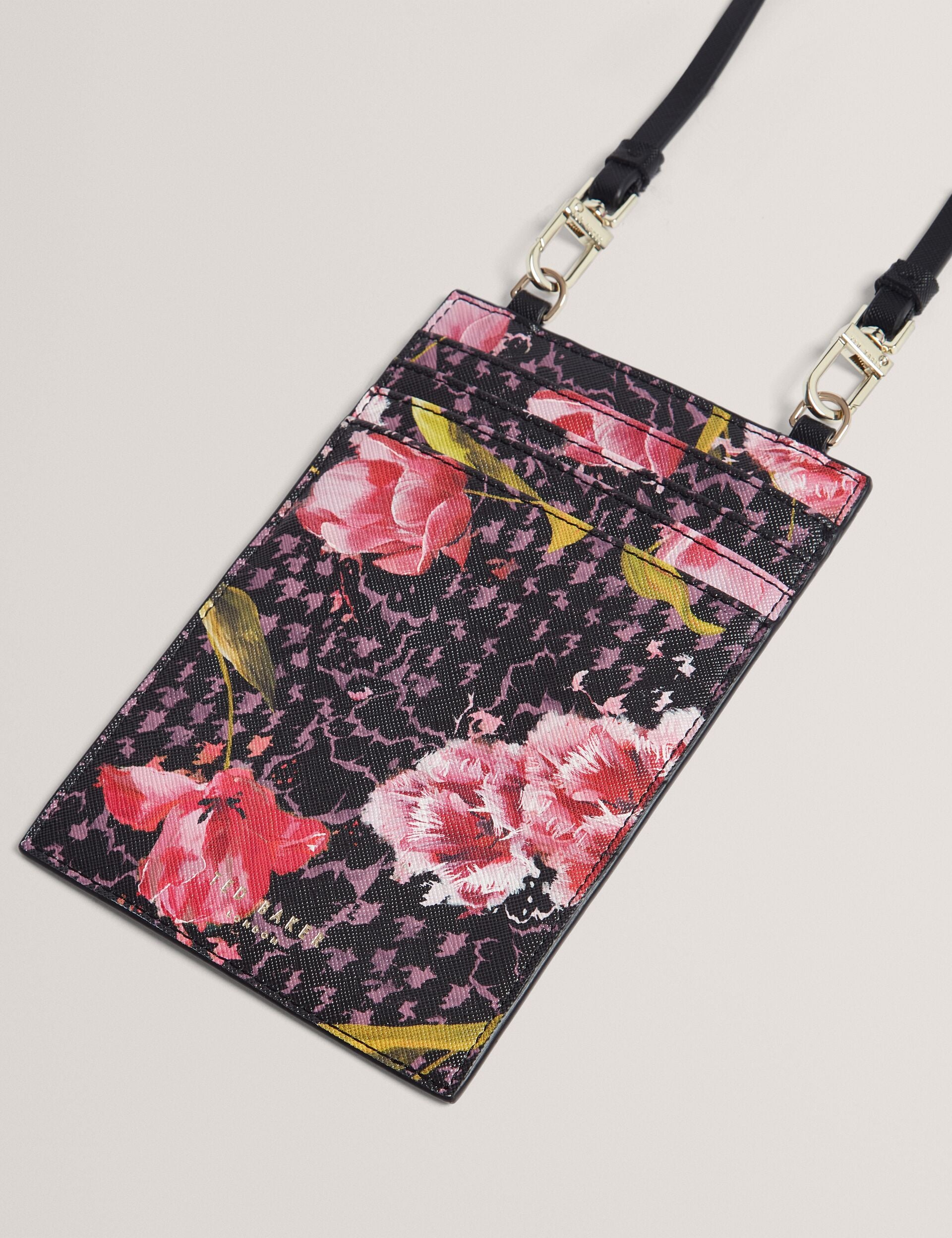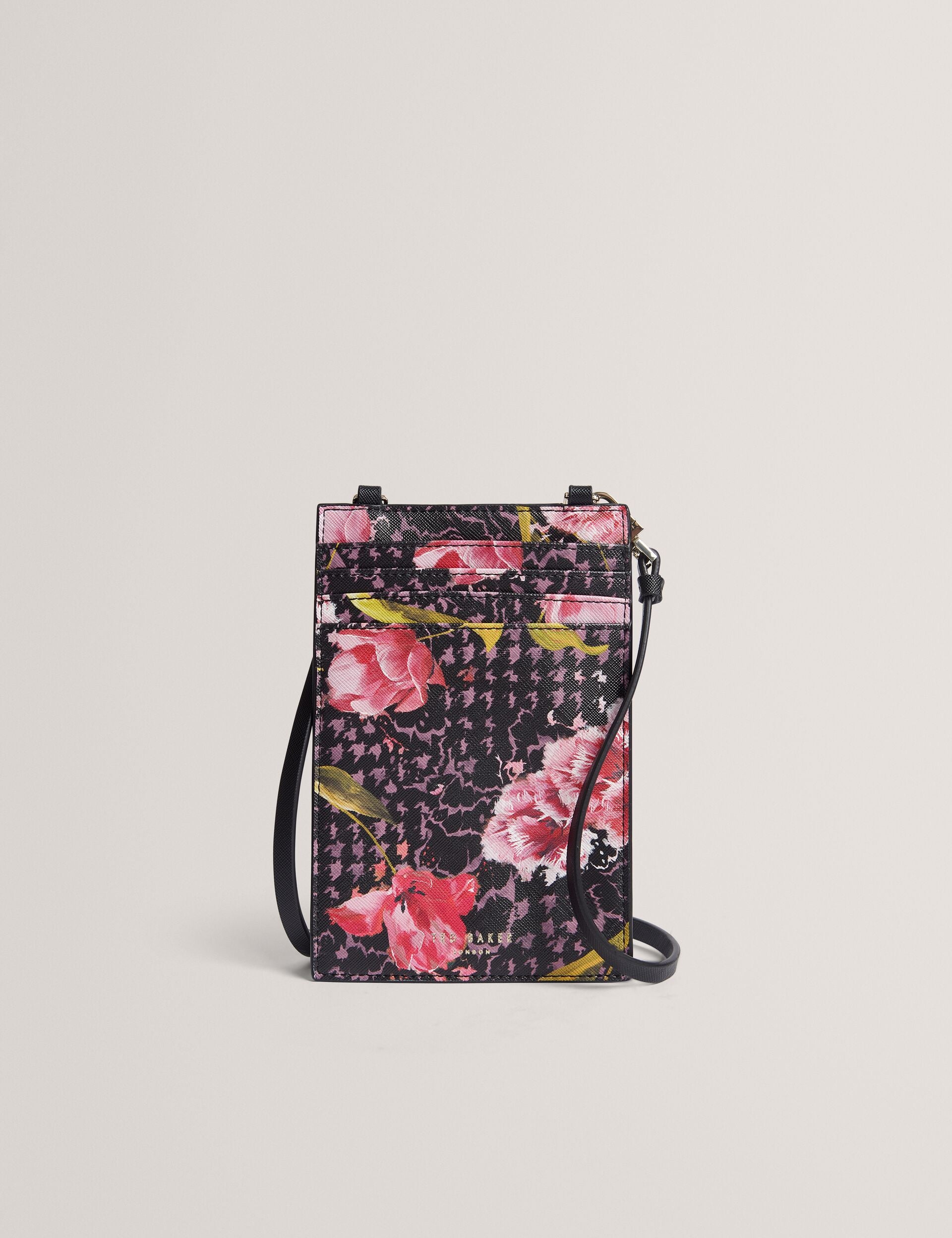 No more rooting around in your bag - TULSAH keeps your phone and cards at the ready. Printed with a chic floral houndstooth print, this pouch comes with a removable lanyard strap for hands-free wear.