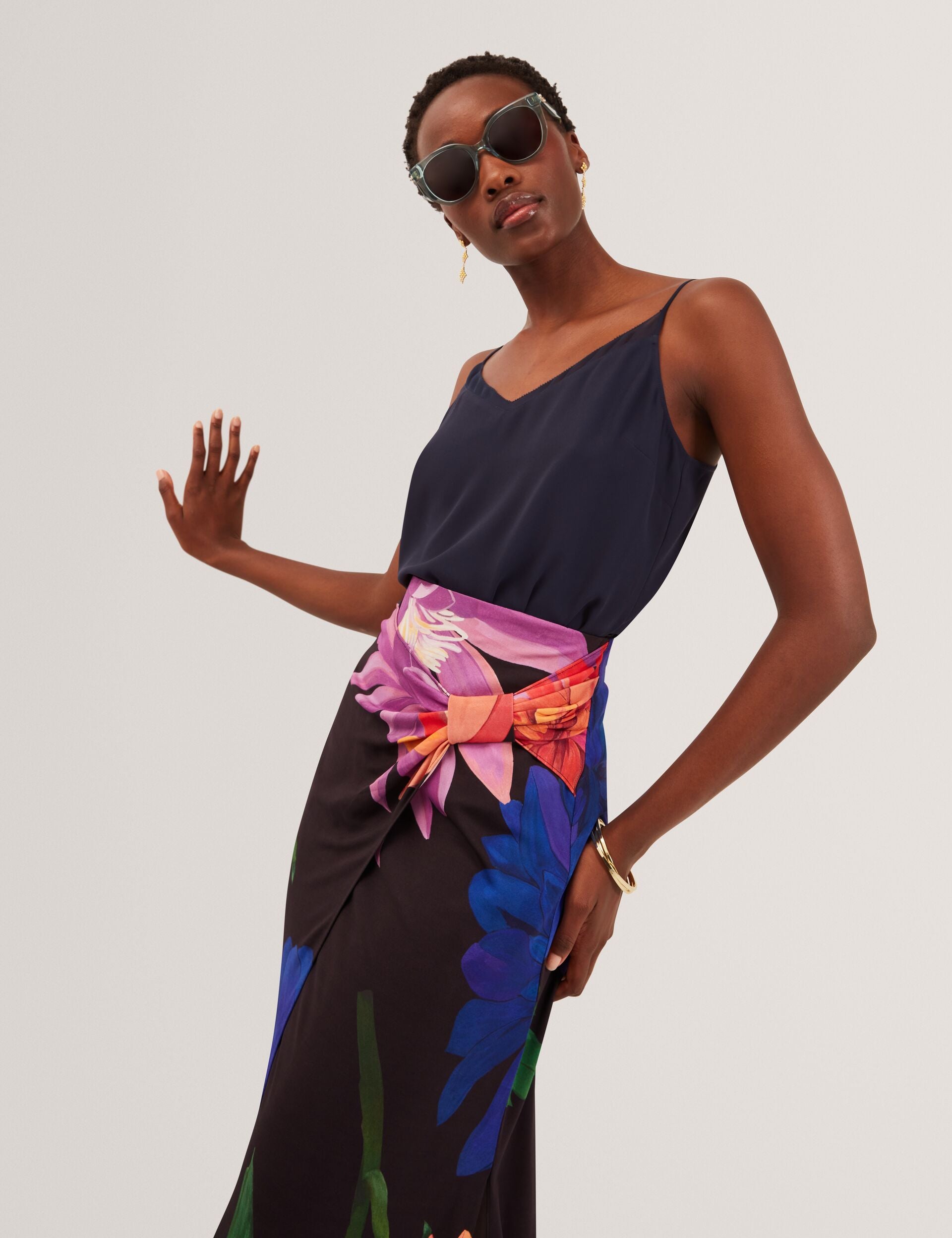 Dahlia Floral Print Wrapover Midi Skirt