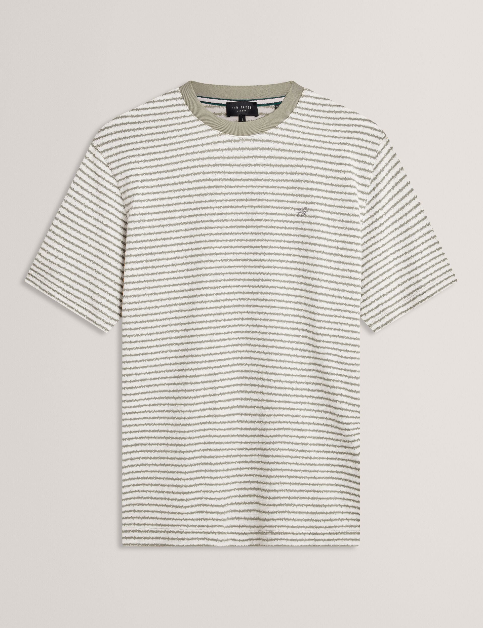 Textural Stripe Crew Neck Cotton T-Shirt