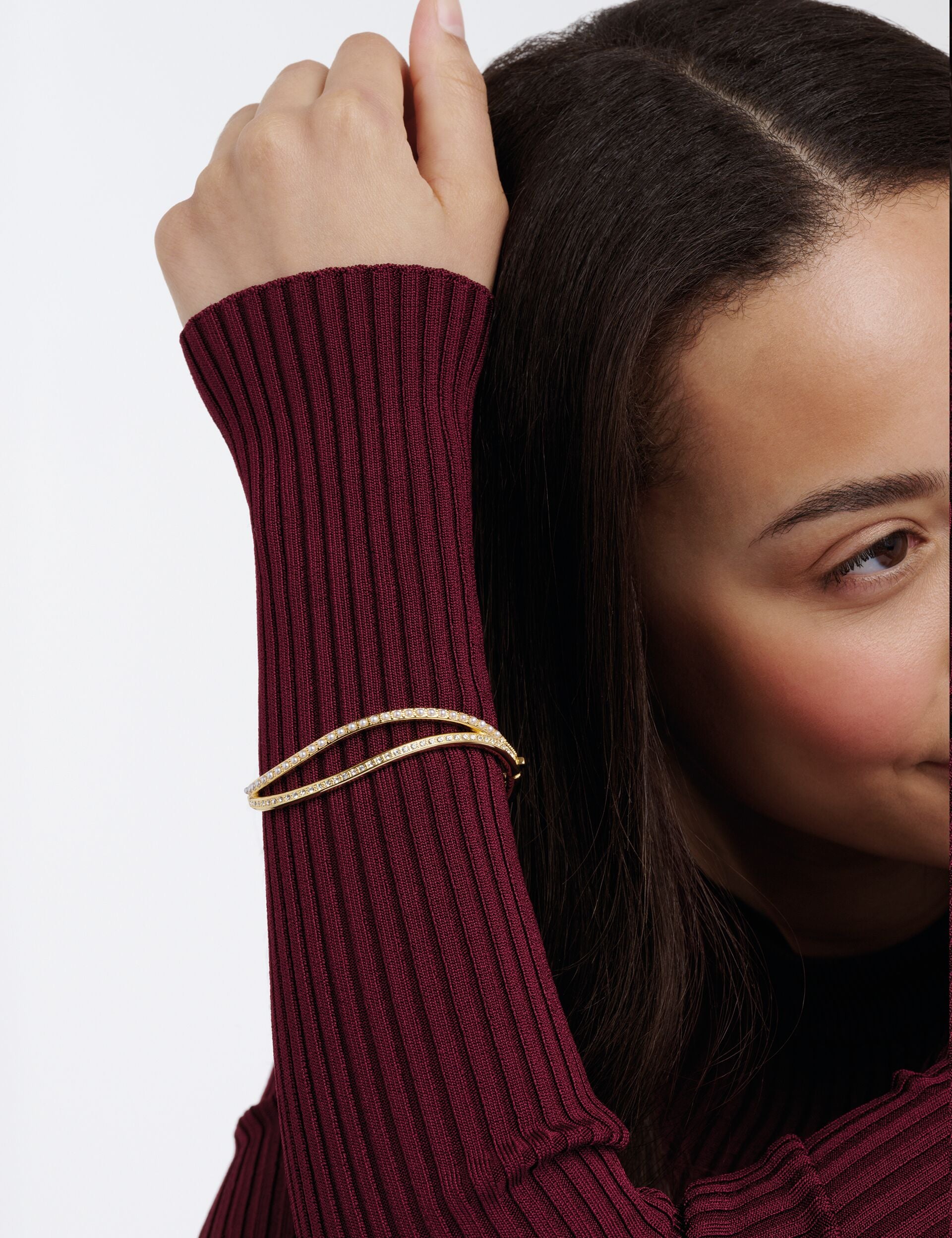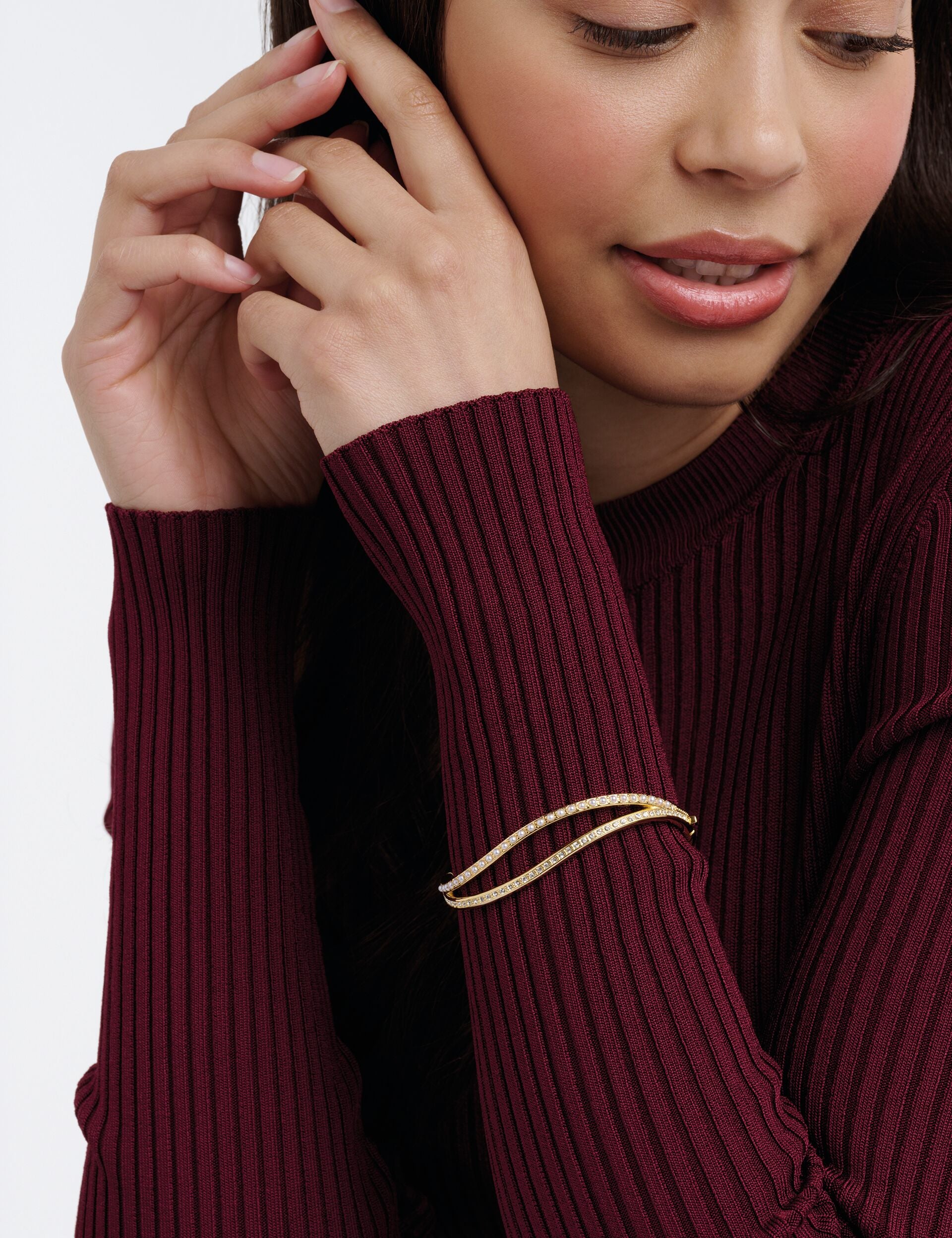 Crystal & Pearl Wave Bangle Bracelet