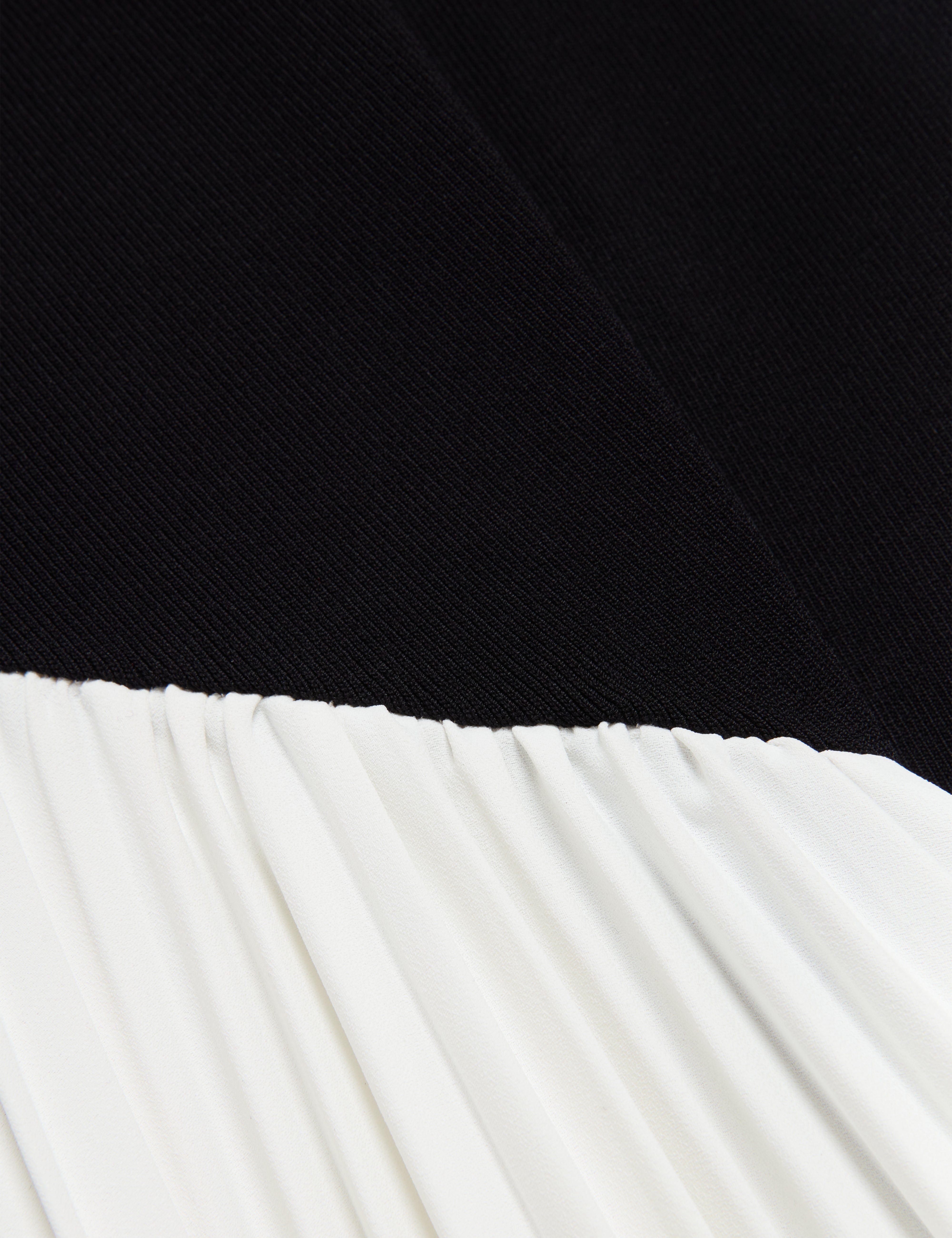The ZEERA midi dress is effortless elegance with a touch of our trademark flair. The sleek column silhouette is crafted from a sculpting knitted fabric, combined with an asymmetric pleated panel at the side in a contrasting shade - it's just enough movement to make every step into a statement.