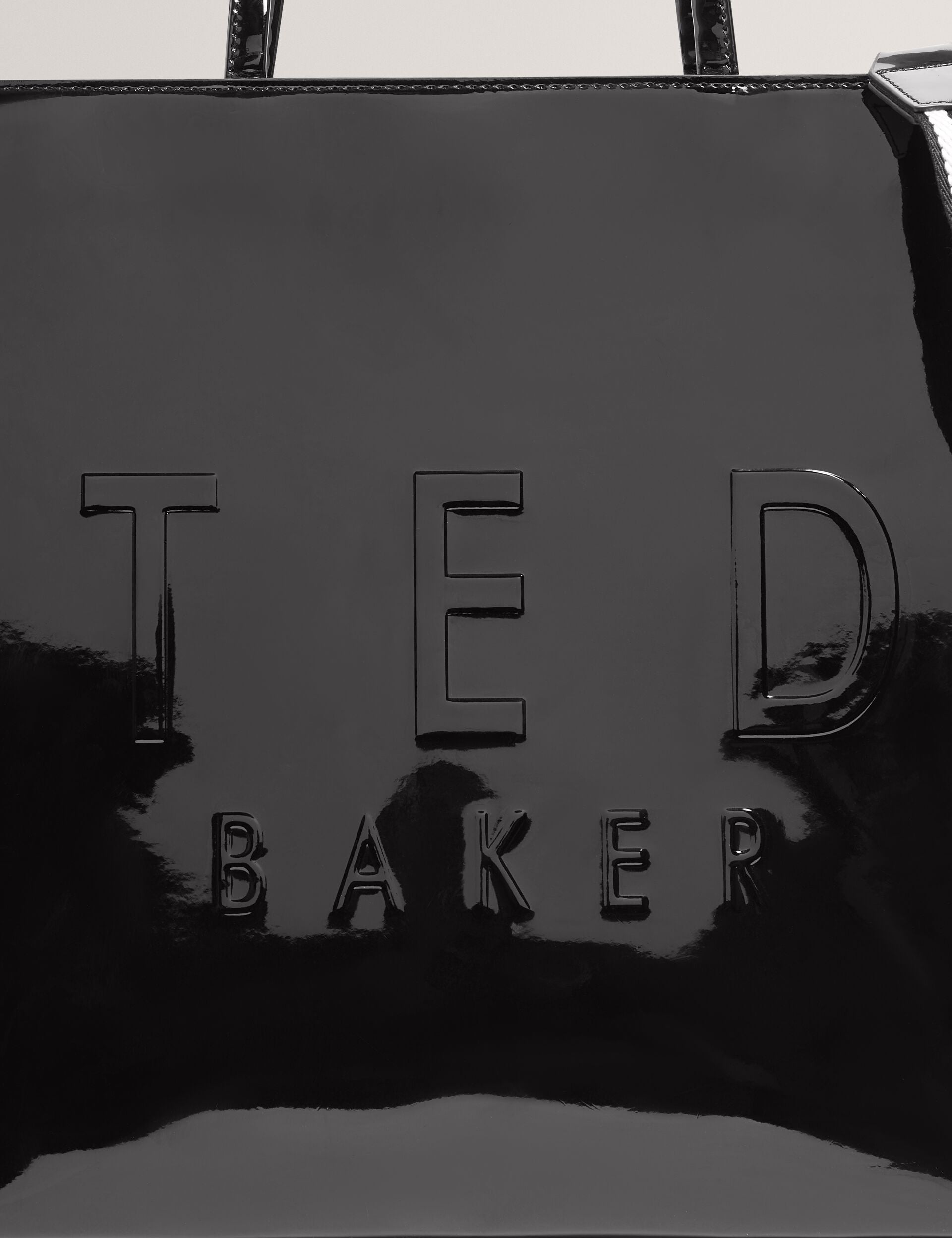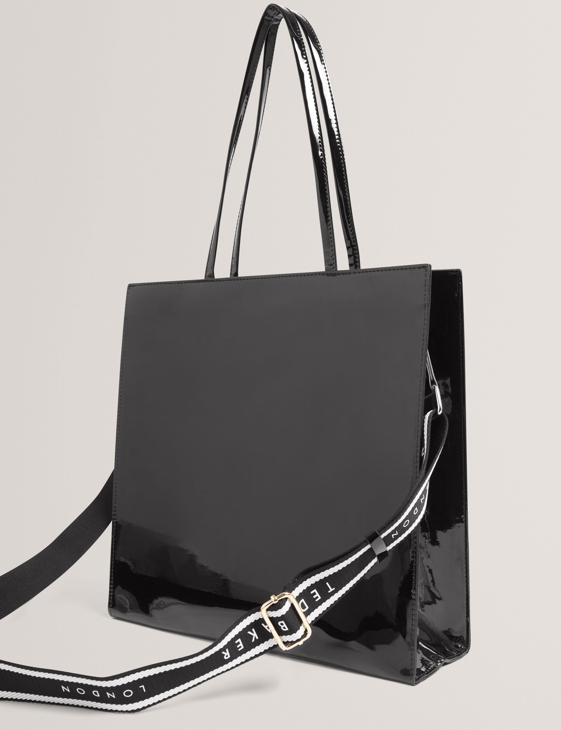 A more versatiIe kind of tote, but no less iconic. ICONNY is crafted from sleek patent faux leather with updated embossed branding on the front, plus we've added our signature webbing crossbody strap so that you can take this large tote anywhere and everywhere.