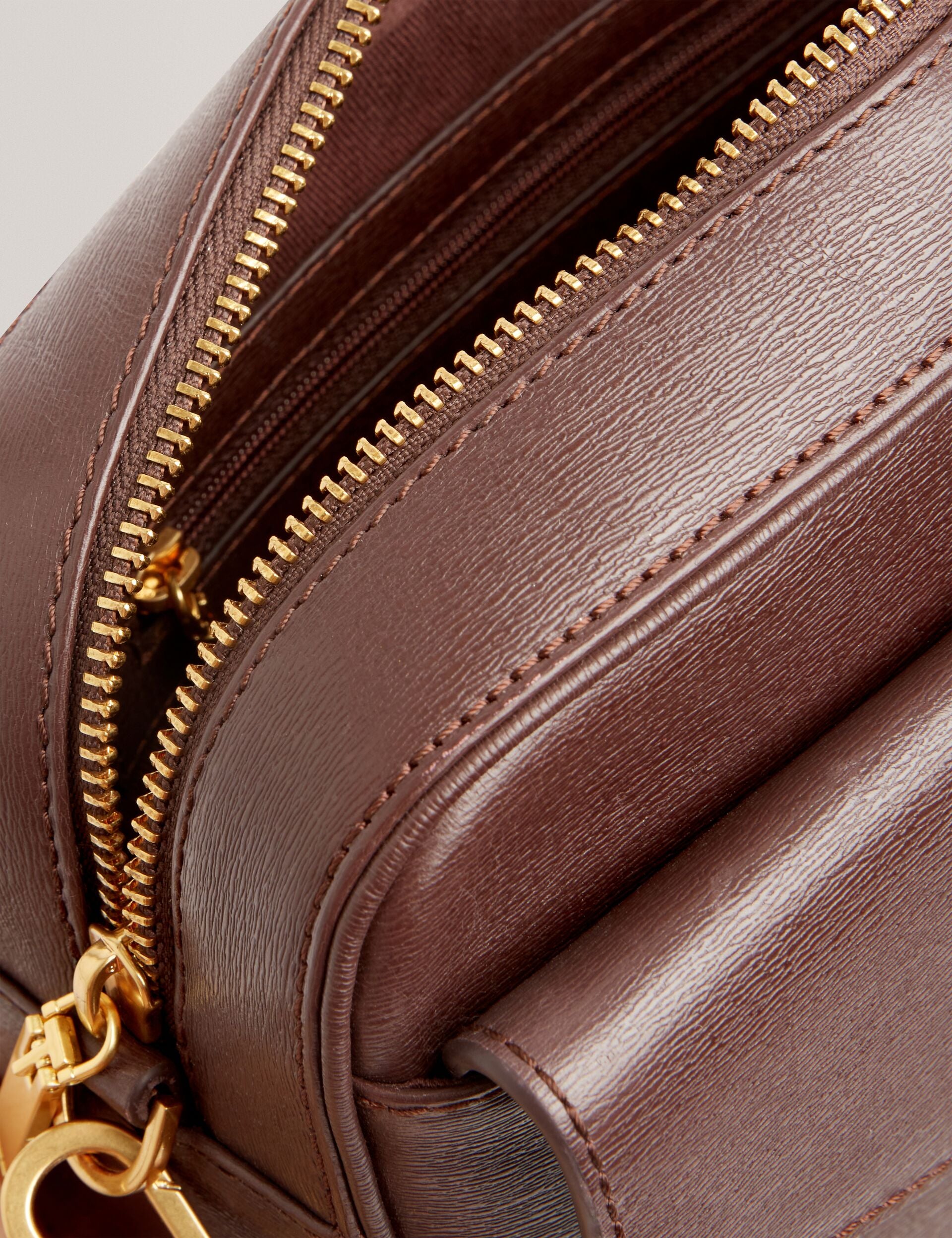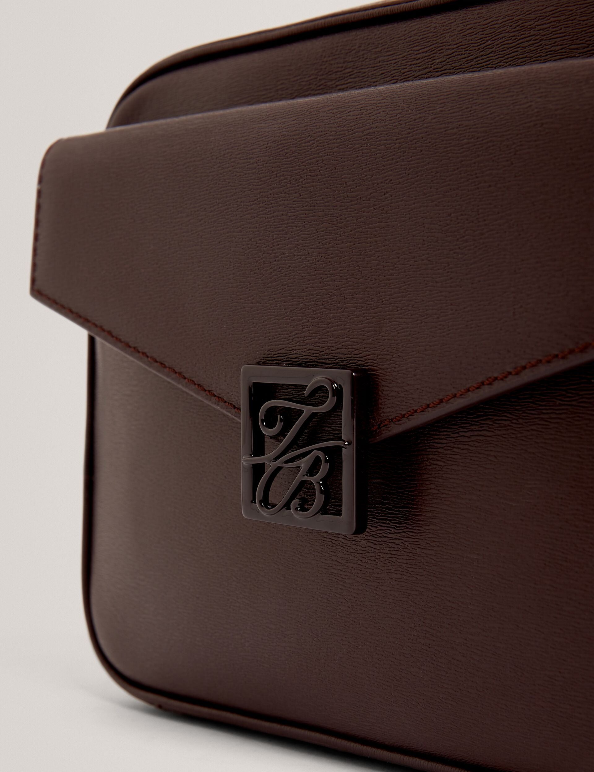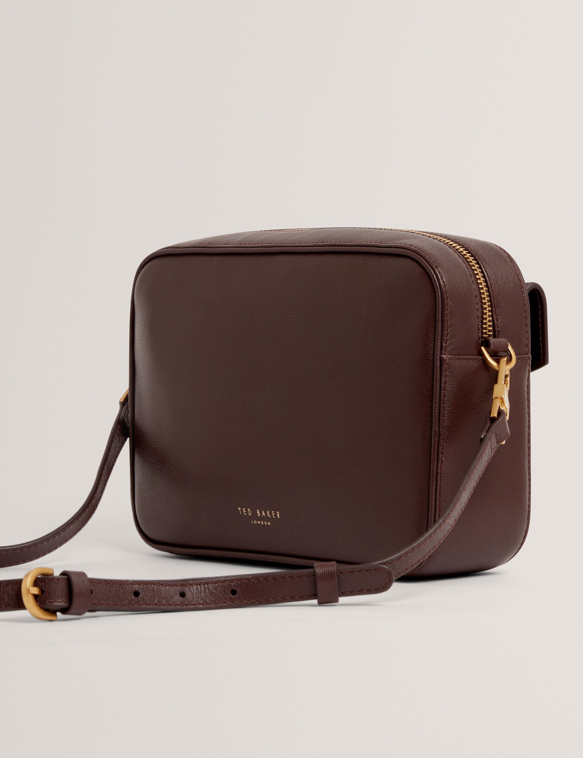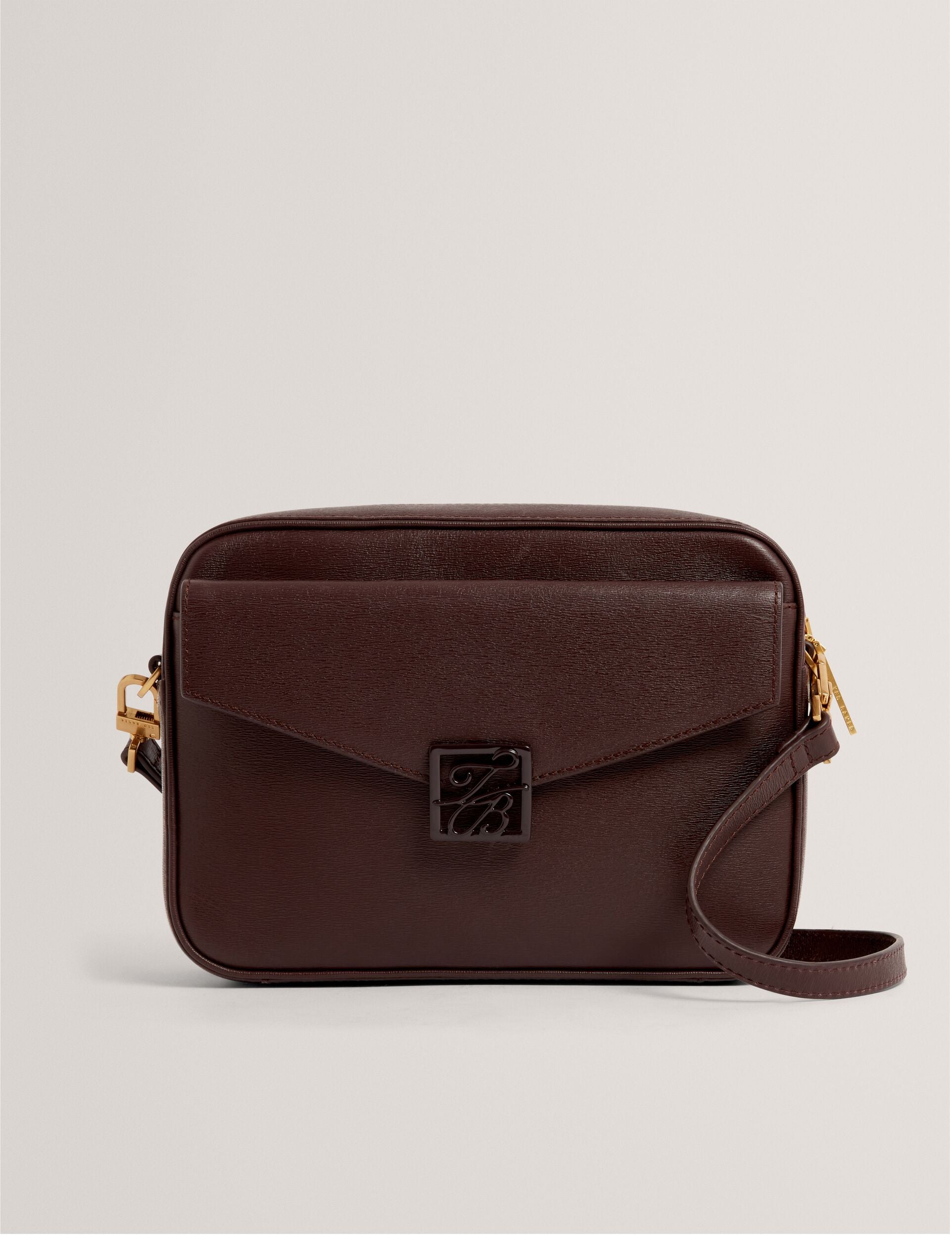 All eyes on ANILAA. Crafted from embossed textured leather in a deep wine hue, this large camera bag is chic and versatile thanks to the removable crossbody strap. Finished with Ted’s signature logo and gleaming gold-tone hardware, it’s the perfect blend of form and function.