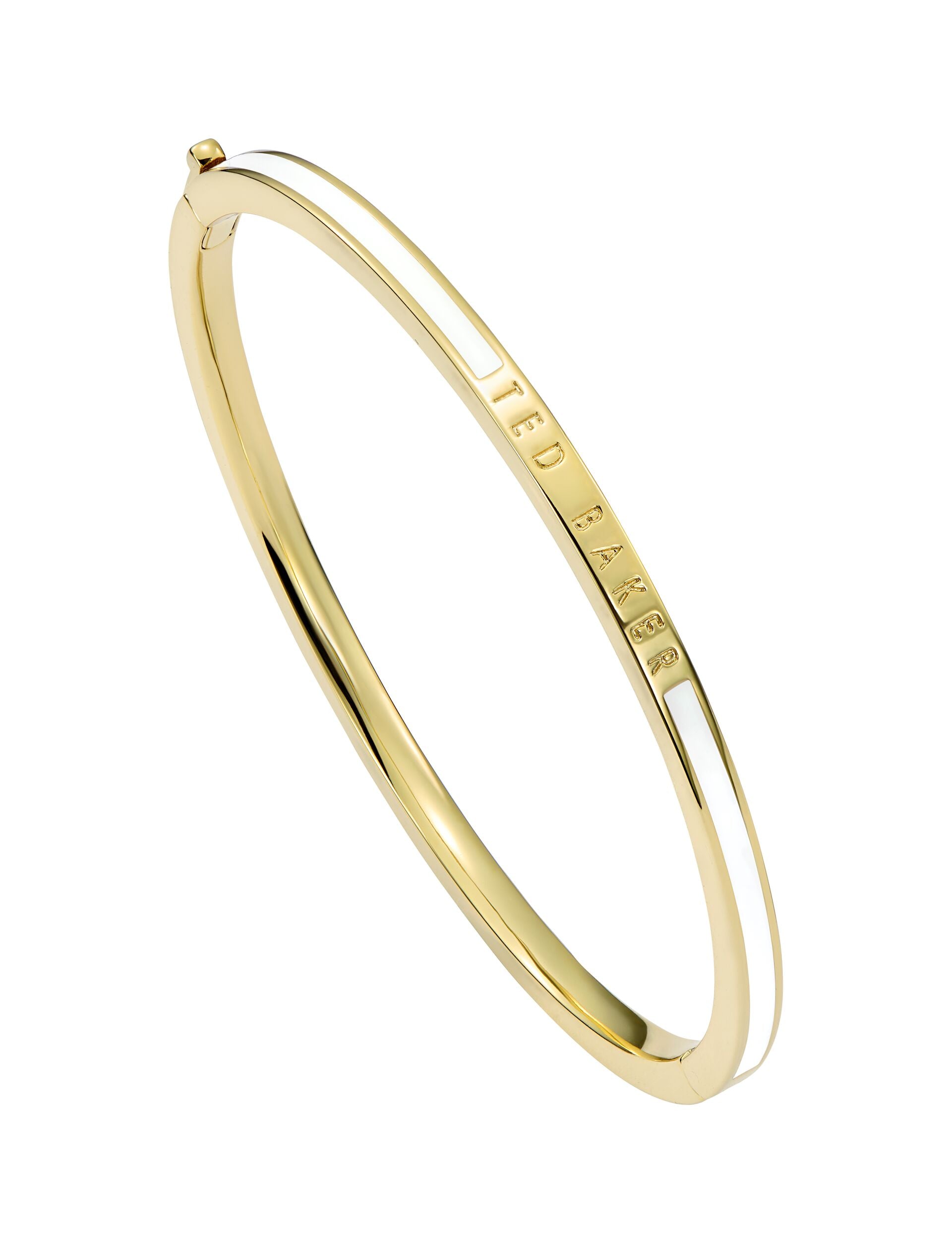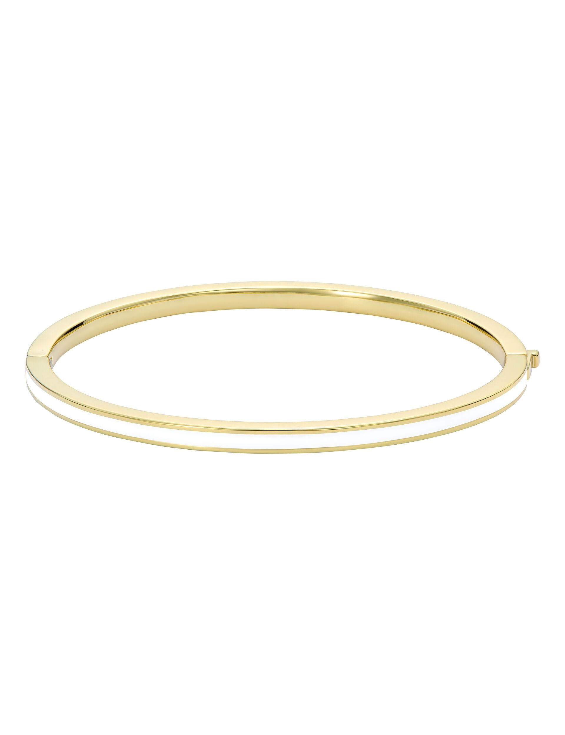 Orné d'un bracelet en émail blanc à la silhouette fine plaquée or, le bracelet jonc ROLEYW joue sur les contrastes. Portez-le seul pour affirmer votre style avec élégance, ou associez-le à d'autres bracelets pour une touche de couleur.