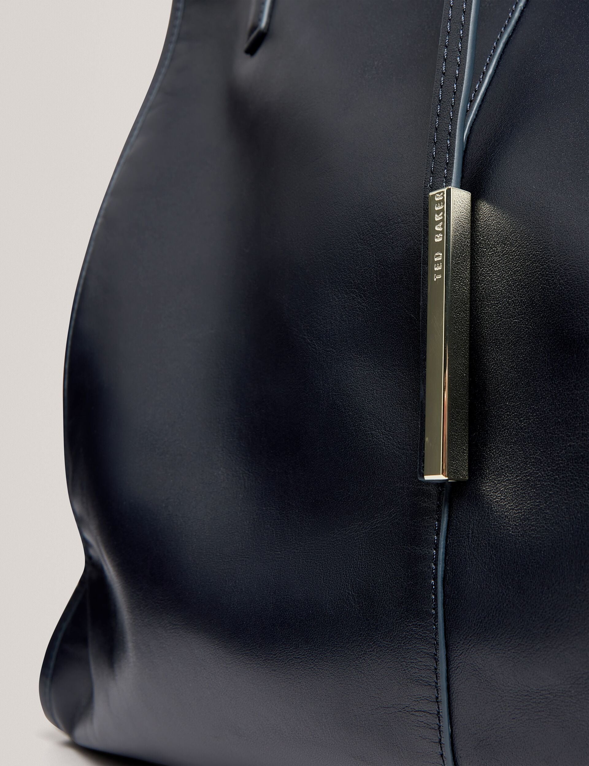 The RYLANN tote bag blends relaxed structure with refined detail. Crafted from soft leather and finished with a sleek metal bar accent, it offers generous space and laid-back luxury for everyday ease.