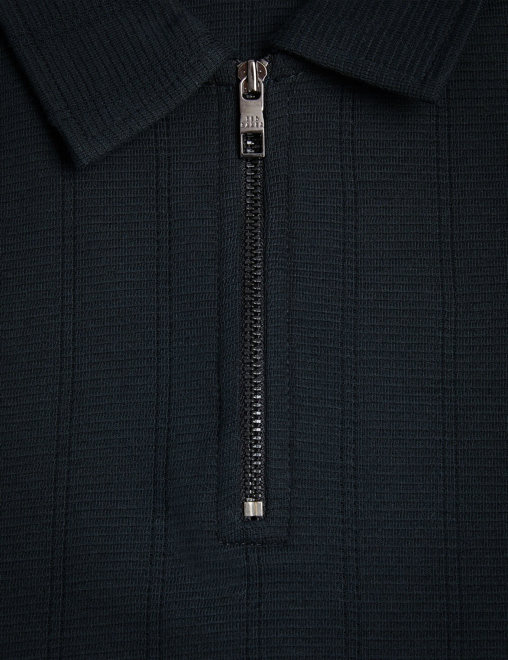 The classic polo gets a fresh update with ABLOOM's textured knit, for an elevated casual look you can wear all weekend long. A classic collar, short sleeves and modern zip placket are sure to impress at the office party.