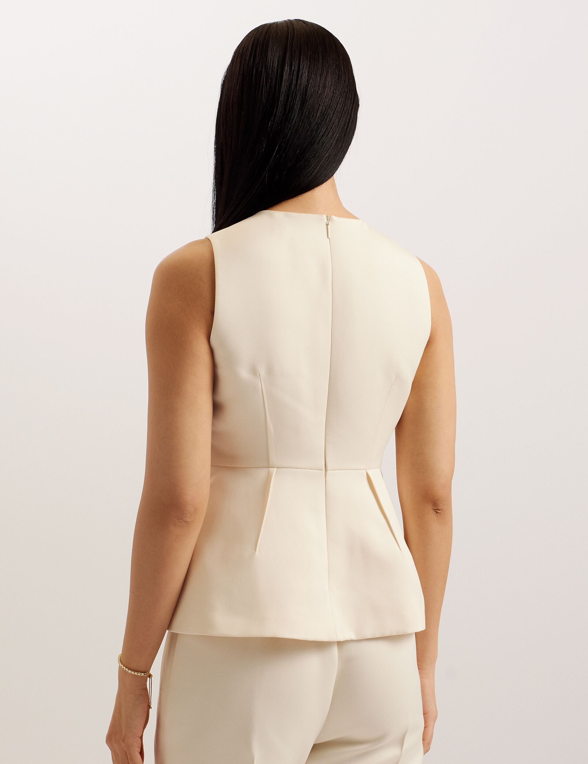 Elevate your wardrobe with the elegant AKENI top. This sleeveless peplum top can effortlessly transition your wardrobe from day to night.