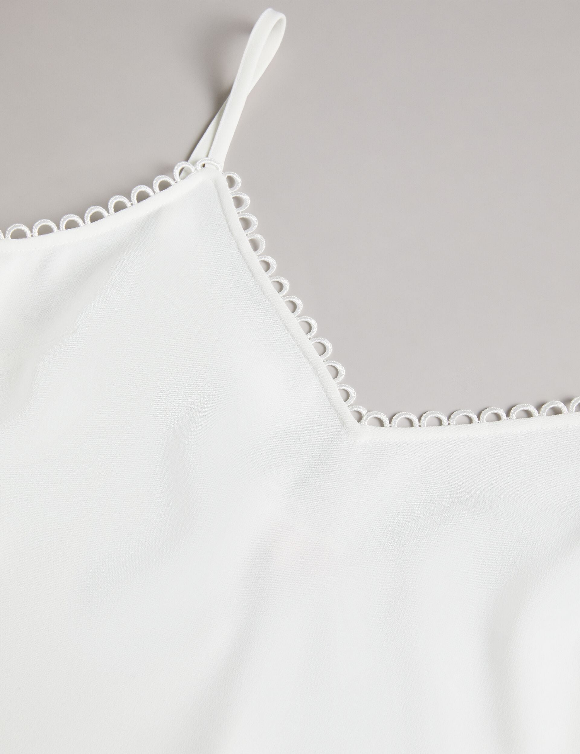 Crafted in a super-soft, light and floaty fabric, ANDRENO is a staple, but elevated. Featuring looped lace trims and a figure flattering V-neckline, it's gorgeous layered or paired with basics.